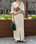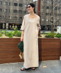 さらっとした涼しげなリネンライク素材を使用した、Uネックワンピース。