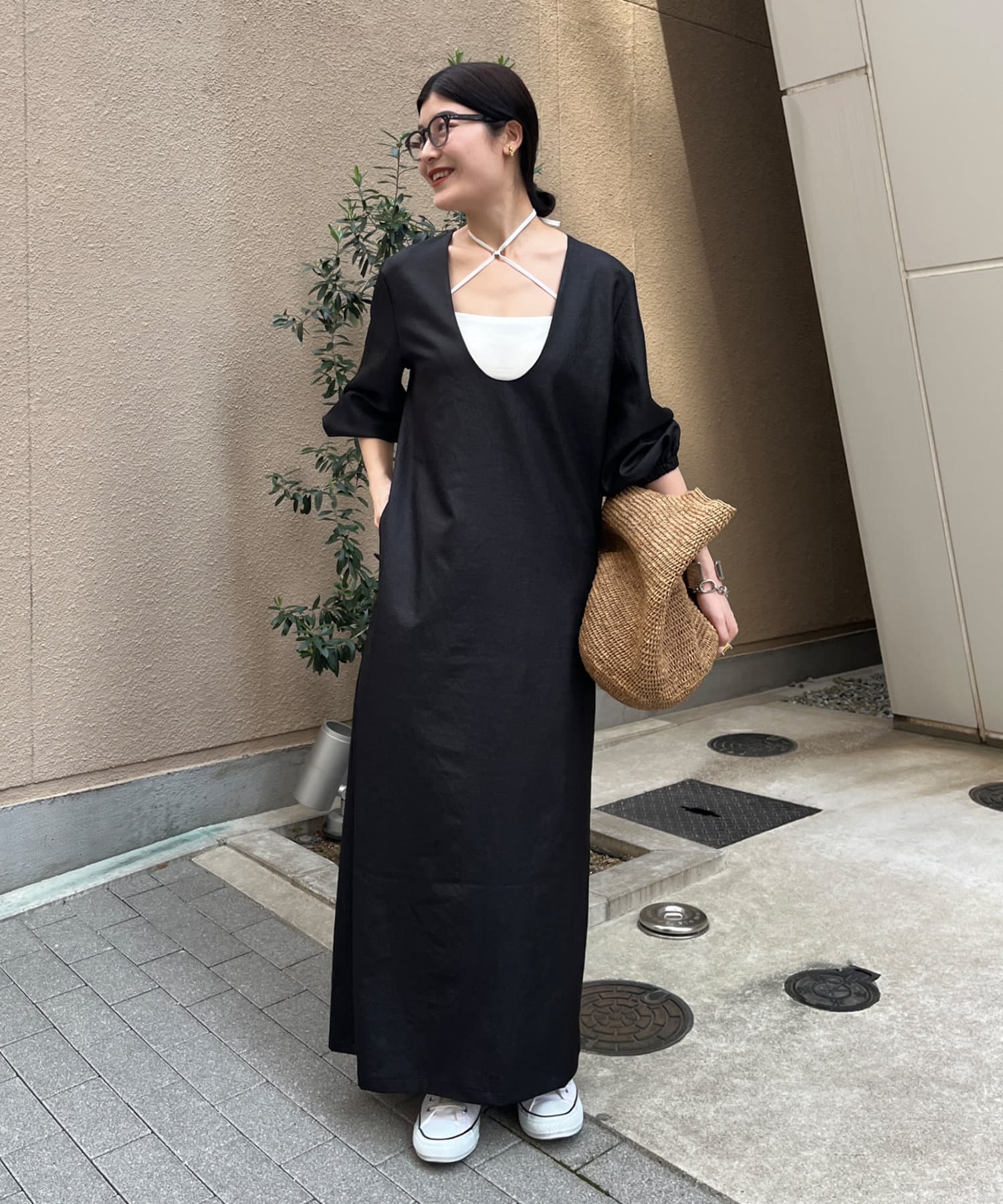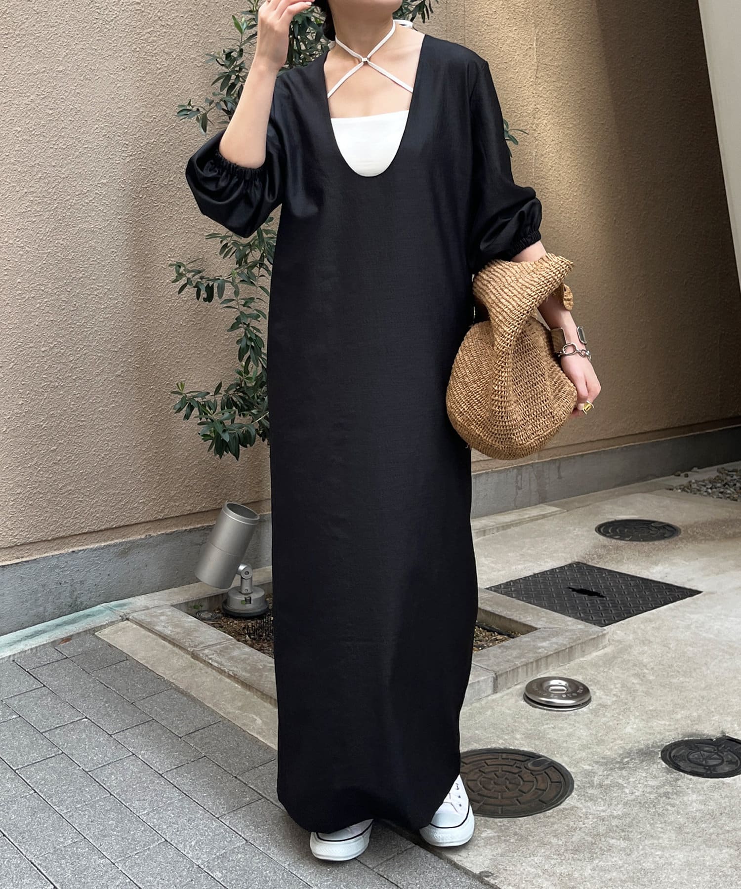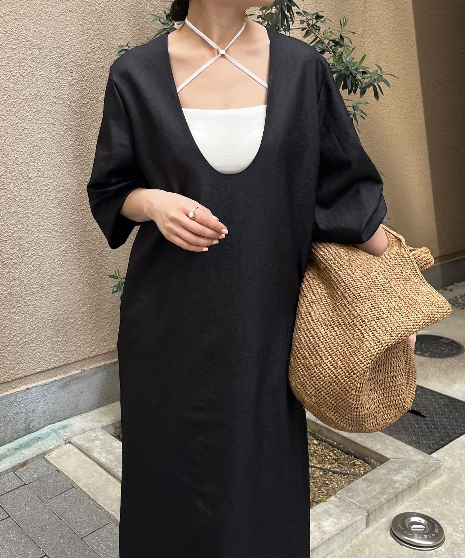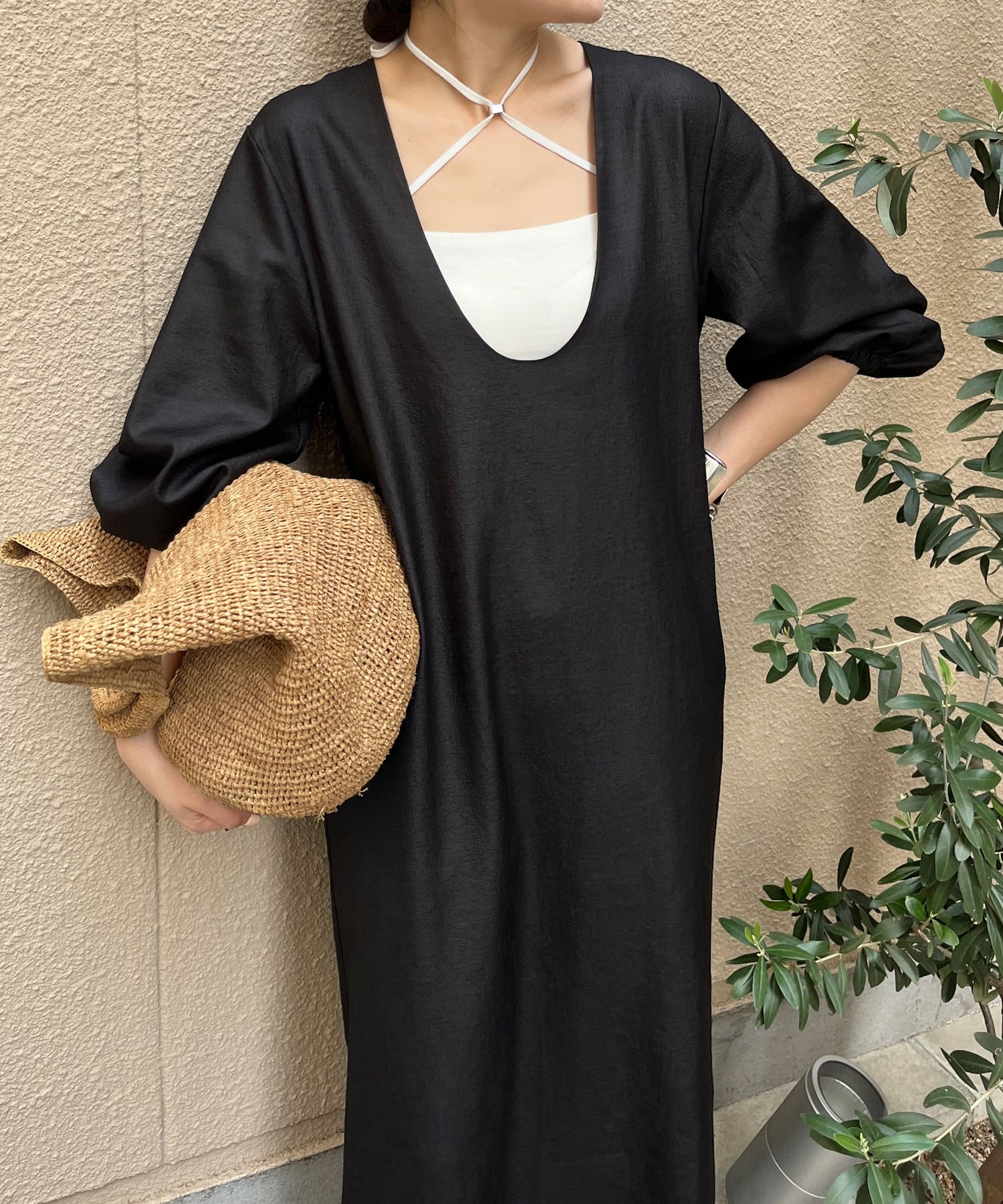 深めのUネックデザインのため、合わせるインナー次第で雰囲気を変えられます◎