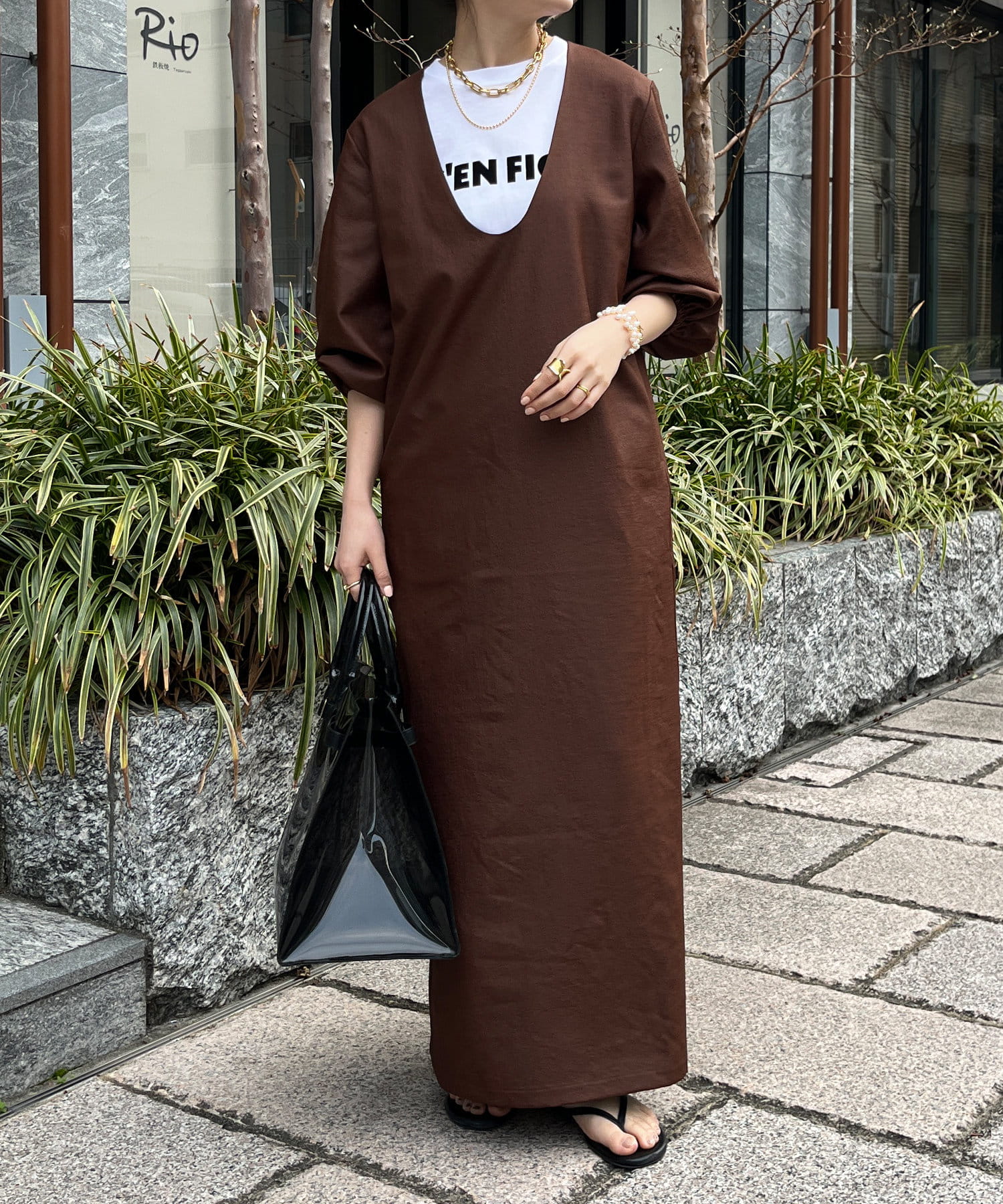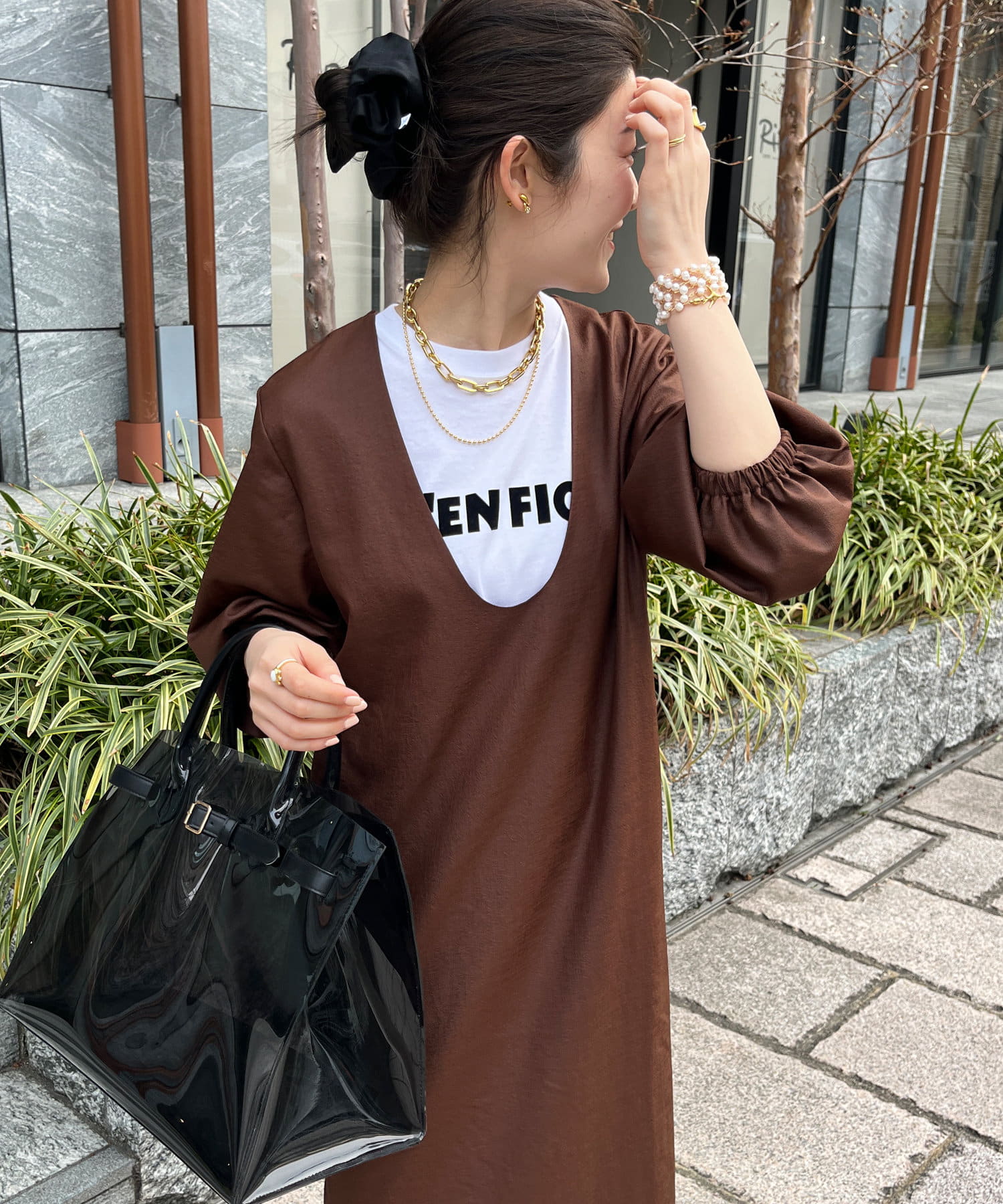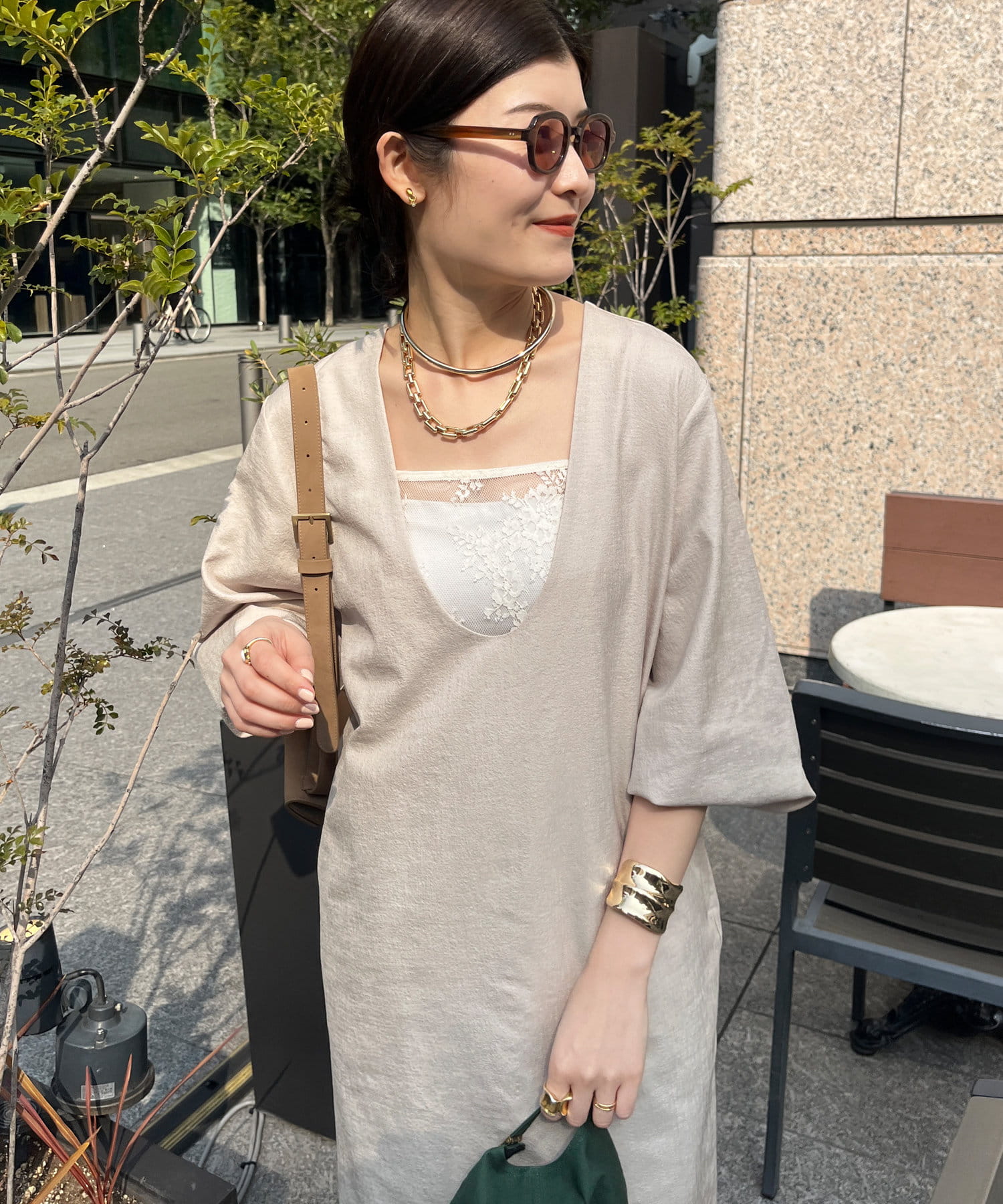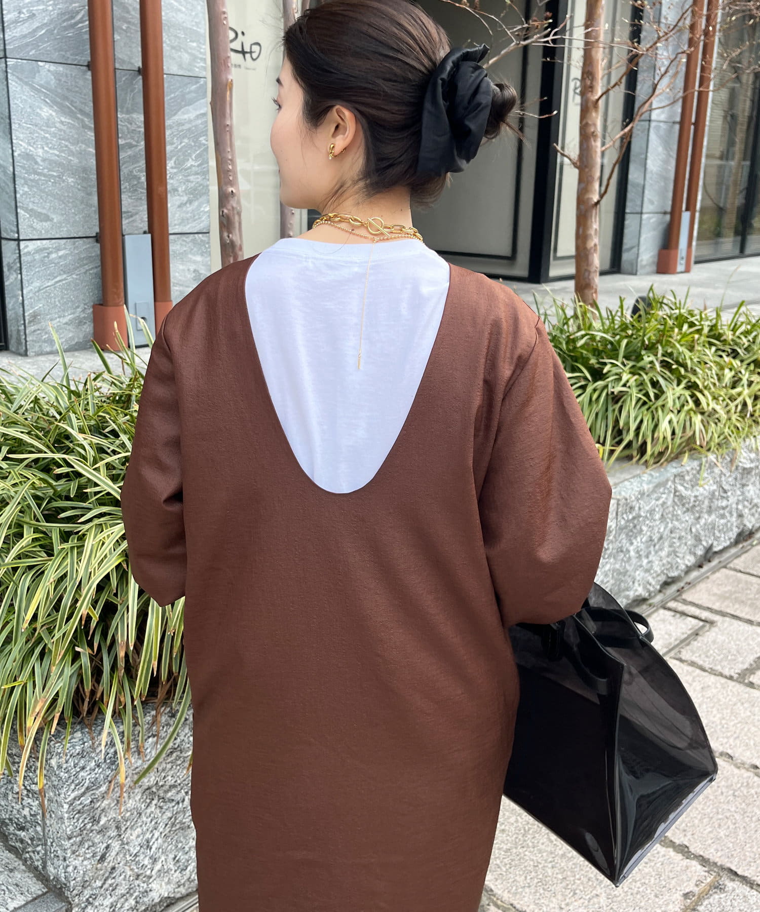 深めのUネックデザインのため、合わせるインナー次第で雰囲気を変えられます◎