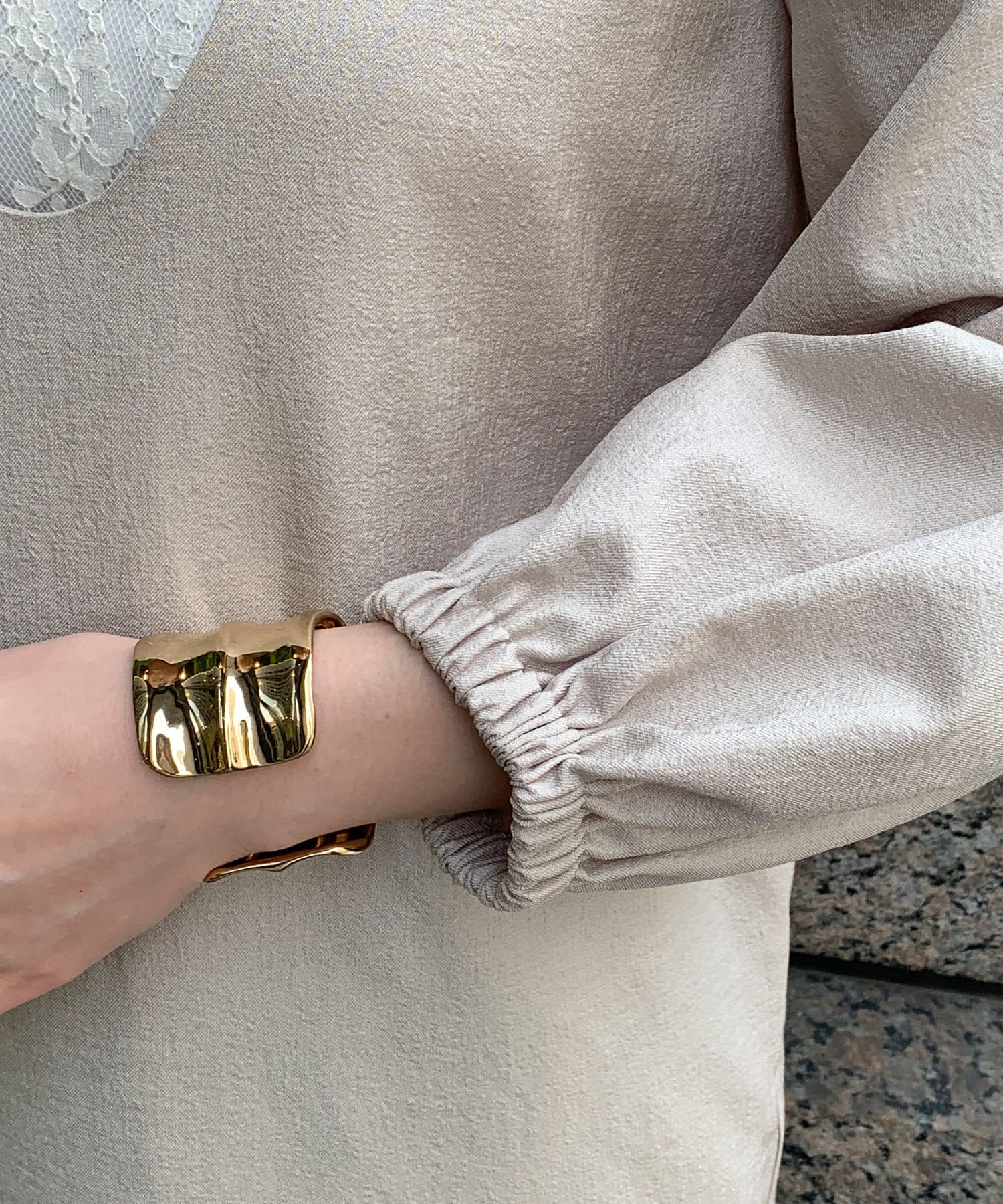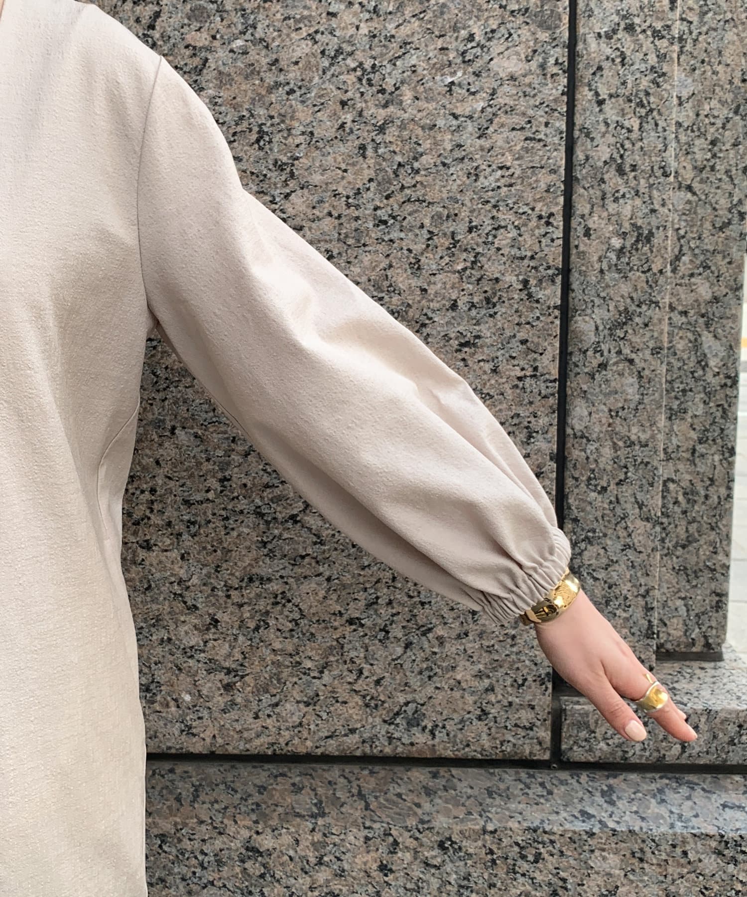 袖口はゴム仕様で、袖を少し上げて着ると自然なボリューム感が出て女性らしさを引き立てます。