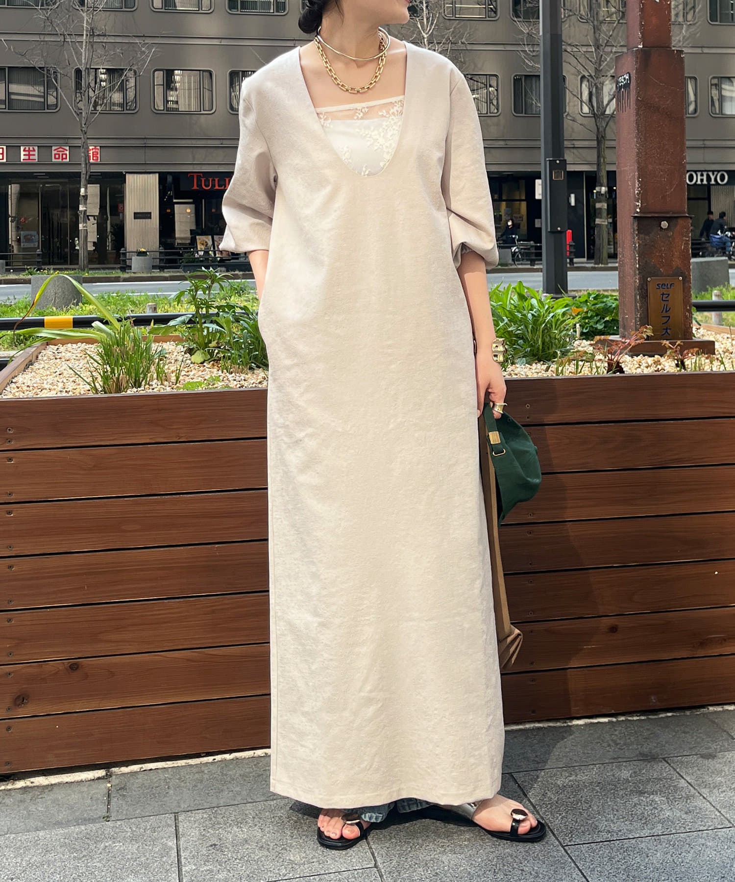 【こっち @doudou_okochi企画】リネンライク前後2WAYワンピース