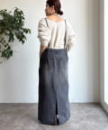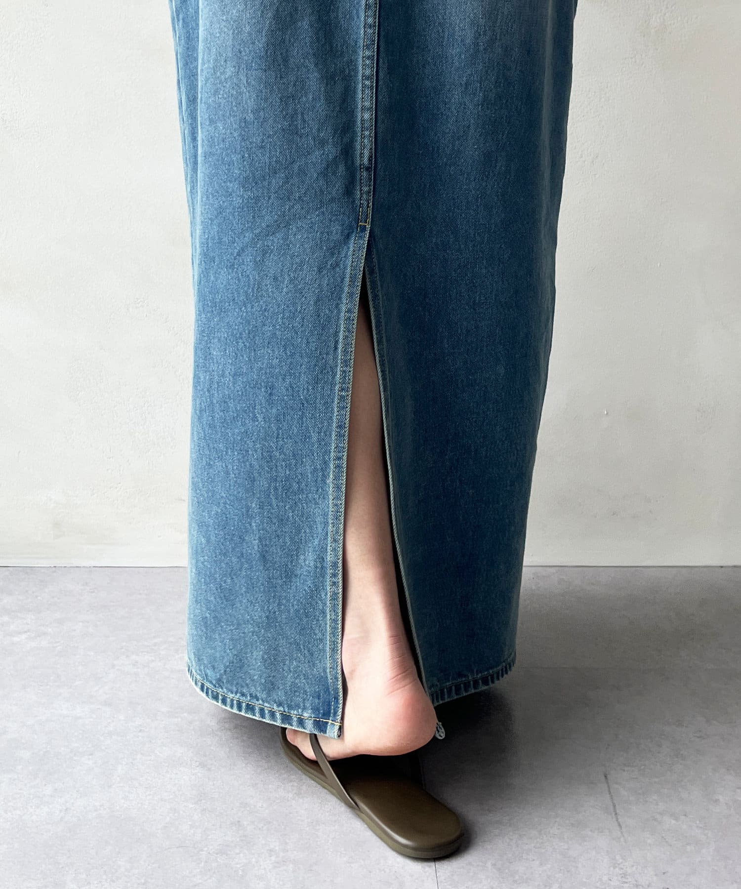 深めのスリットが足元に抜け感をプラスし、重たくなりがちなロング丈も軽やかに着こなせます。