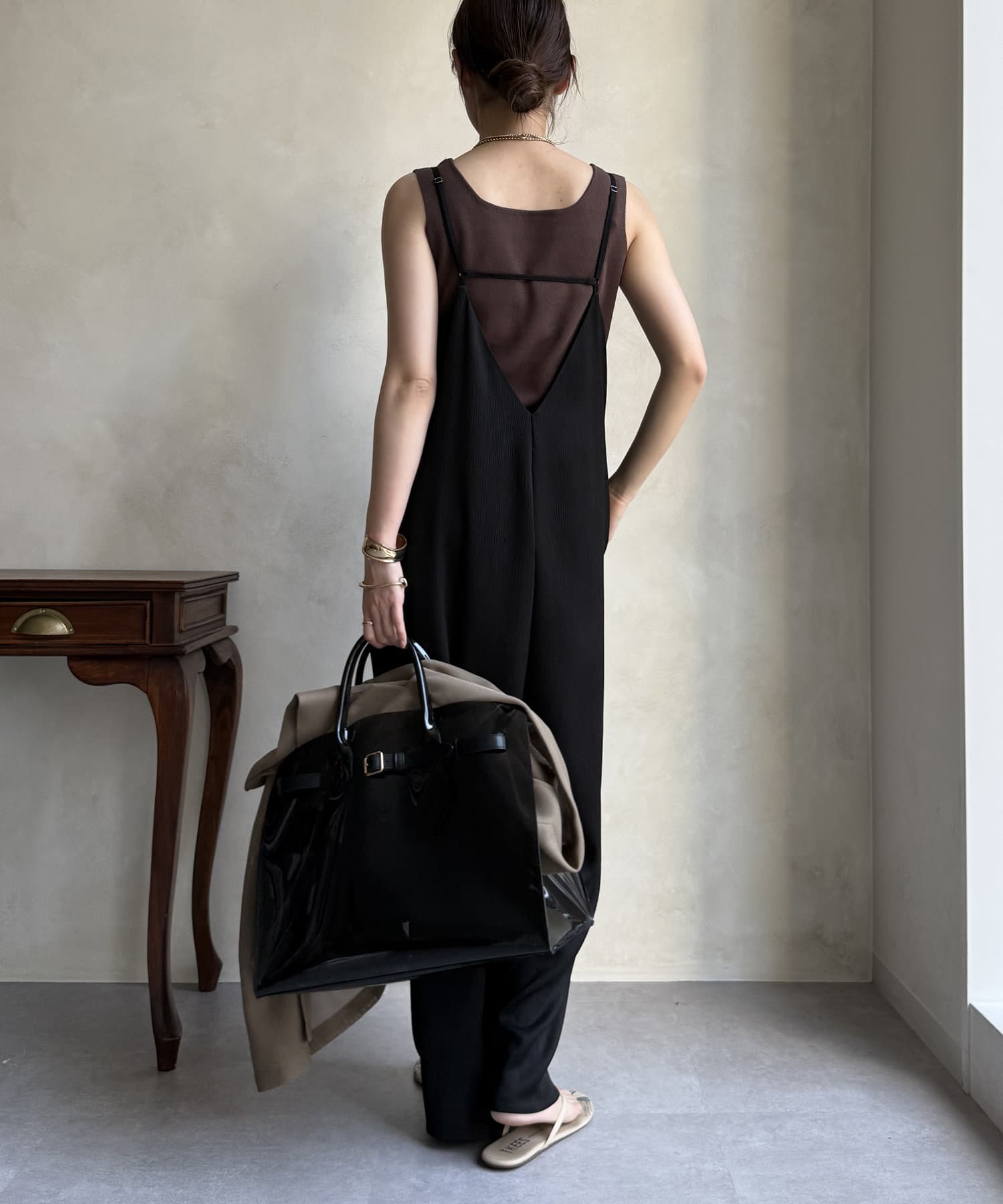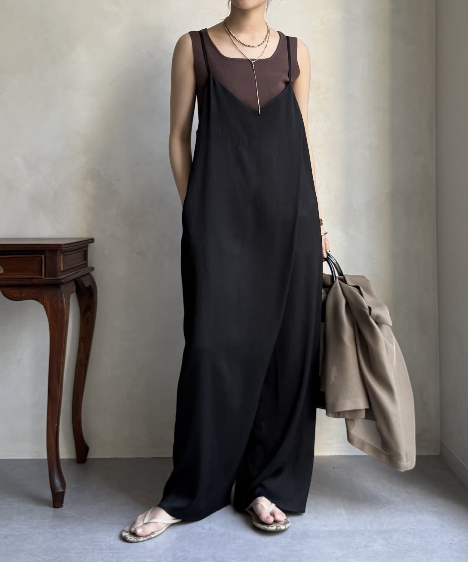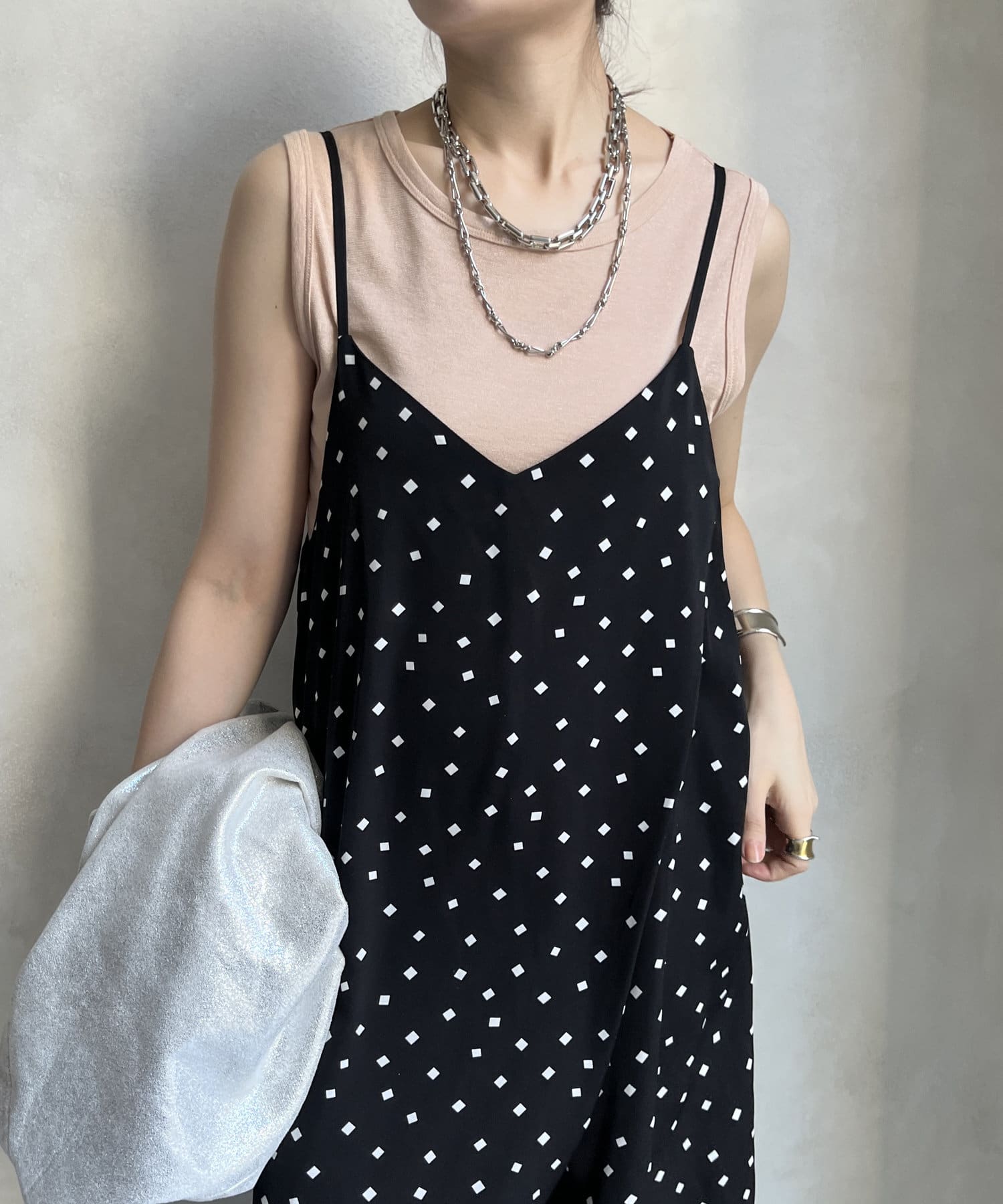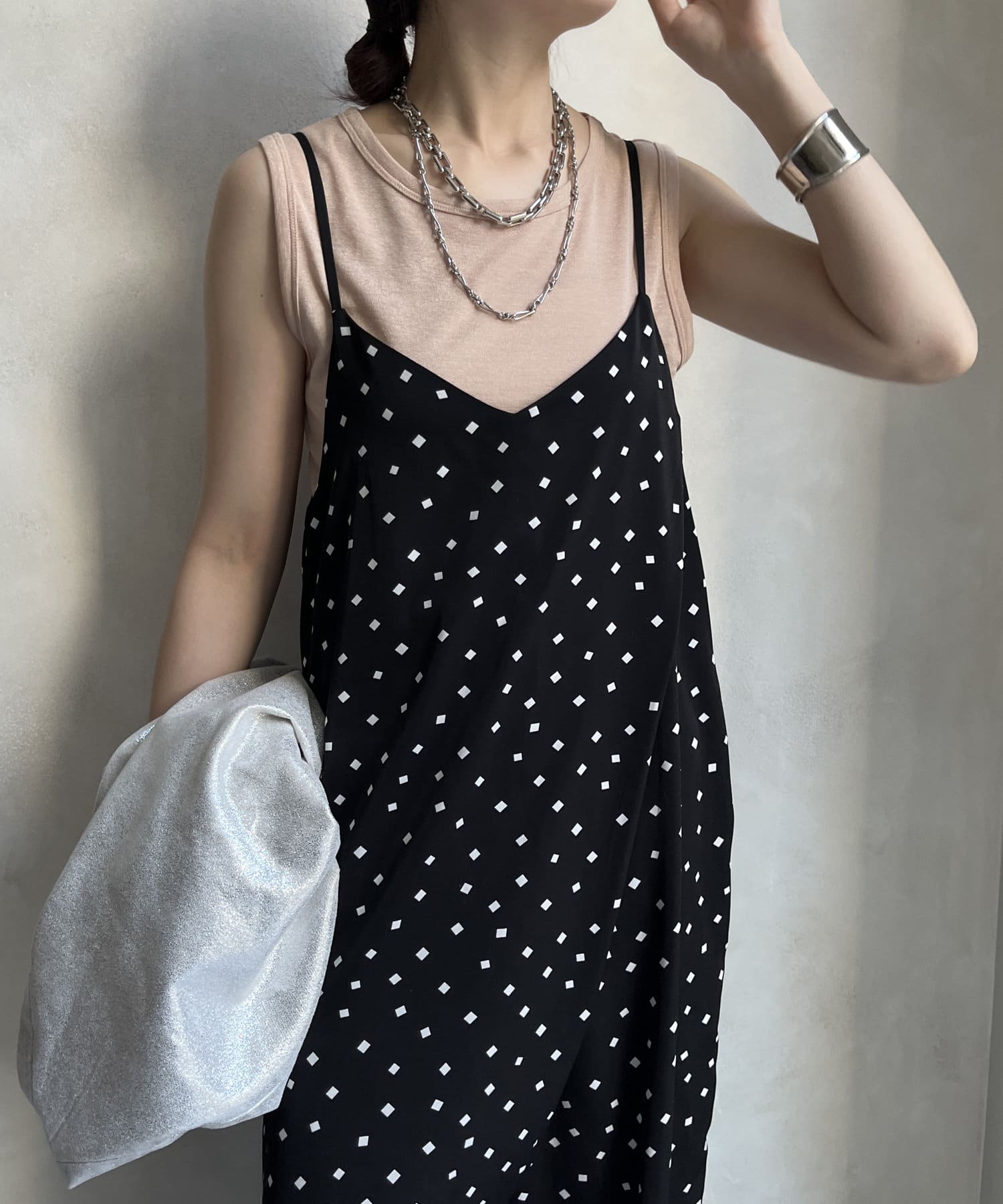 すっきりしたシルエットと華奢なストラップが大人カジュアルにぴったりの1枚