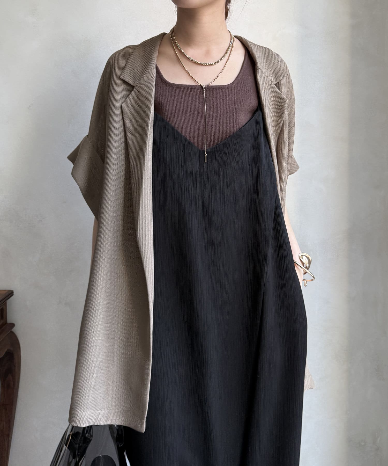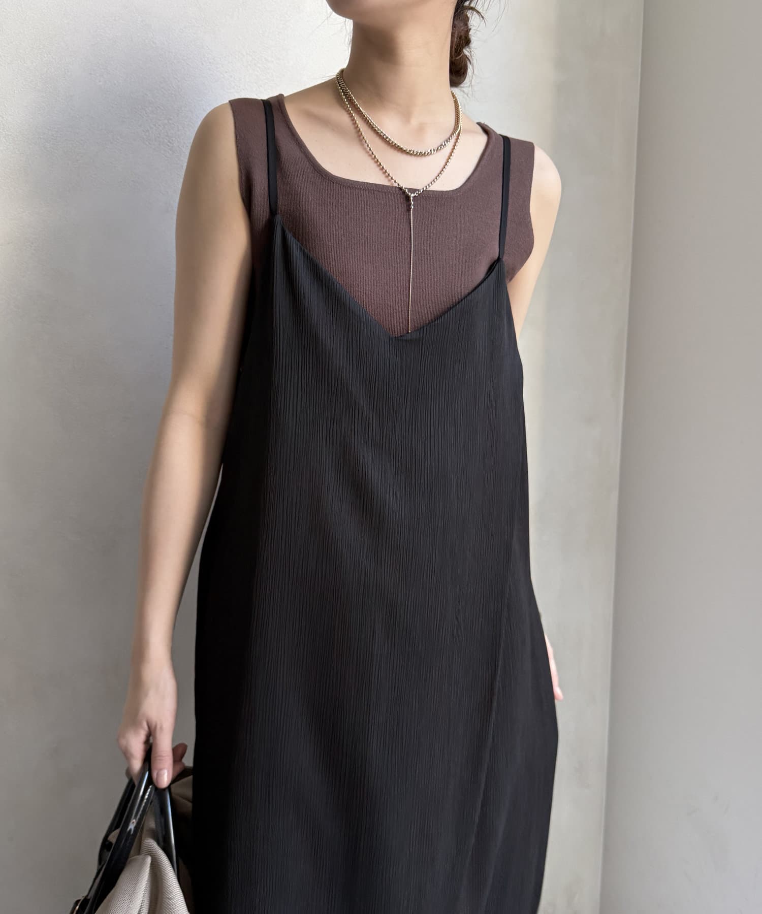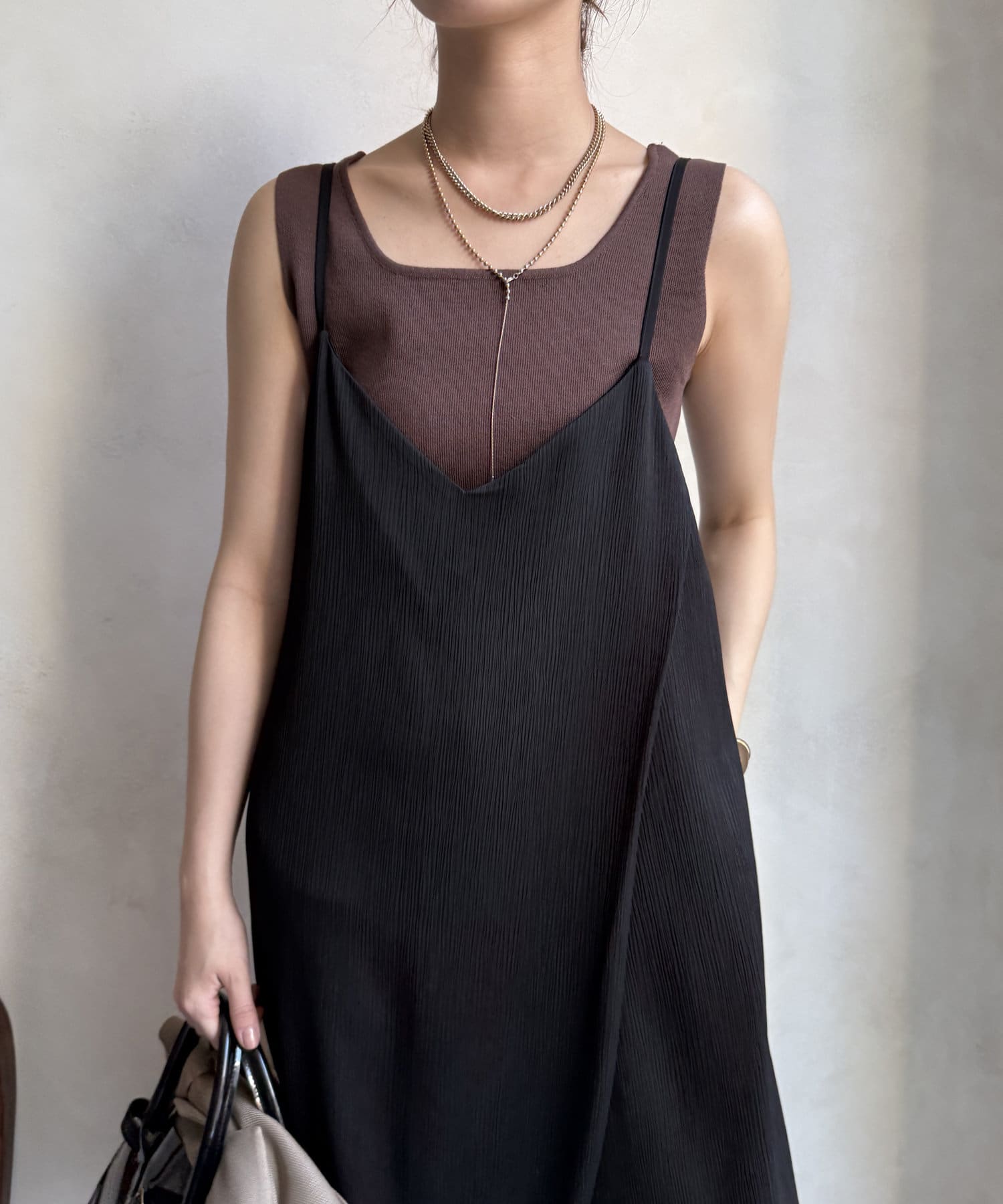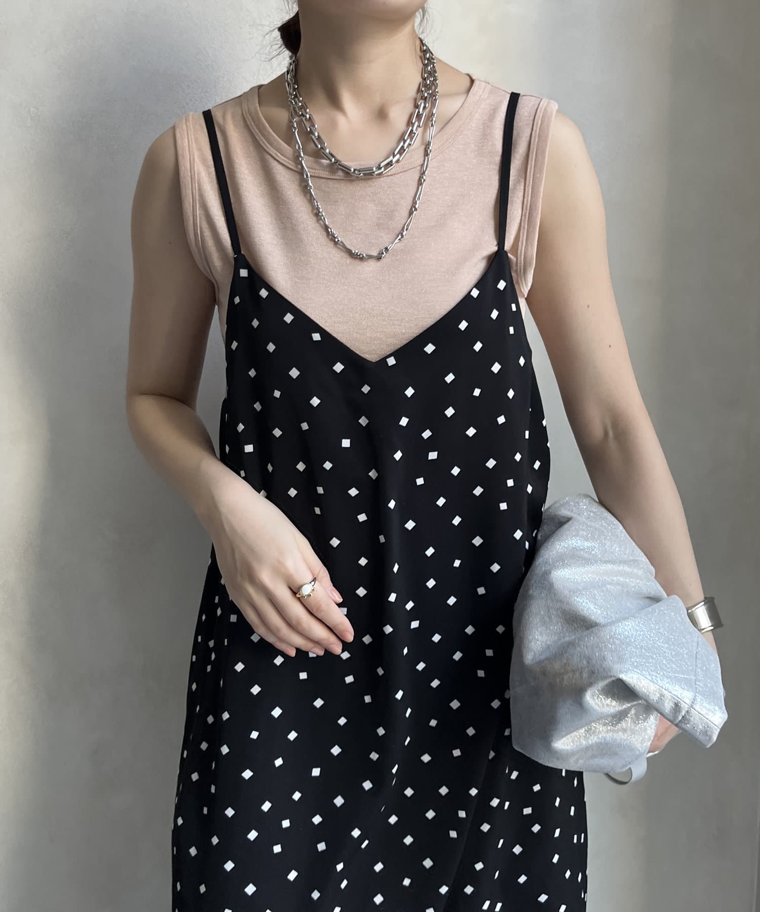 すっきりしたシルエットと華奢なストラップが大人カジュアルにぴったりの1枚