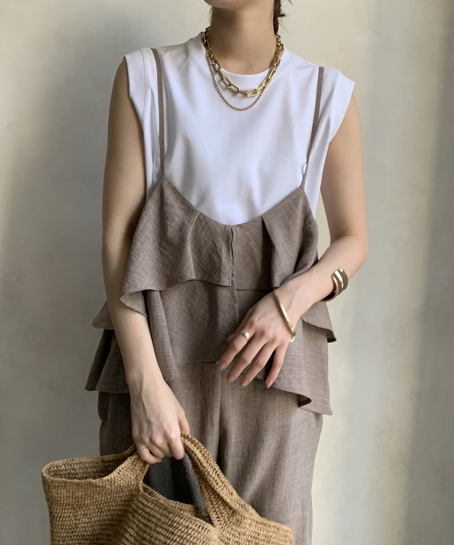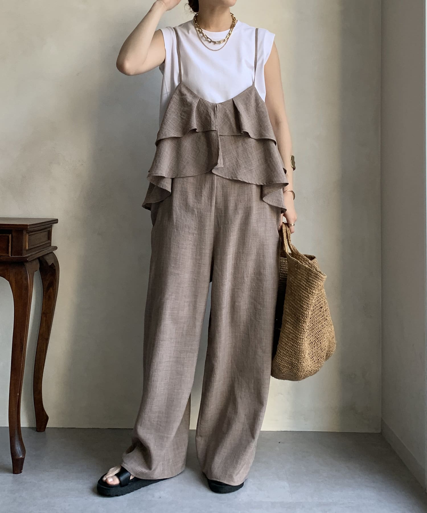 清涼感とシャリ感あるリネンライク素材で見た目も着心地もサラリと