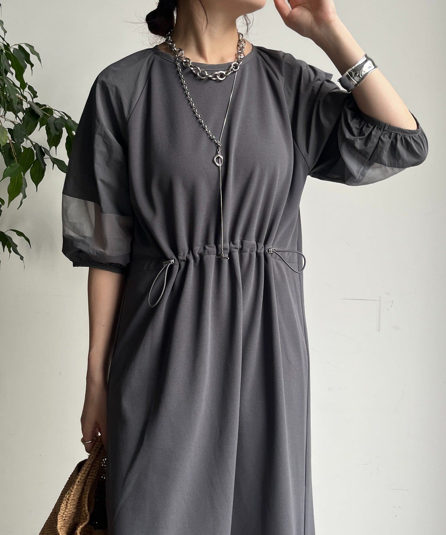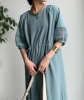 【WEB限定】カットジョーゼット異素材切替ワンピース