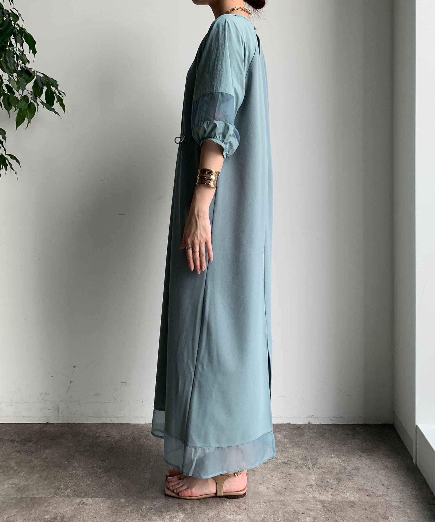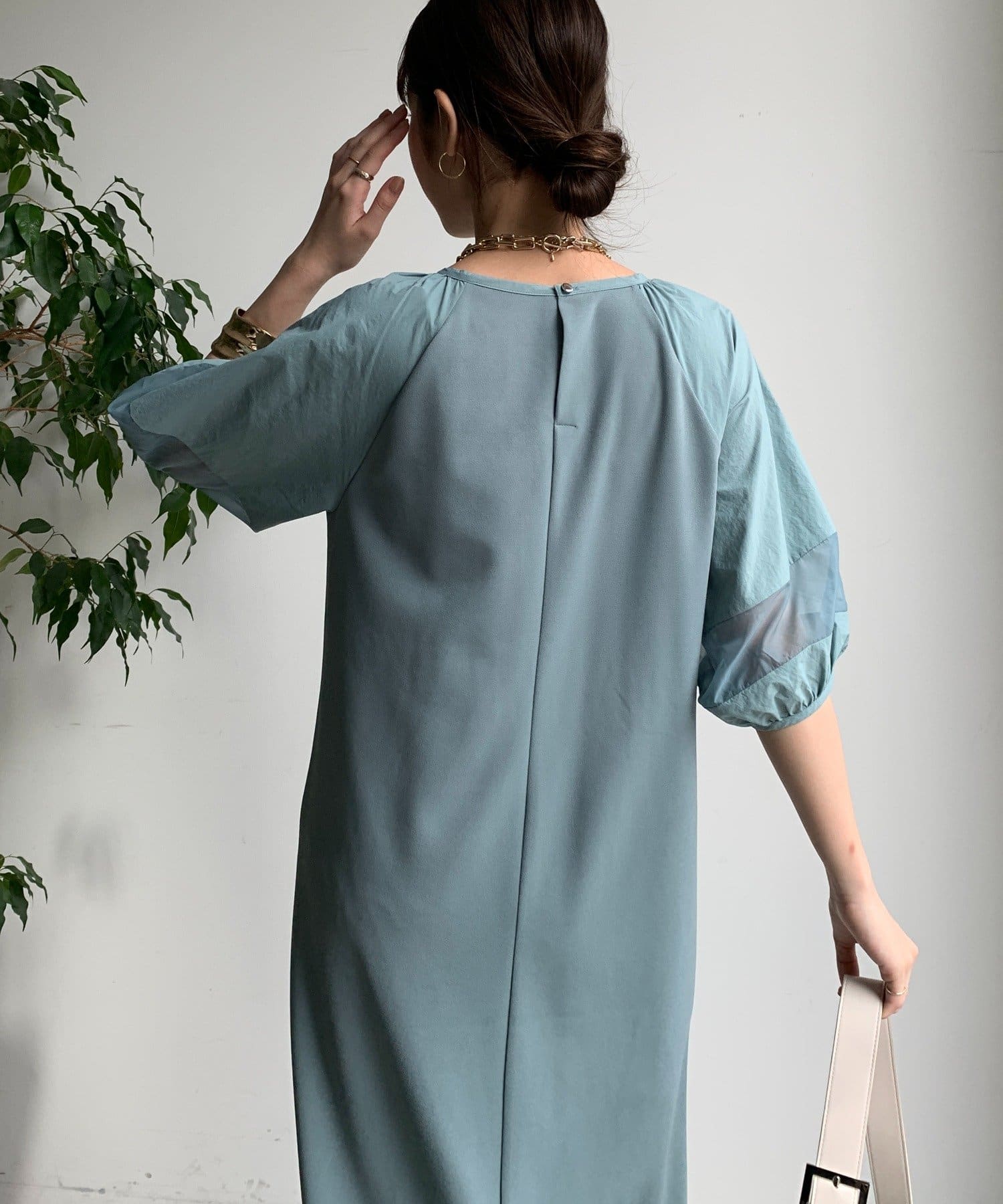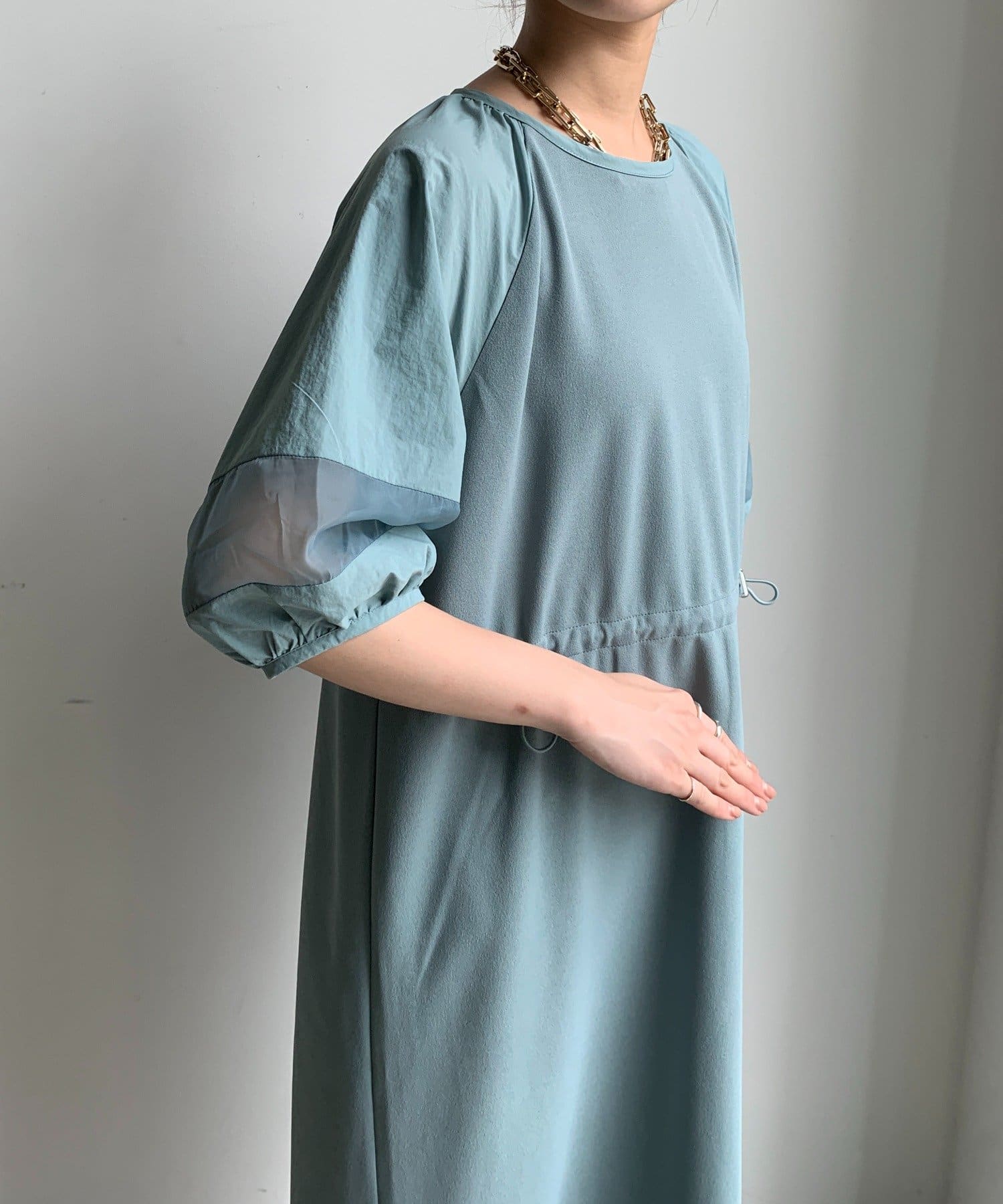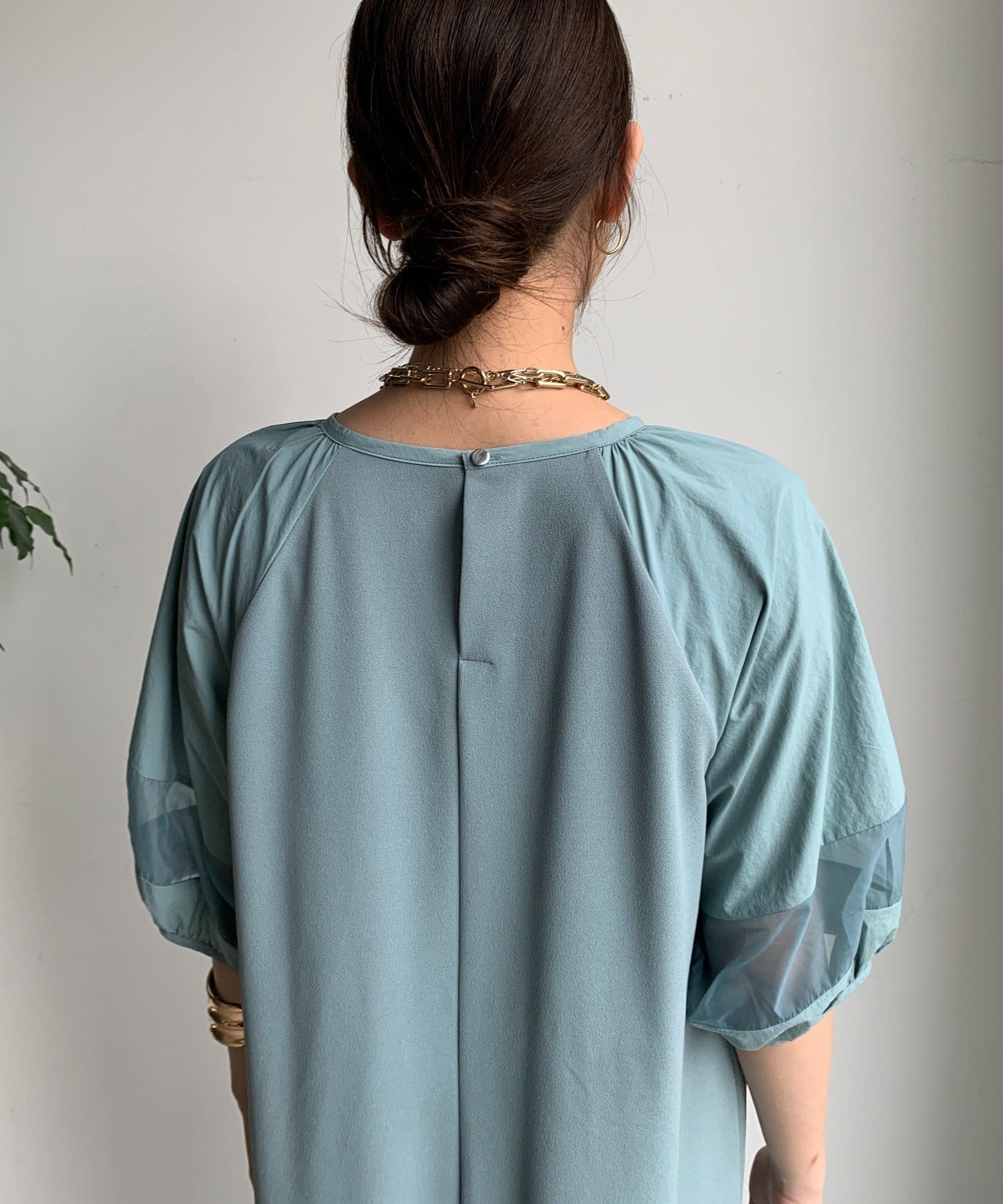 袖と裾には、エアリーなオーガンジーを組み合わせ、軽やかな抜け感をプラスしました!