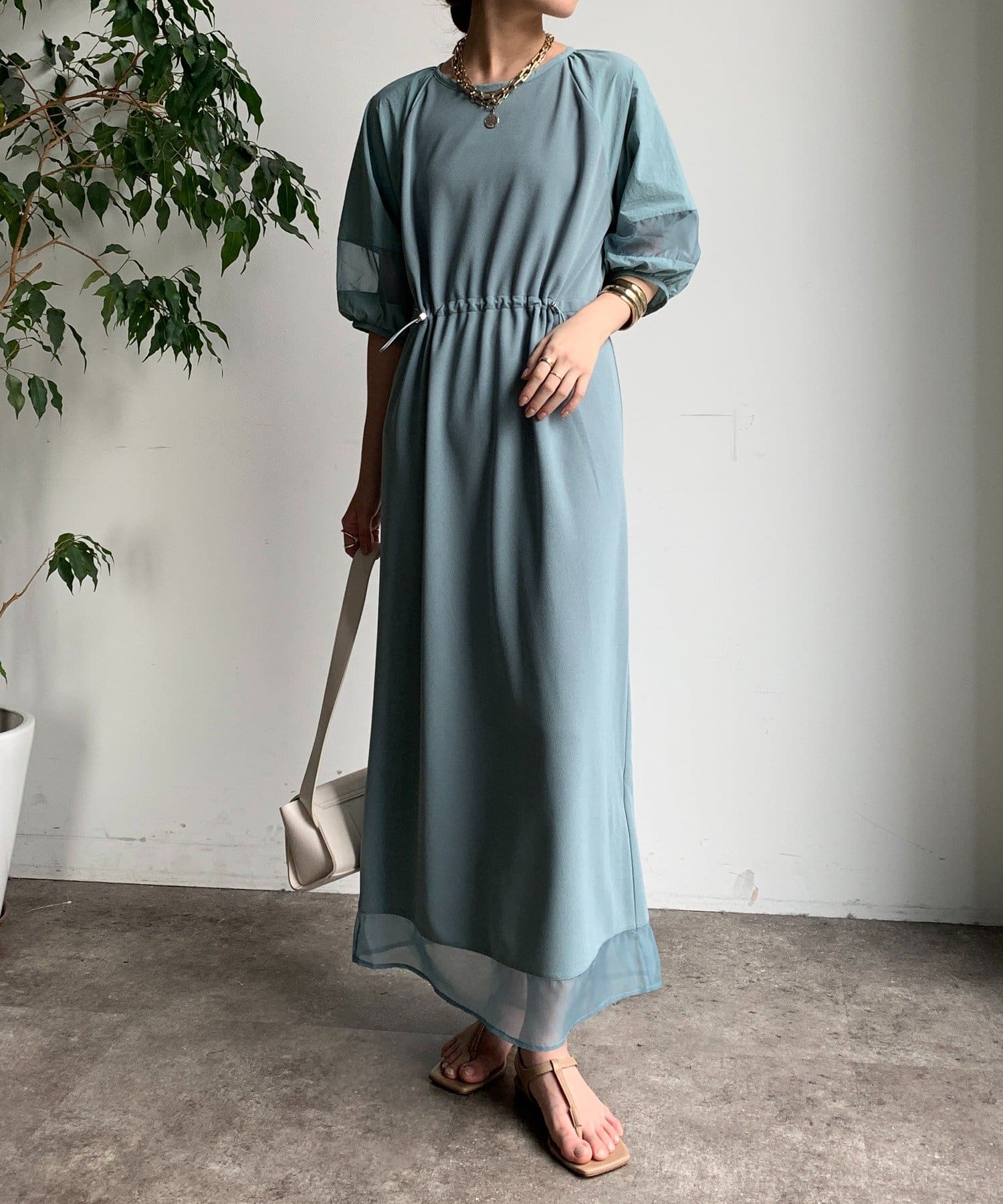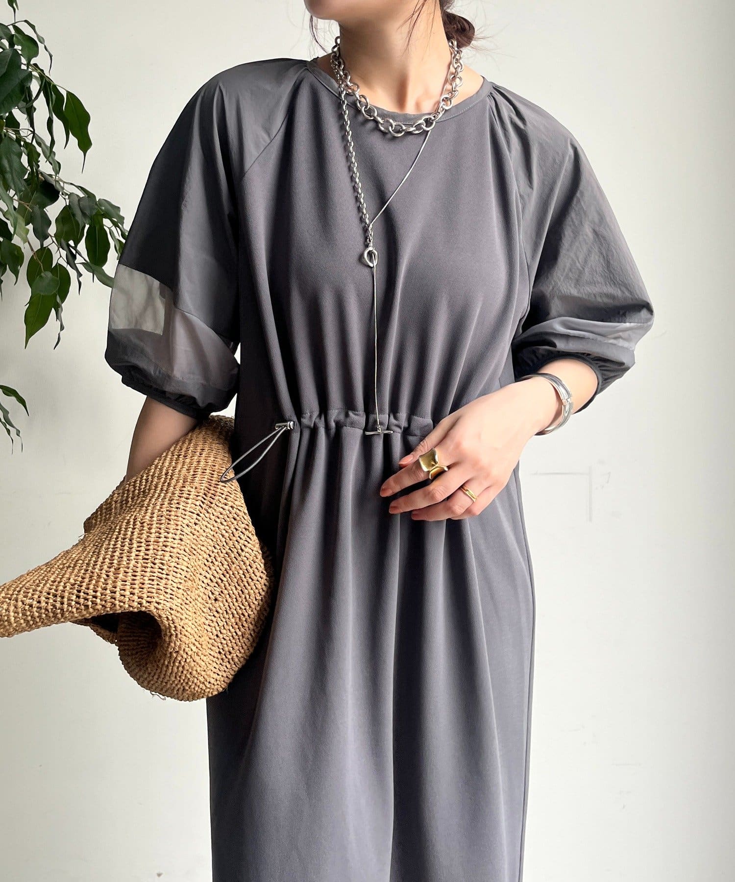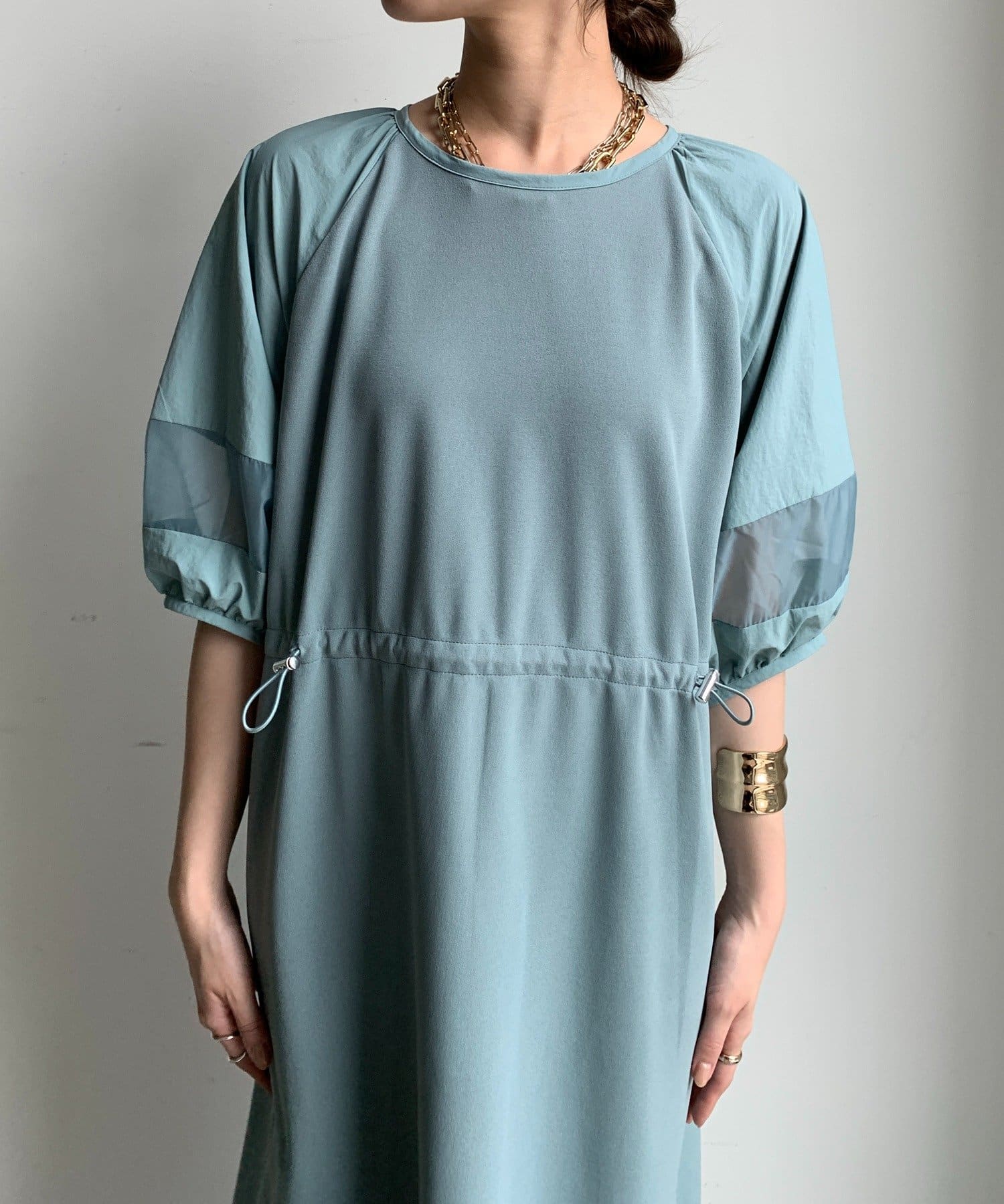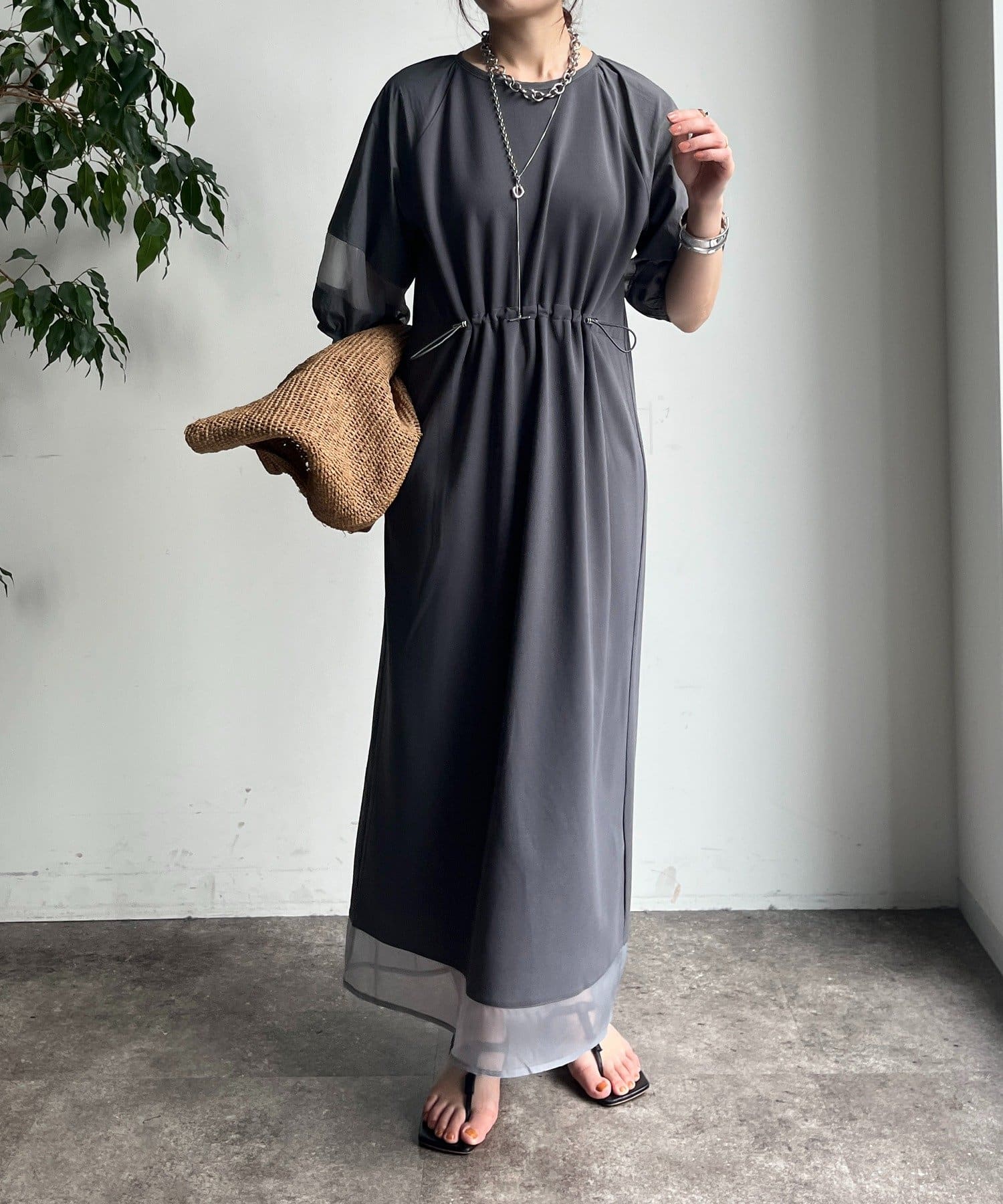 袖と裾には、エアリーなオーガンジーを組み合わせ、軽やかな抜け感をプラスしました!