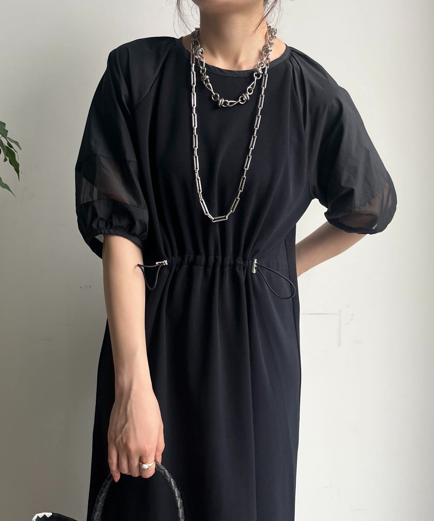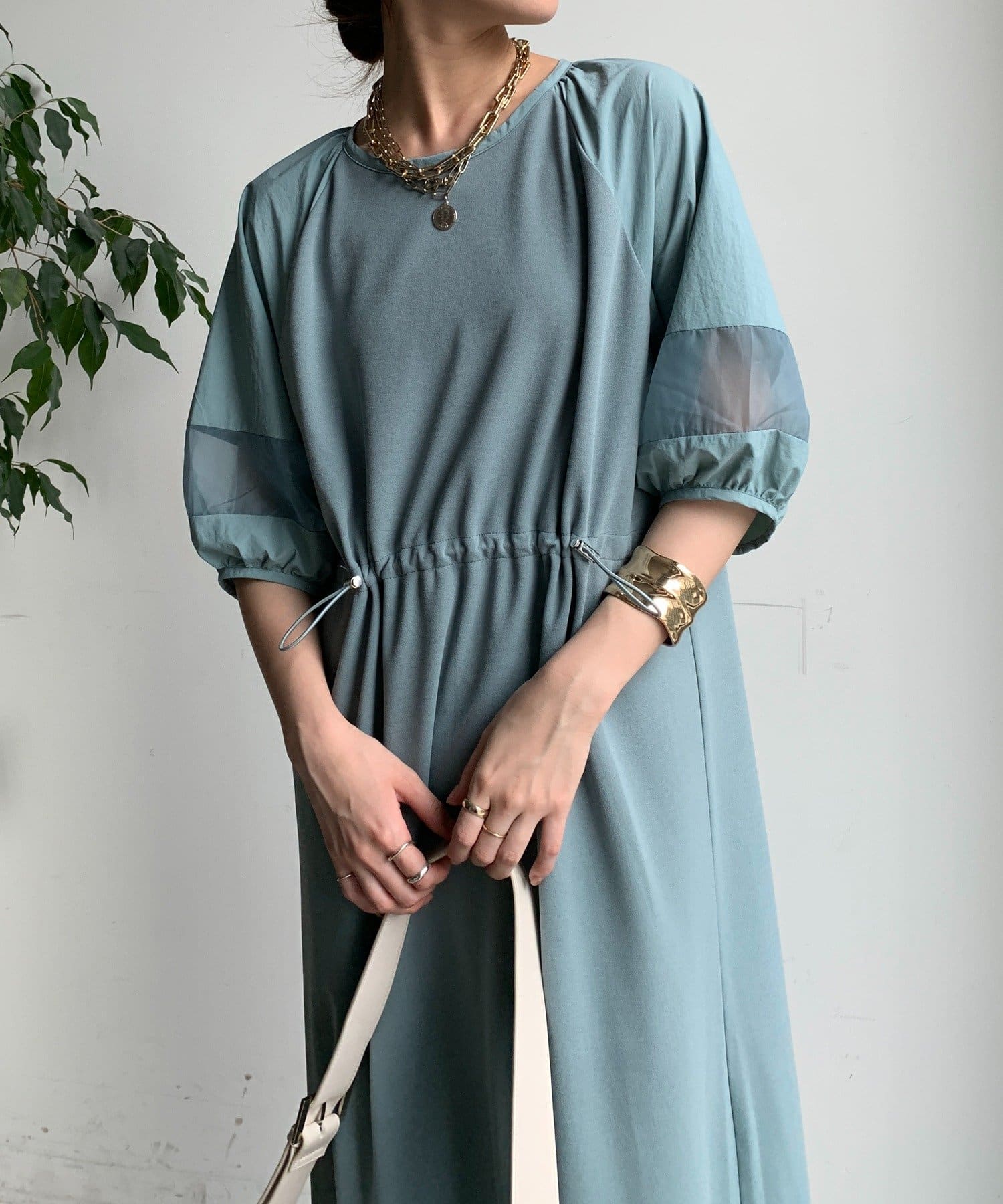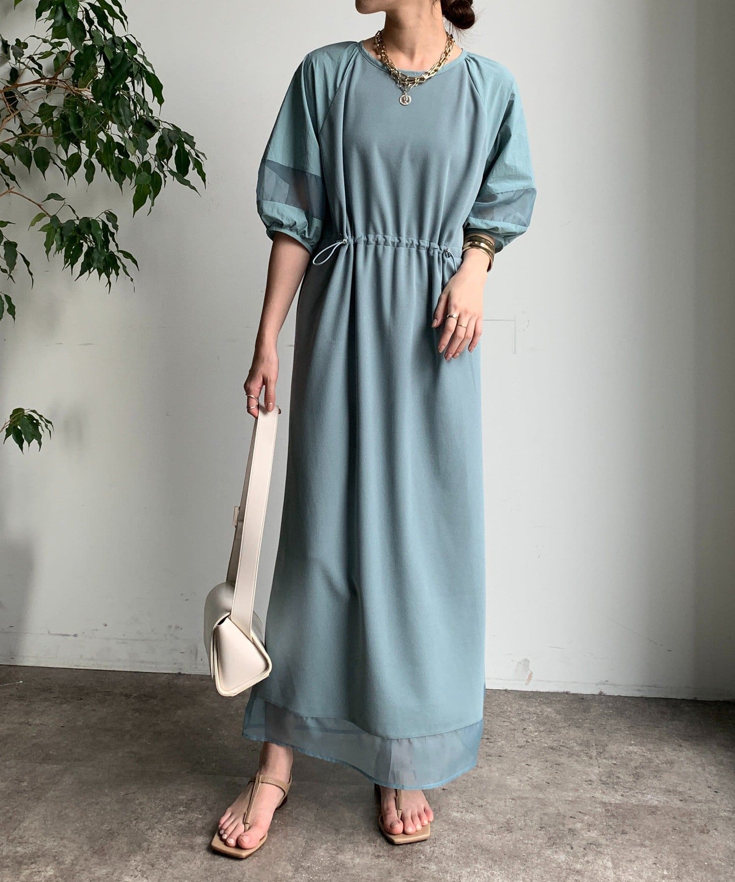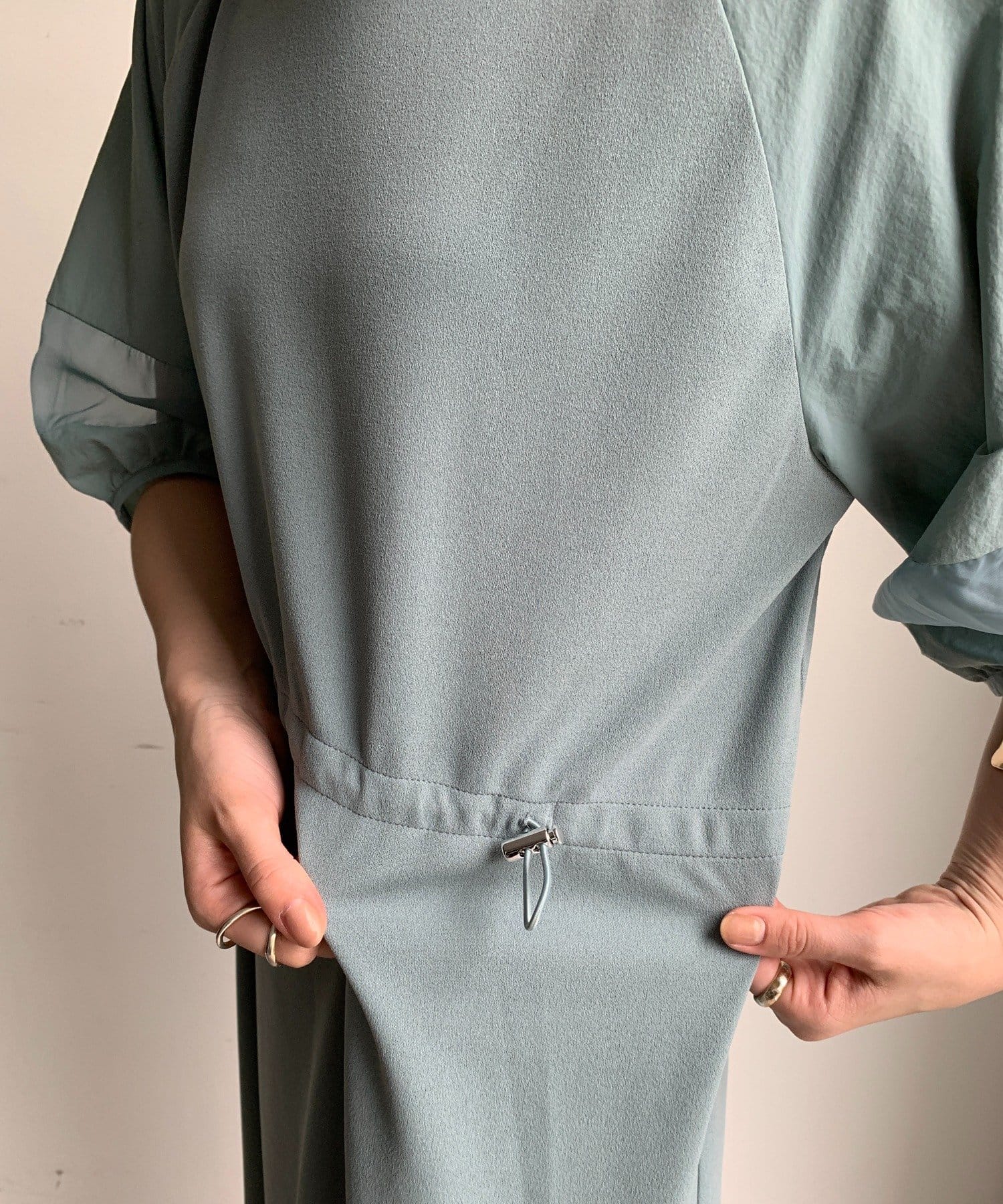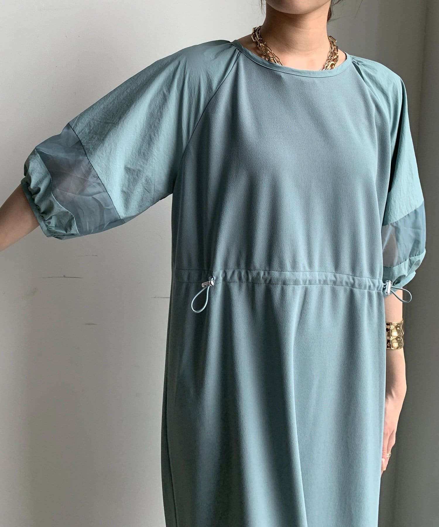 袖と裾には、エアリーなオーガンジーを組み合わせ、軽やかな抜け感をプラスしました!