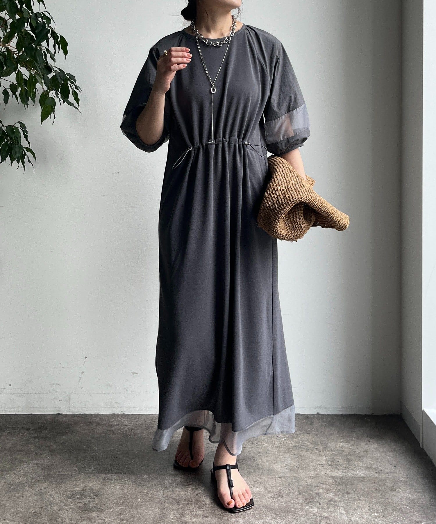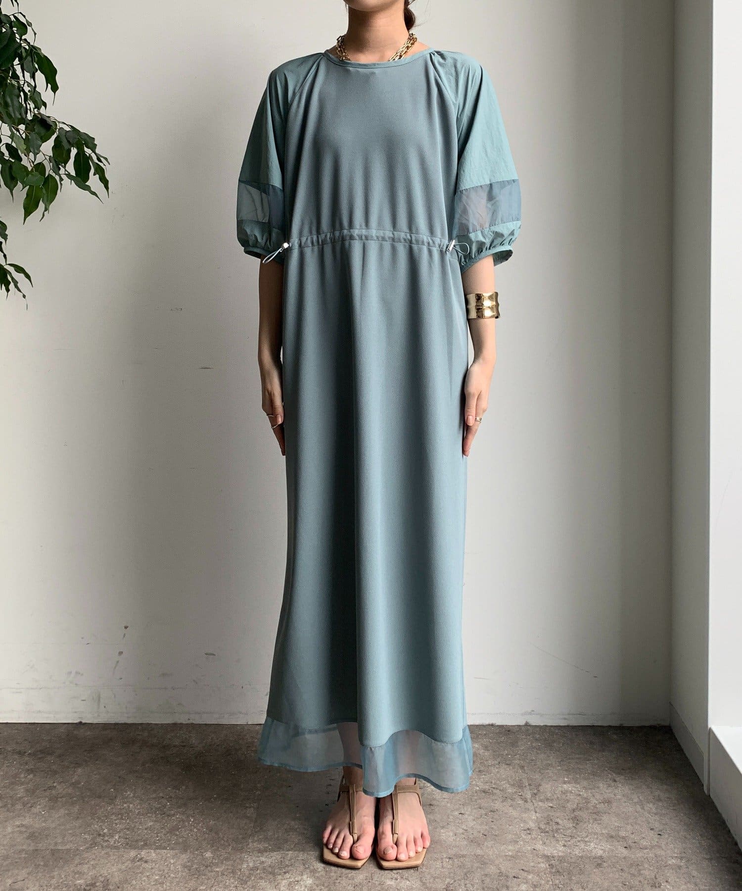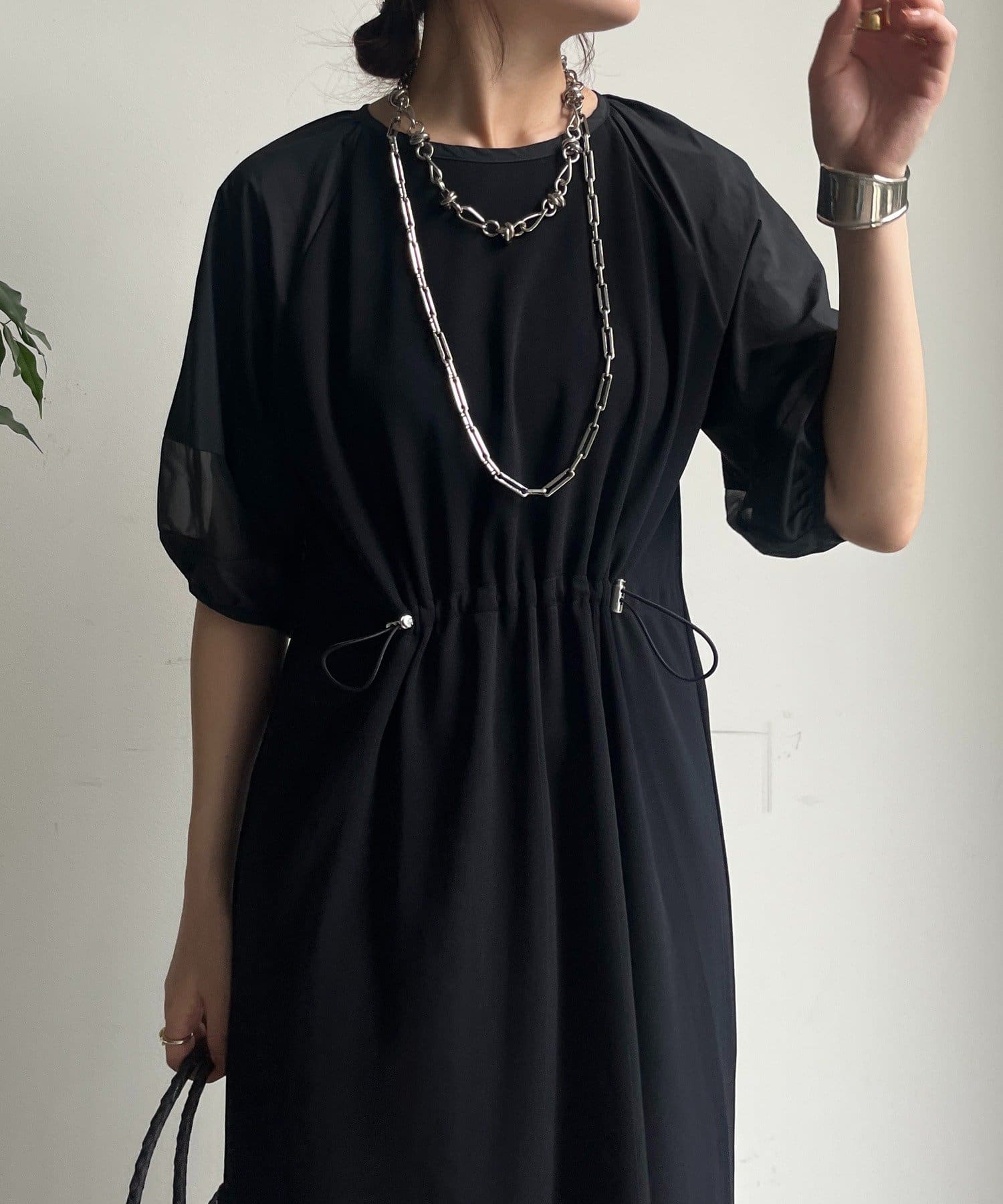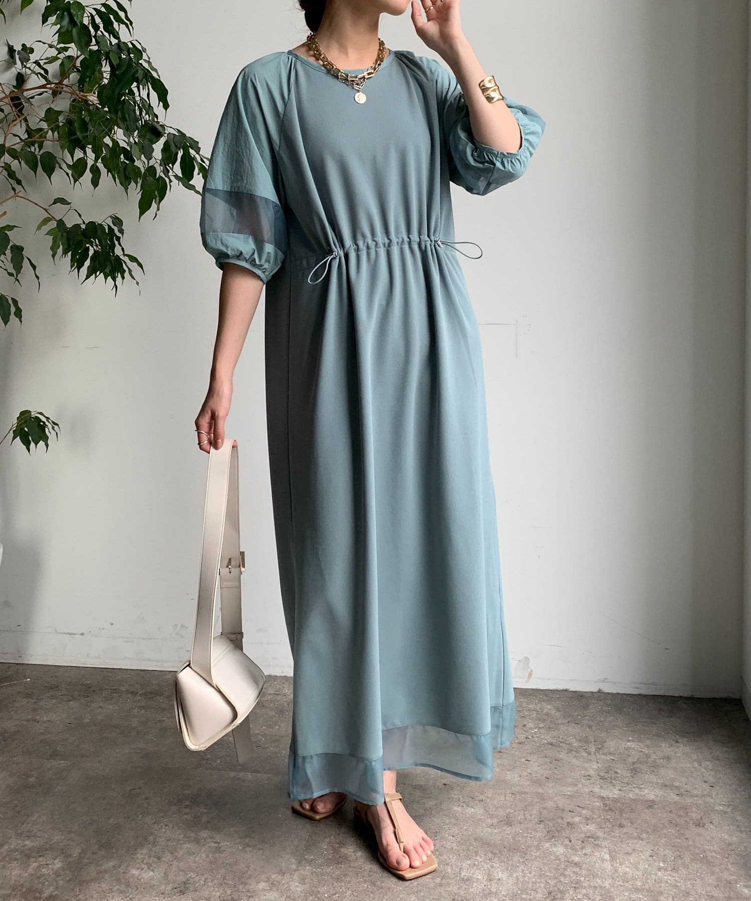 袖と裾には、エアリーなオーガンジーを組み合わせ、軽やかな抜け感をプラスしました!