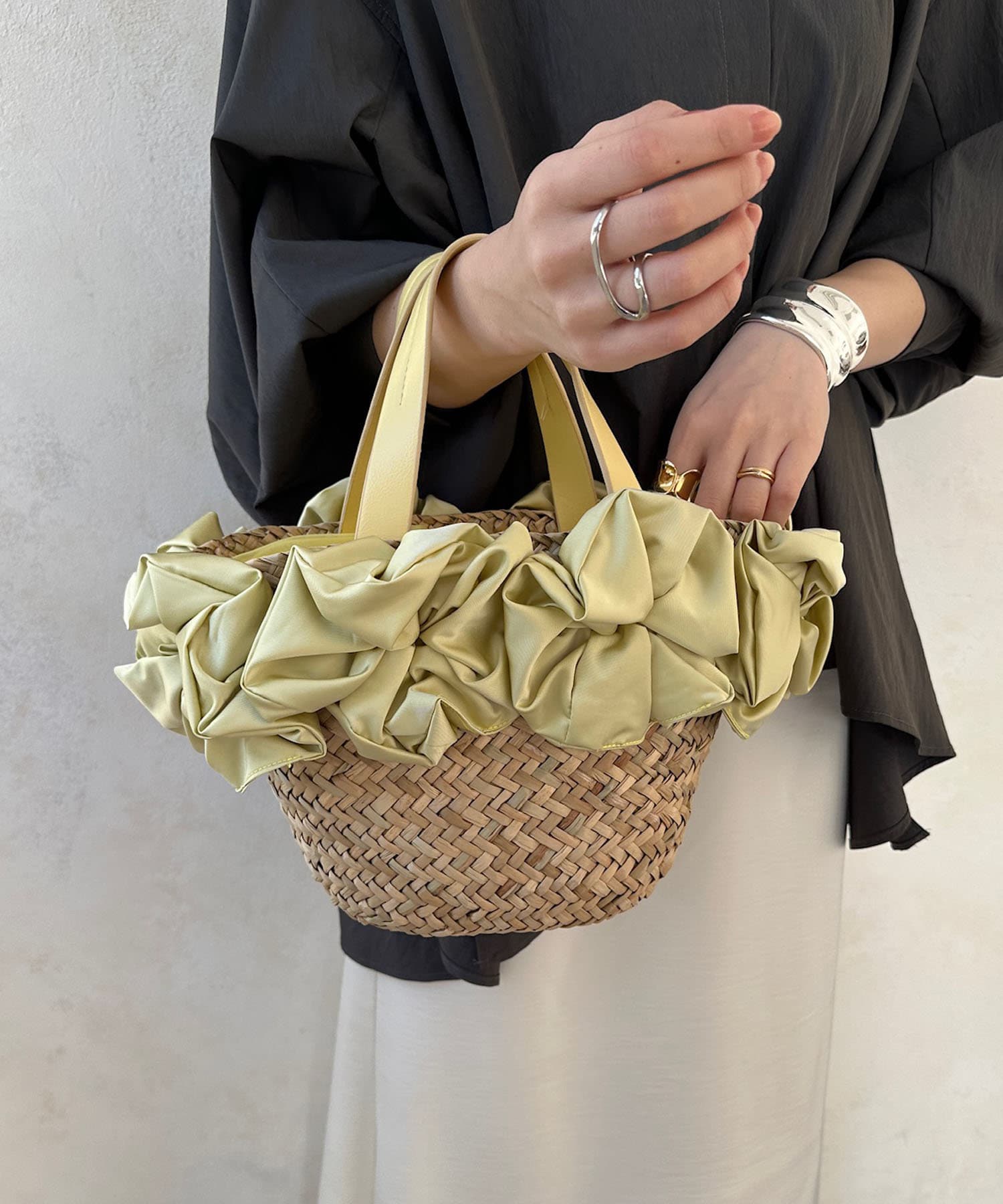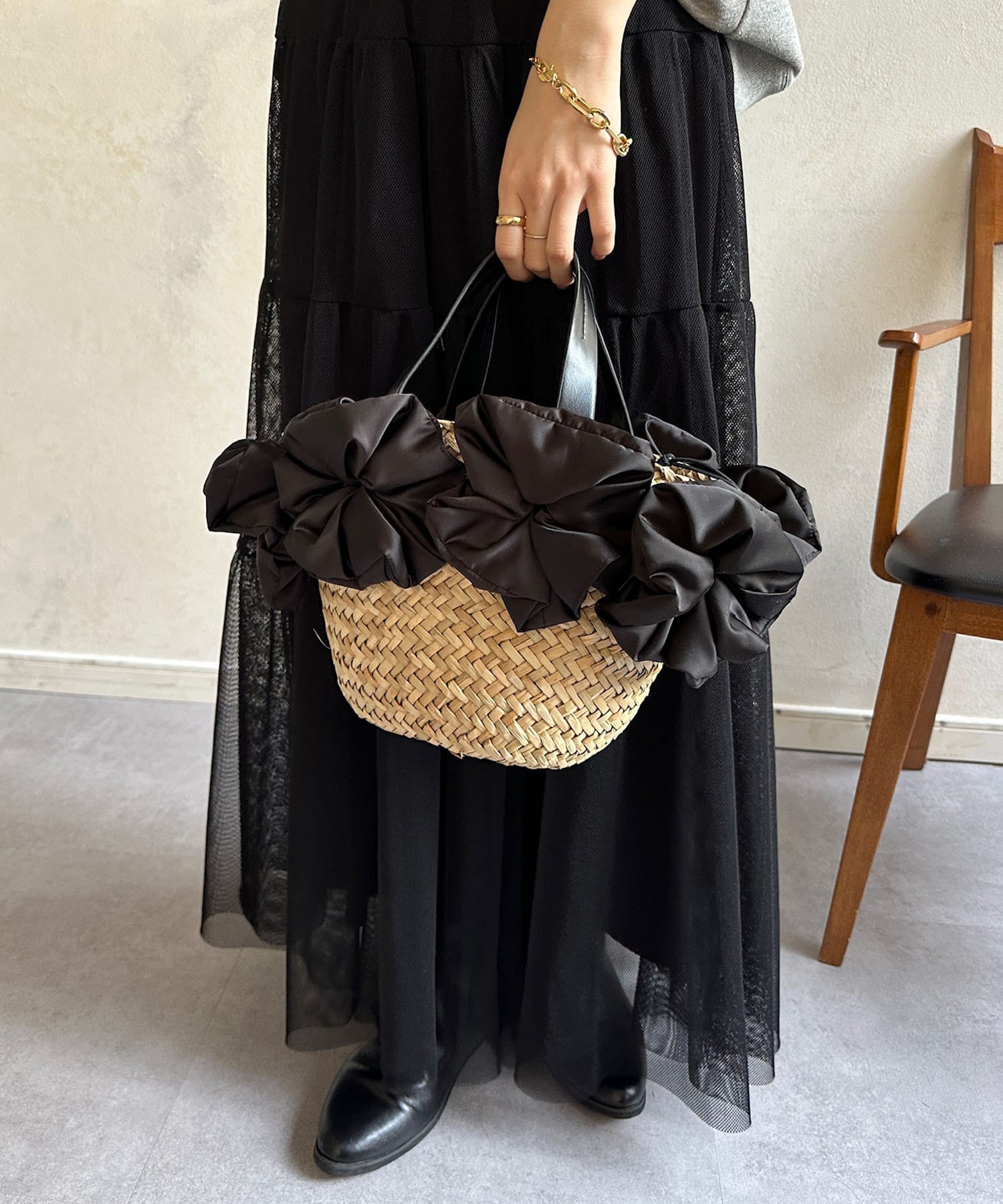 春夏のお出かけ気分をぐっと高めてくれる、コサージュカゴバッグ!
