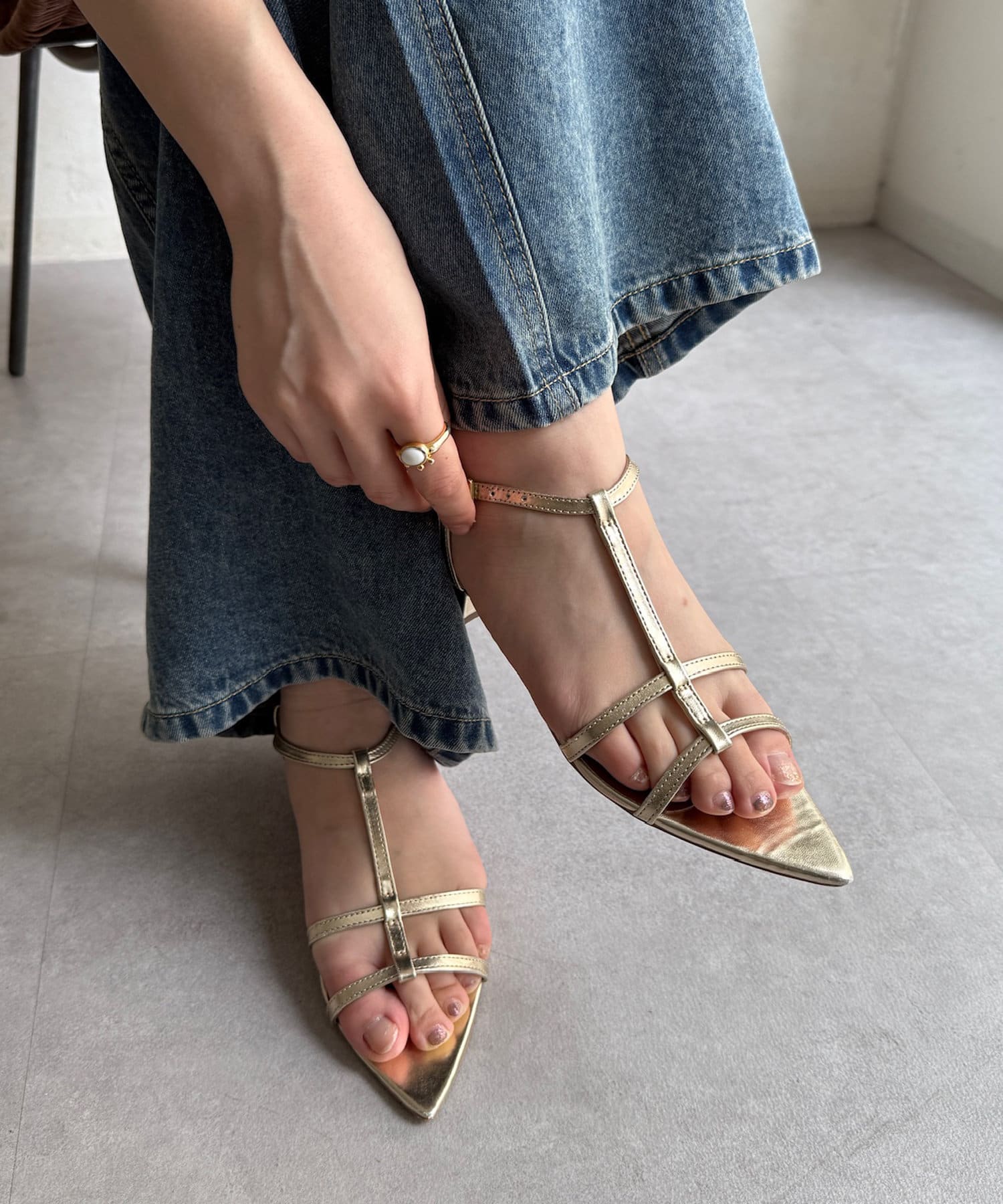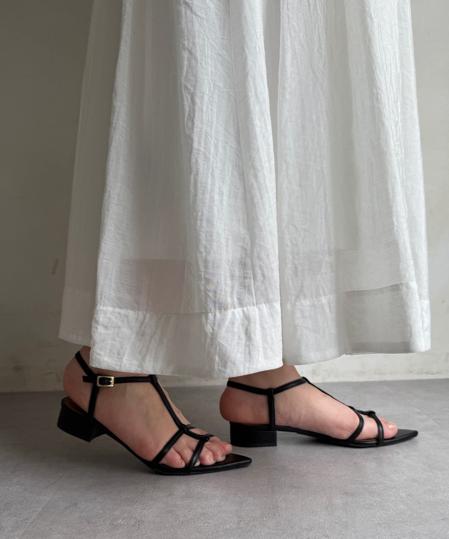 細身のTストラップなので足元に抜け感をプラスしてくれます。