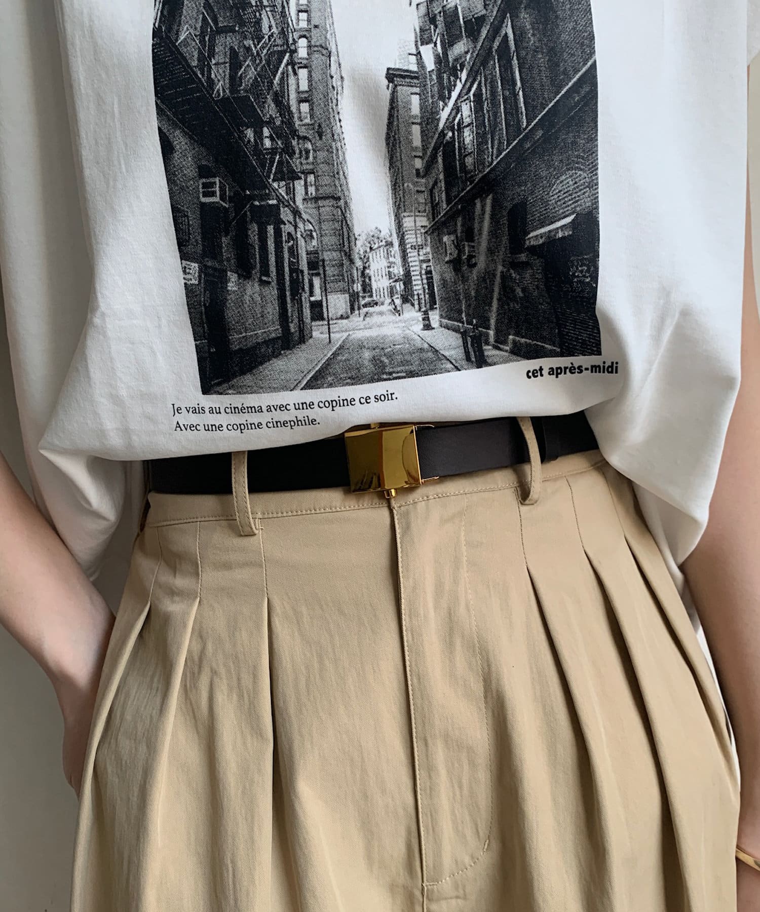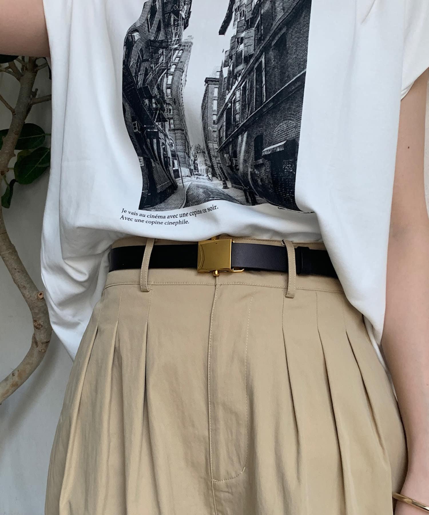 ベルトの幅は、主張しすぎず、それでいてしっかりとウエストをマークしてくれる絶妙なサイジング。