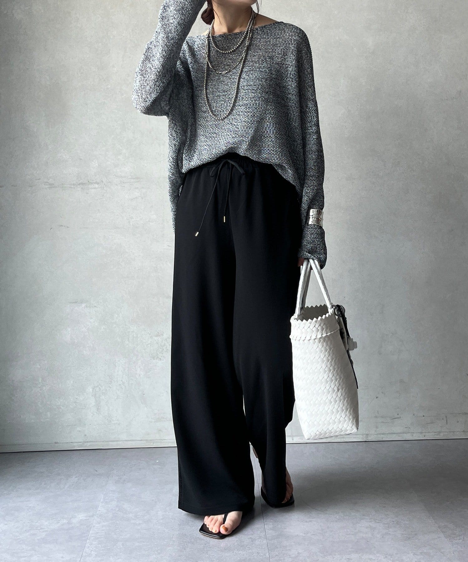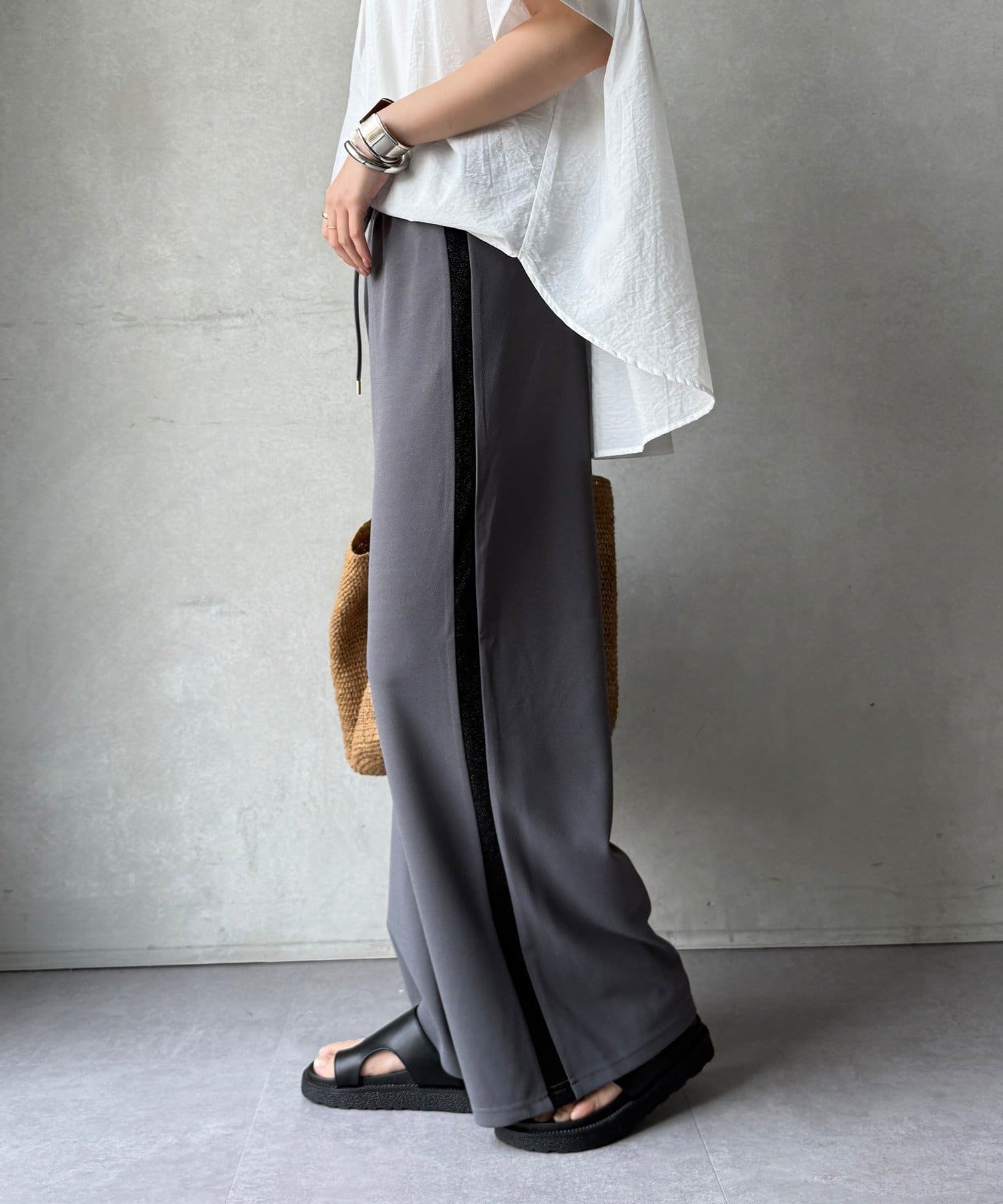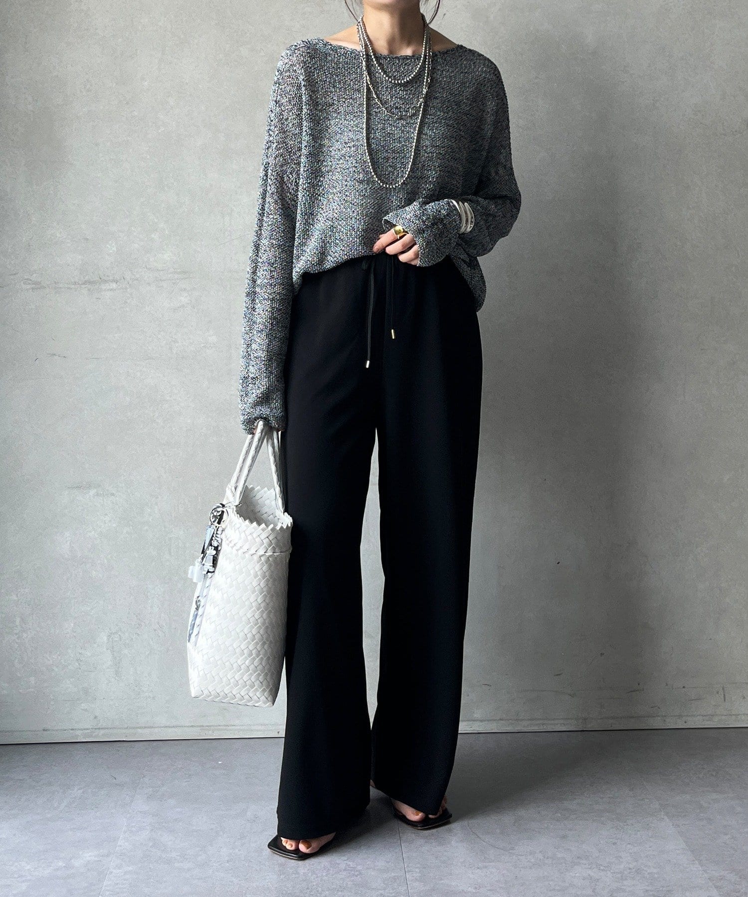 側面に入ったラメラインが視線を引き、コーデにアクセントをプラス。華やかさもUP!
