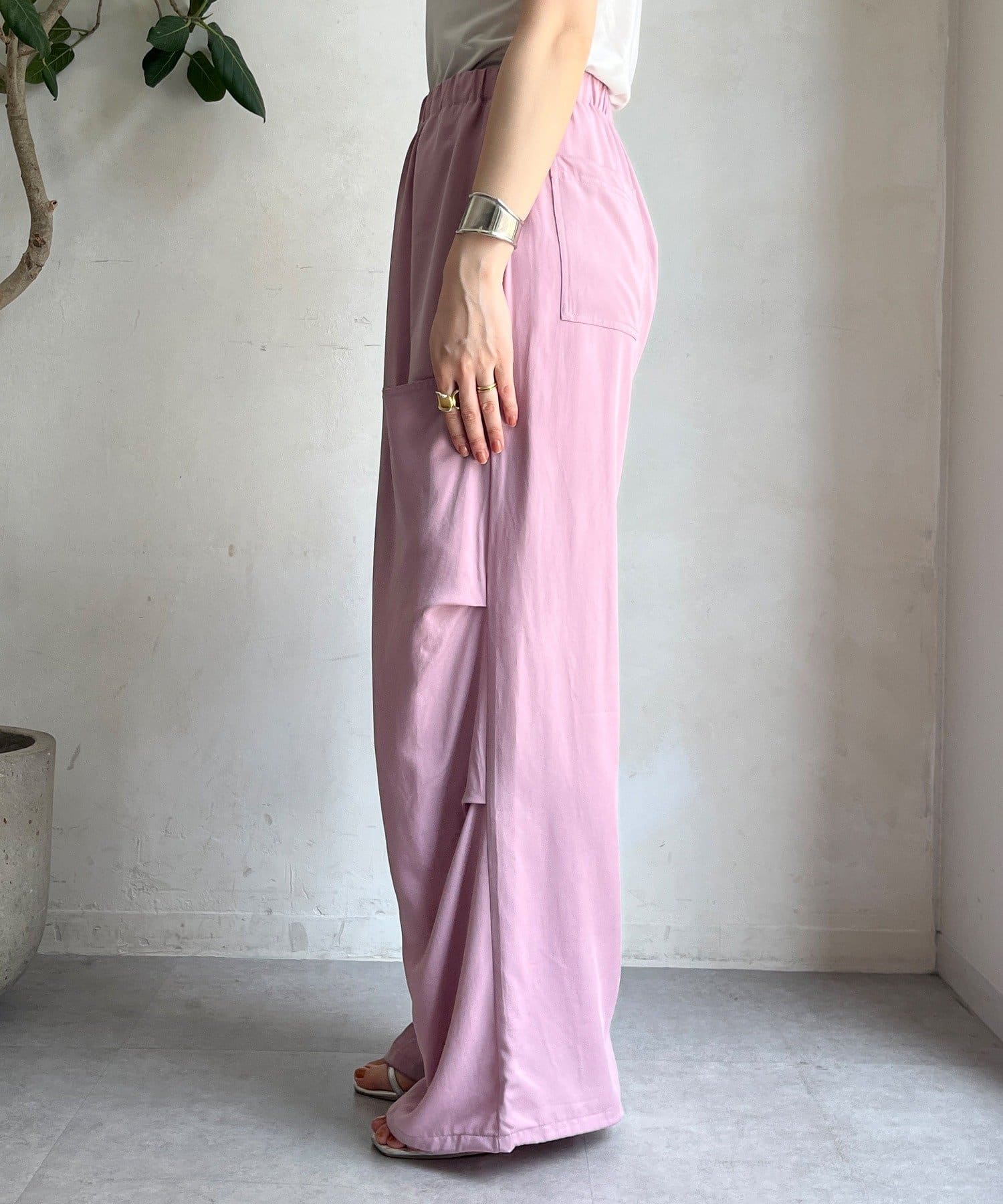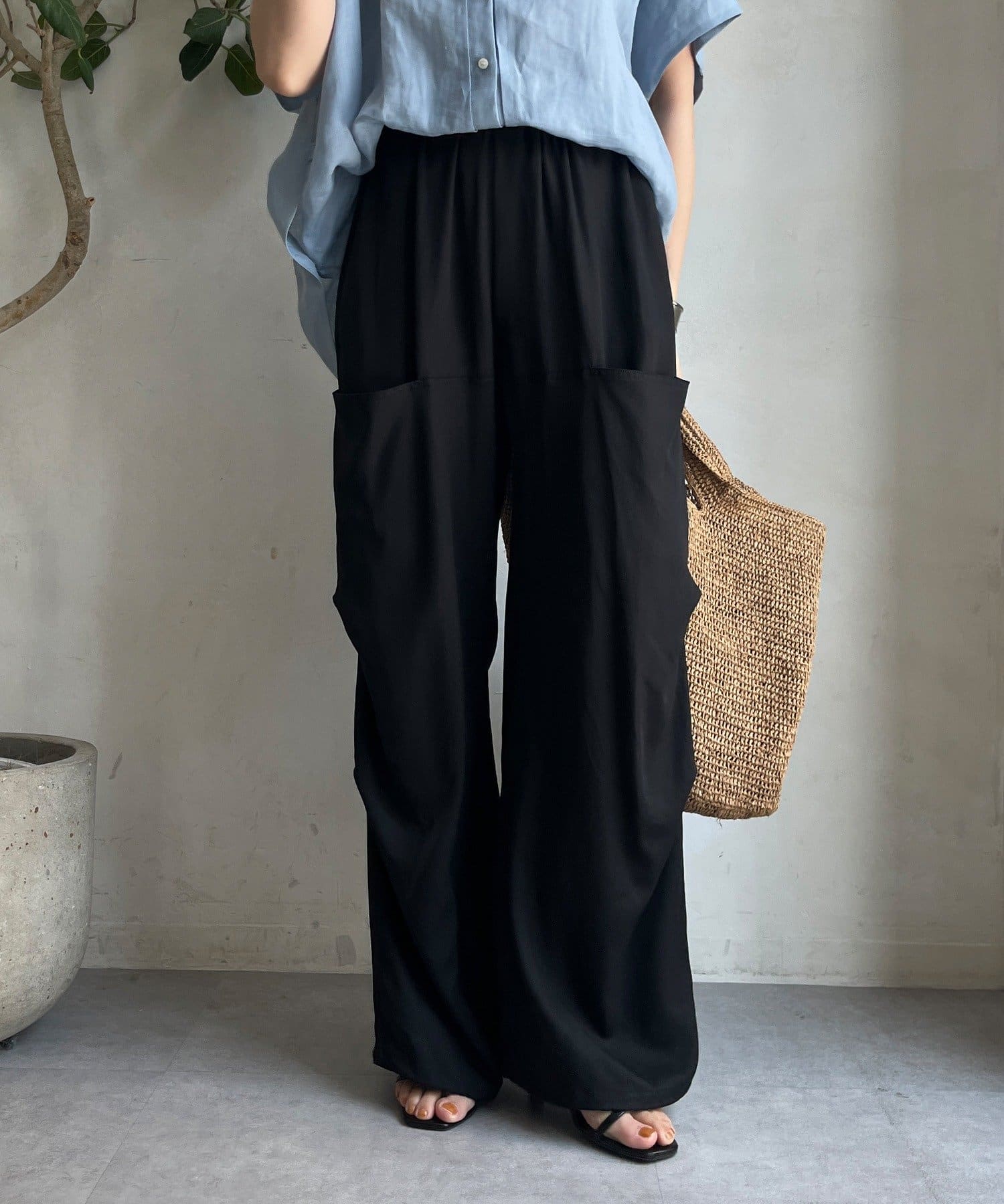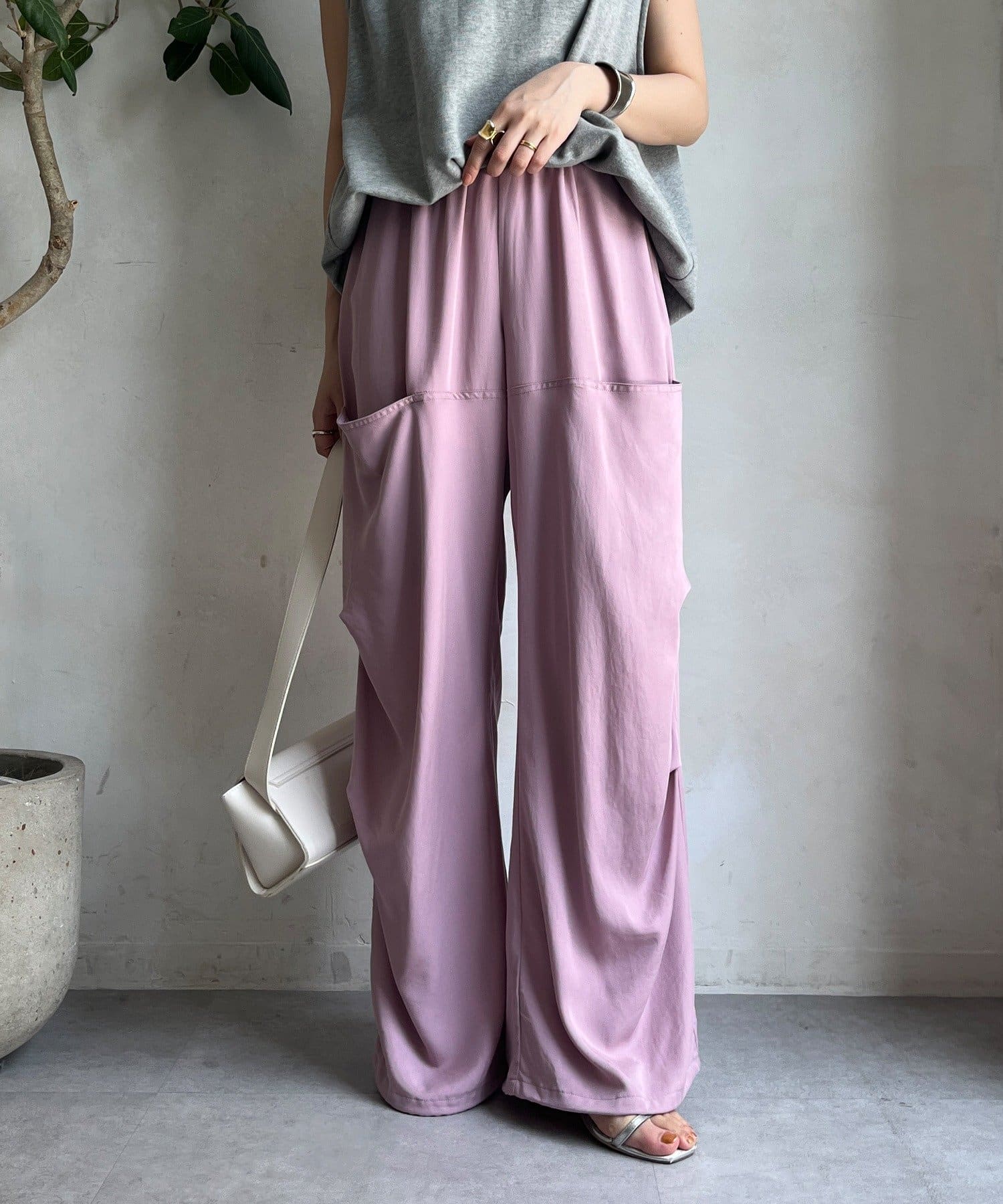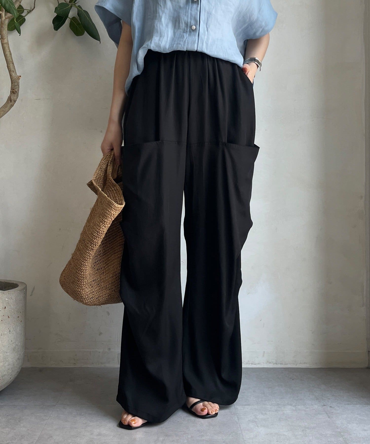 太すぎないストレートのようなシルエットに、サイドのポケットとタックがポイント。