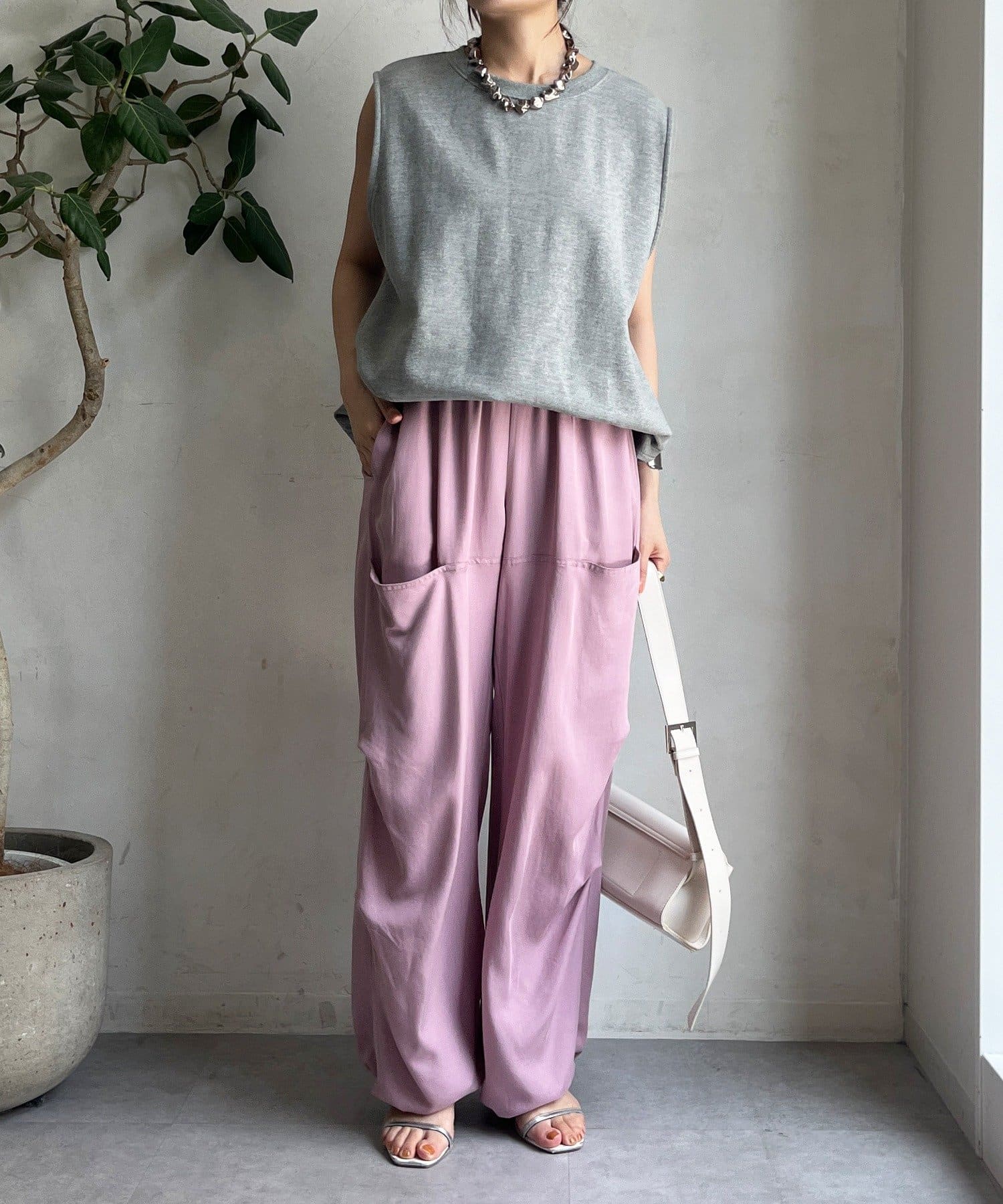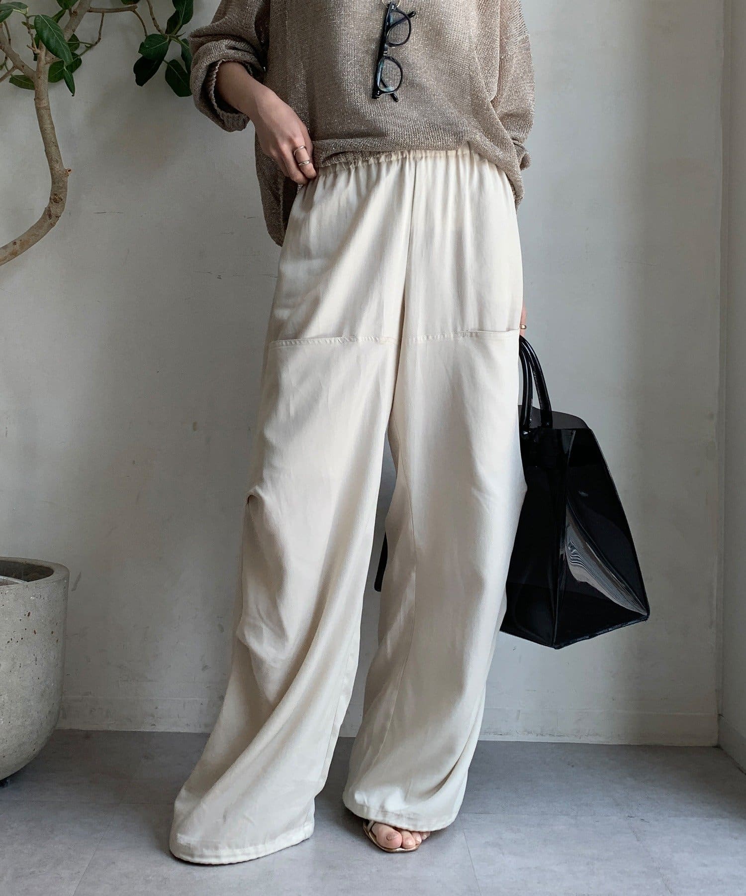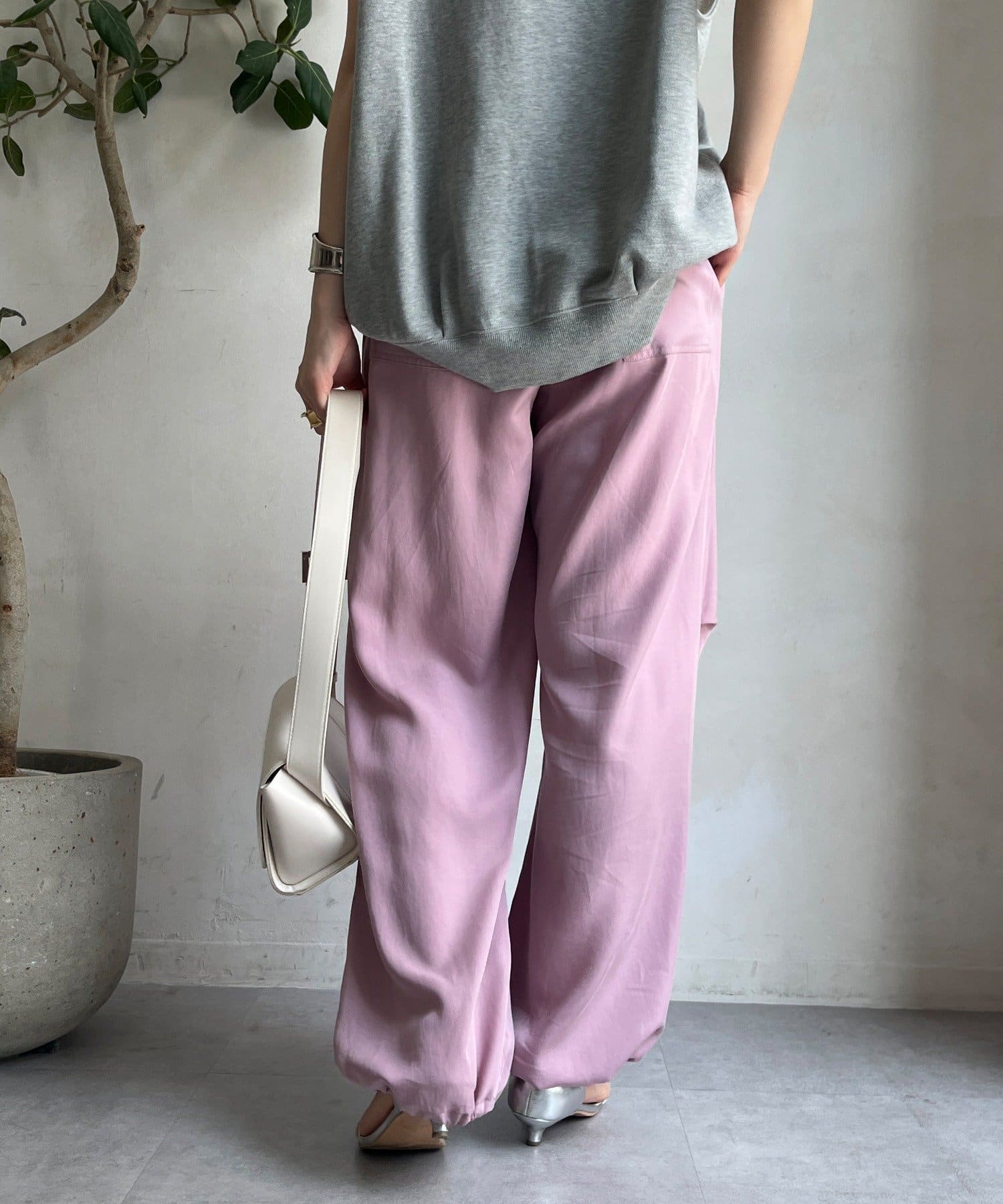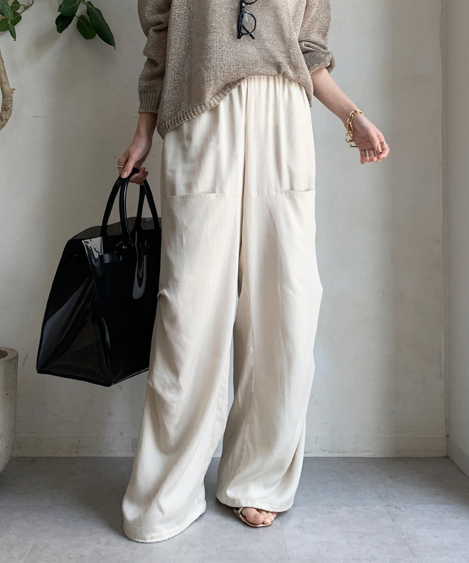 太すぎないストレートのようなシルエットに、サイドのポケットとタックがポイント。