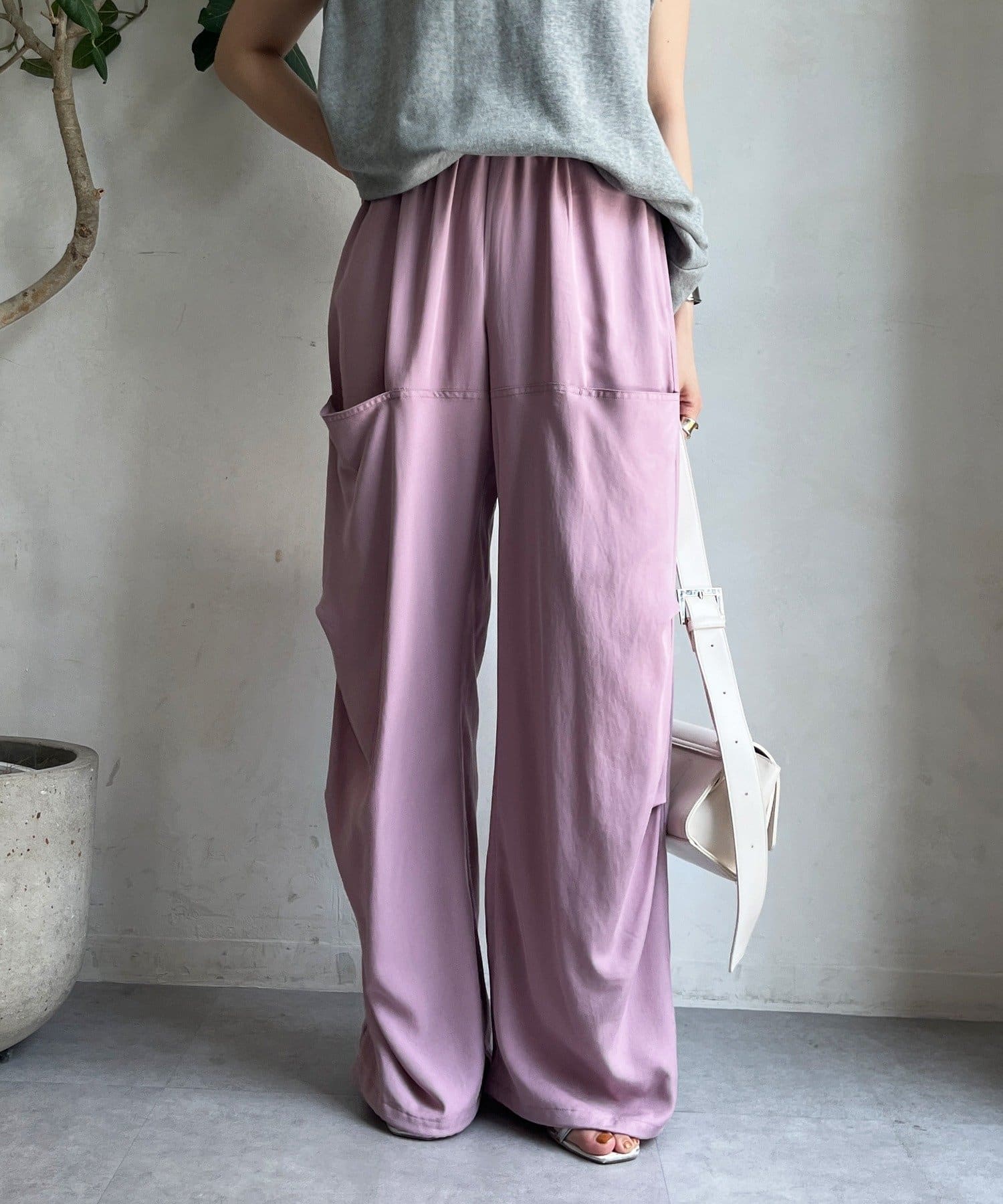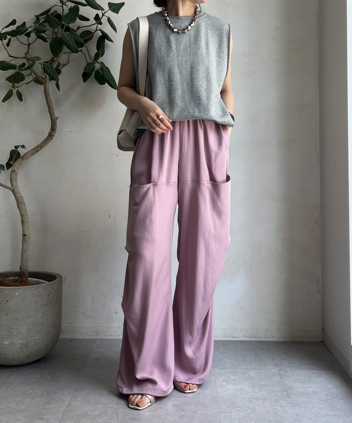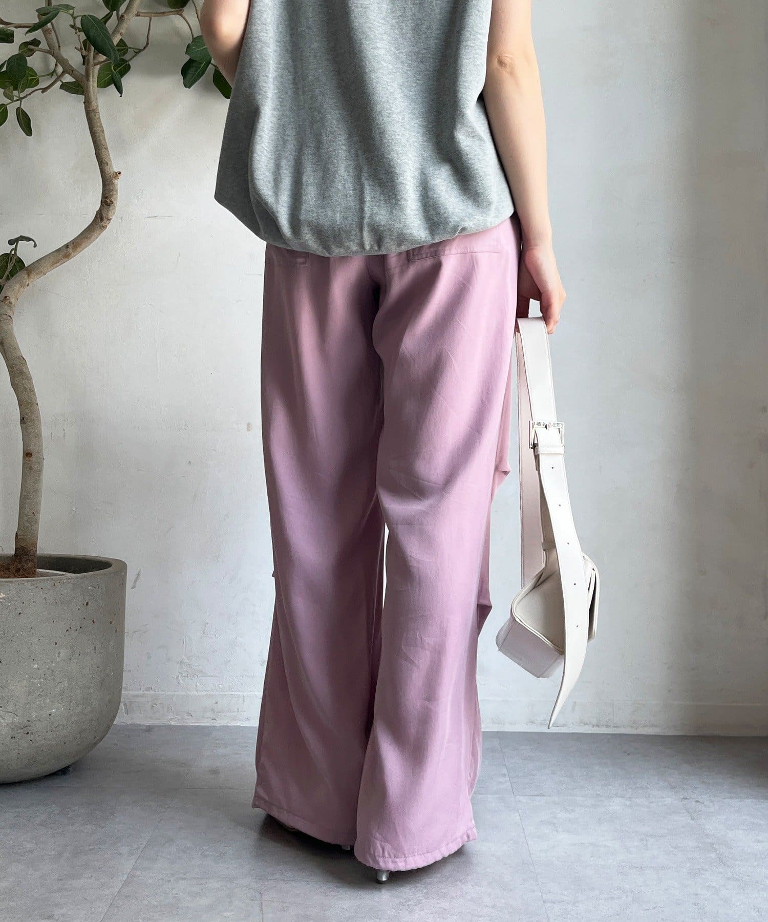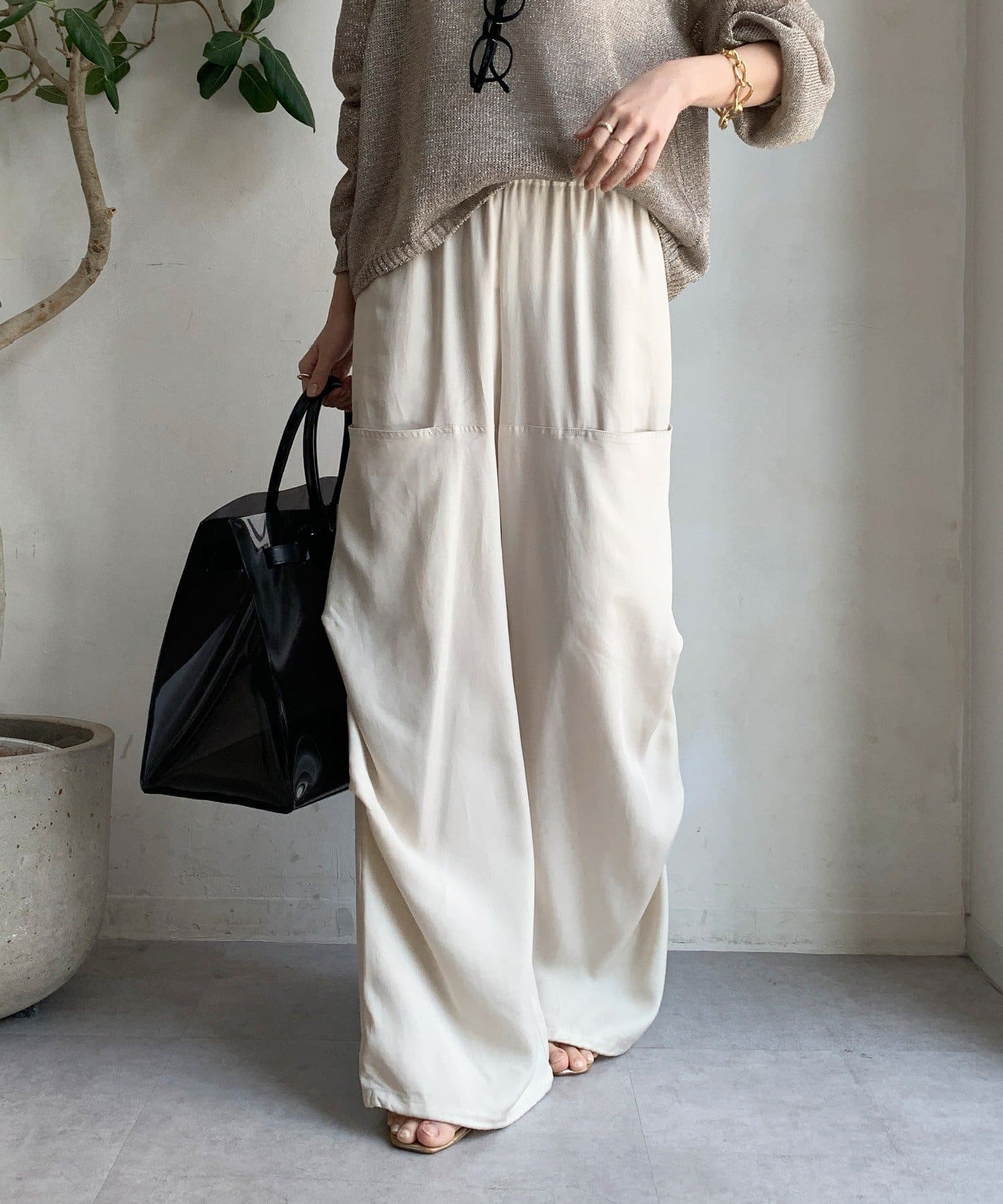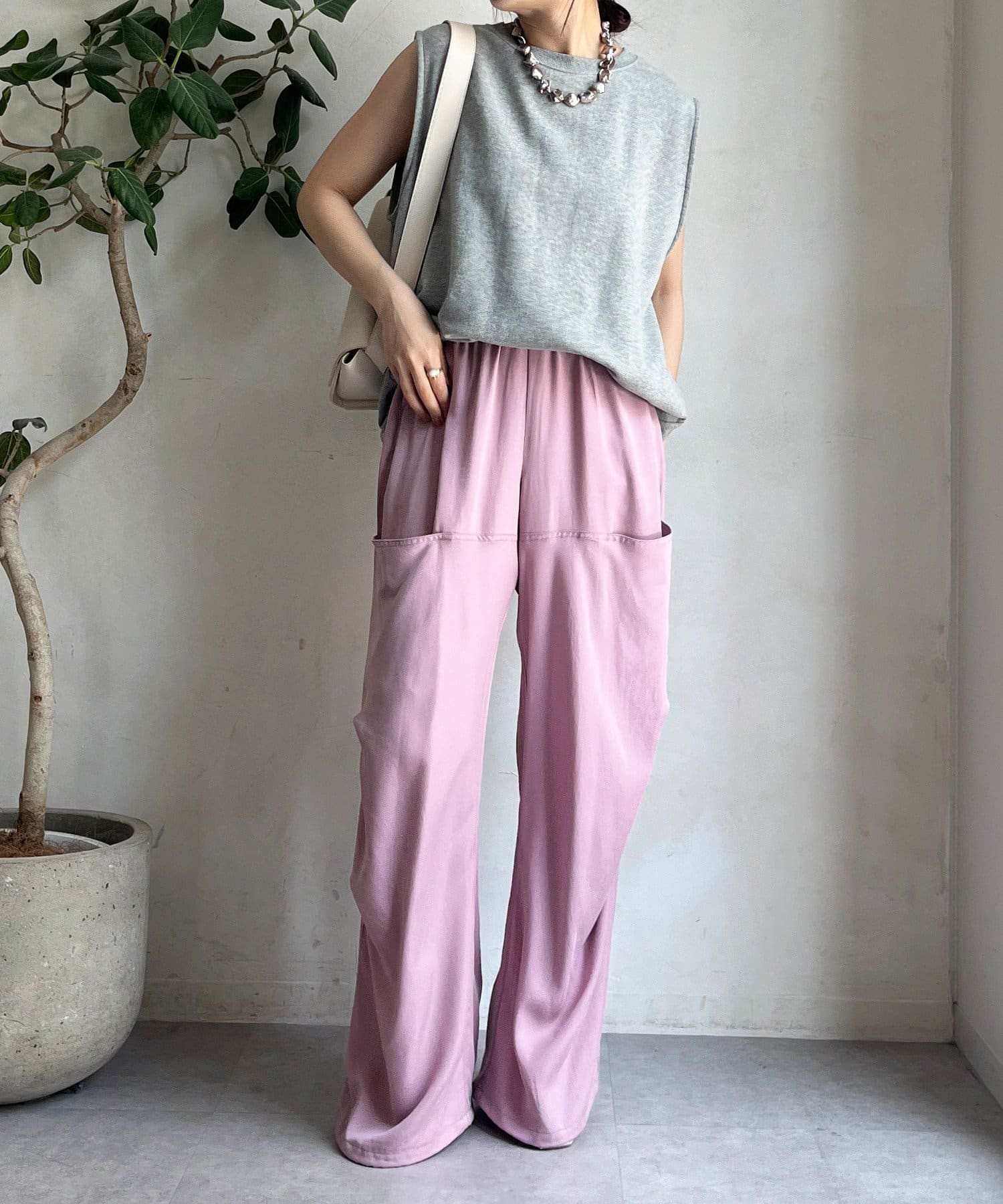 太すぎないストレートのようなシルエットに、サイドのポケットとタックがポイント。