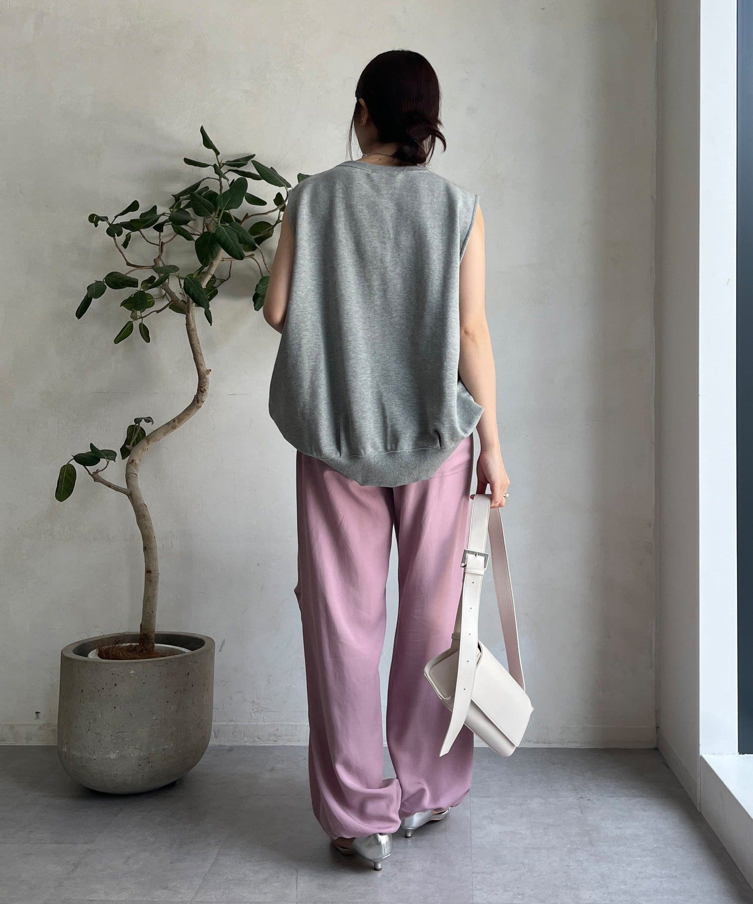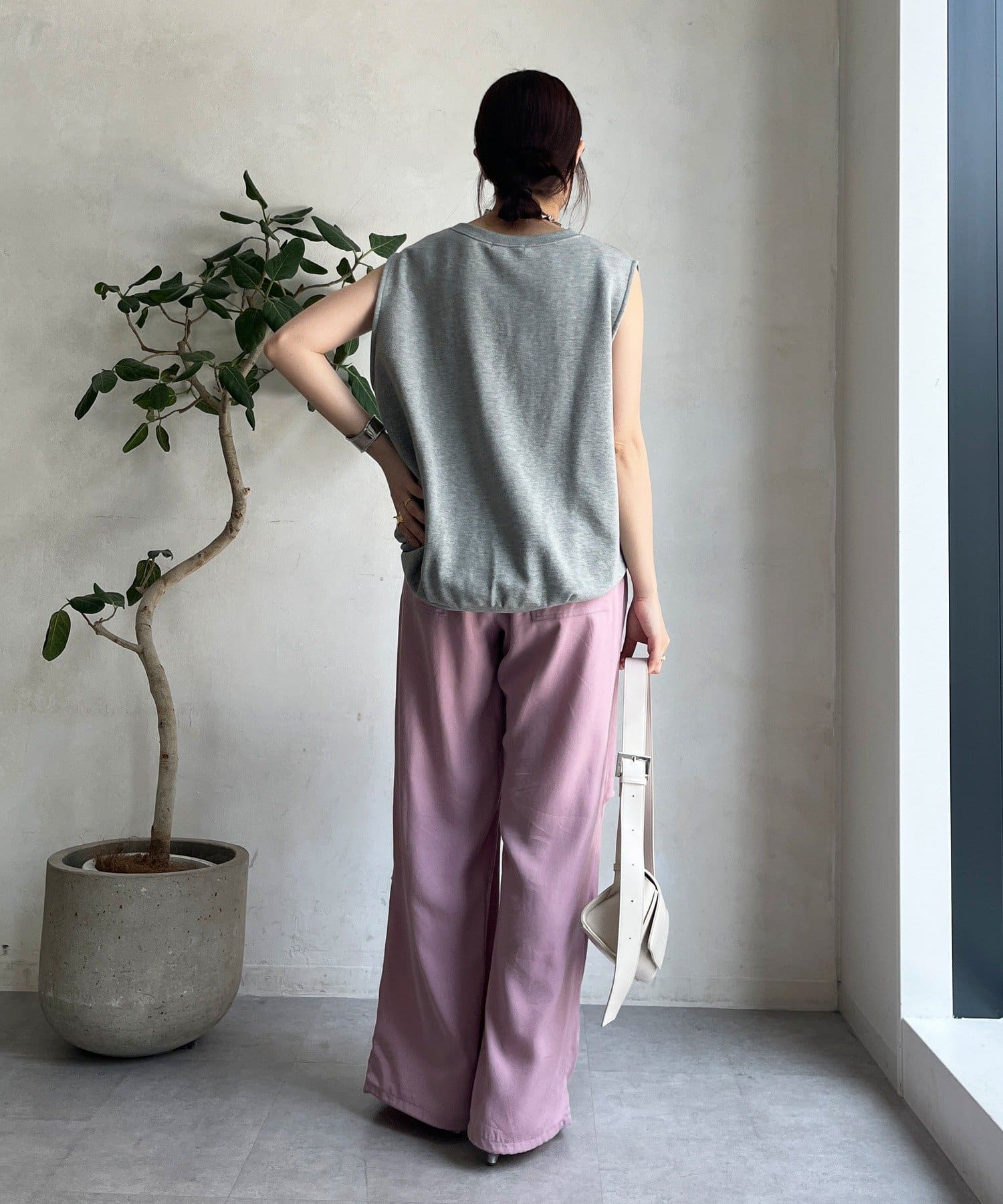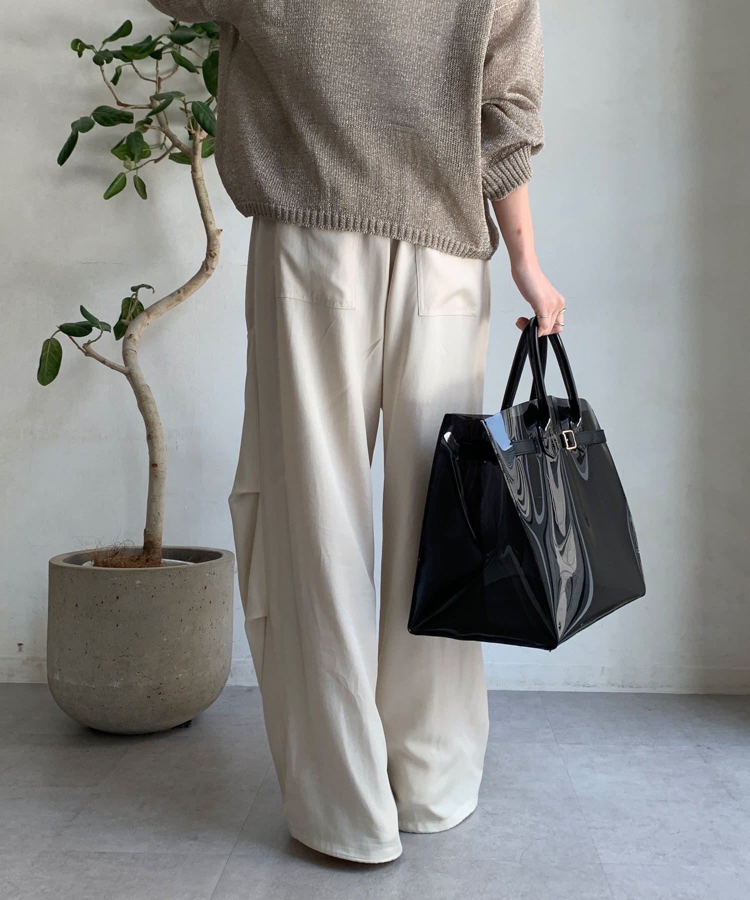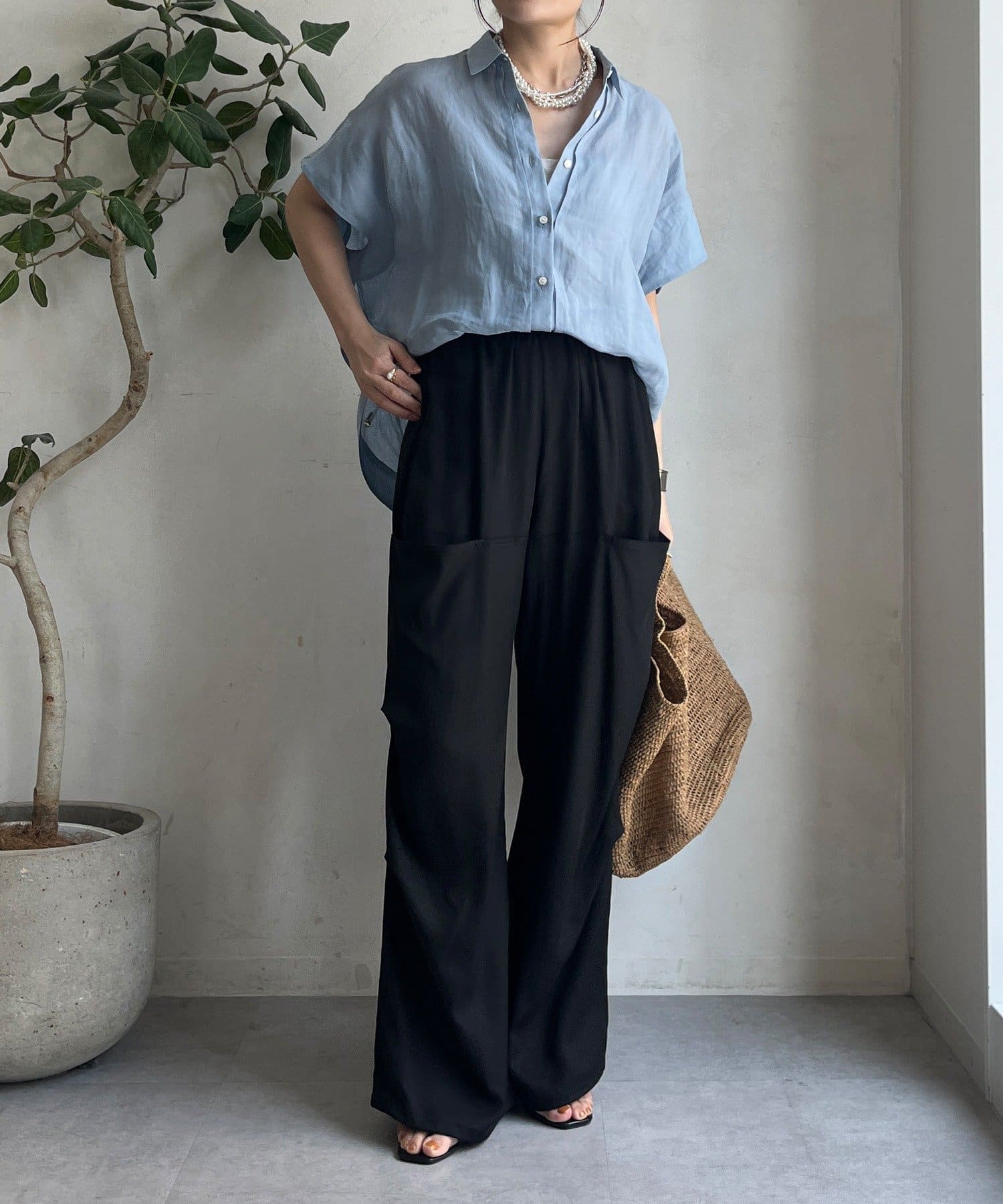太すぎないストレートのようなシルエットに、サイドのポケットとタックがポイント。