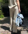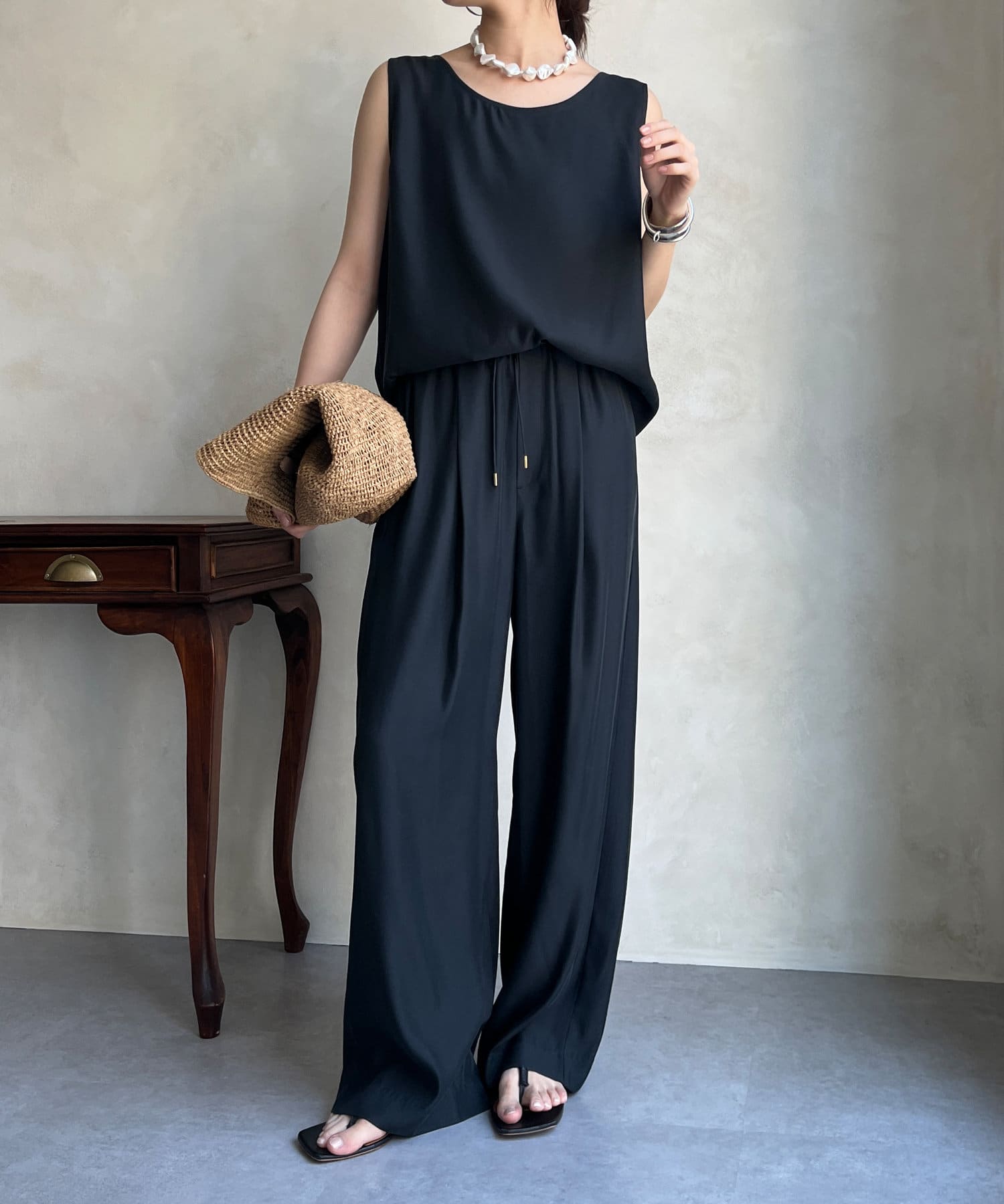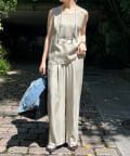 同素材のタンクブラウスとセットアップでの着用がおすすめです。