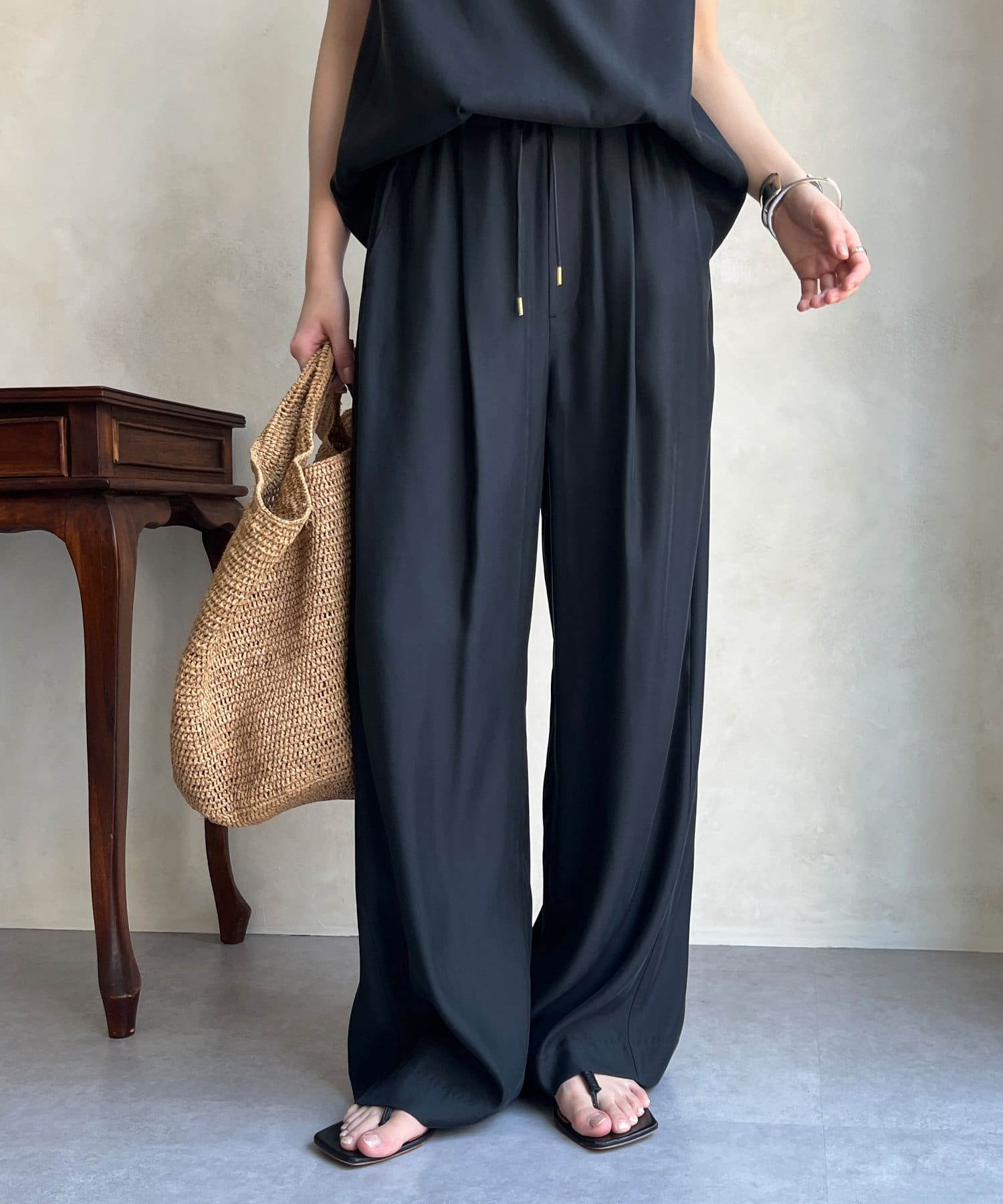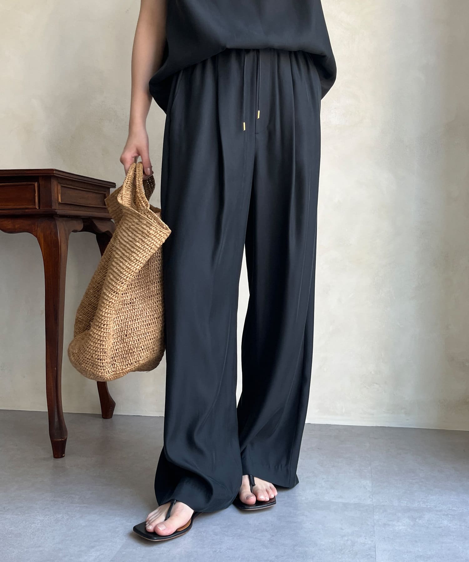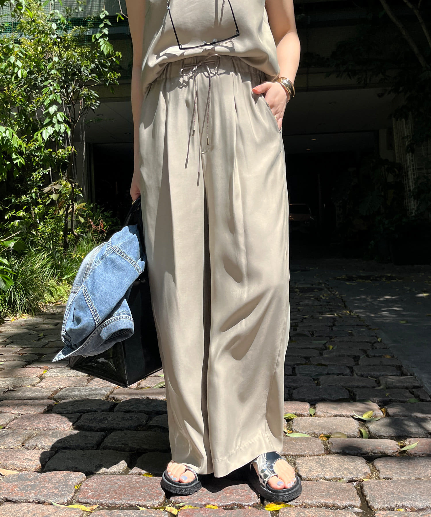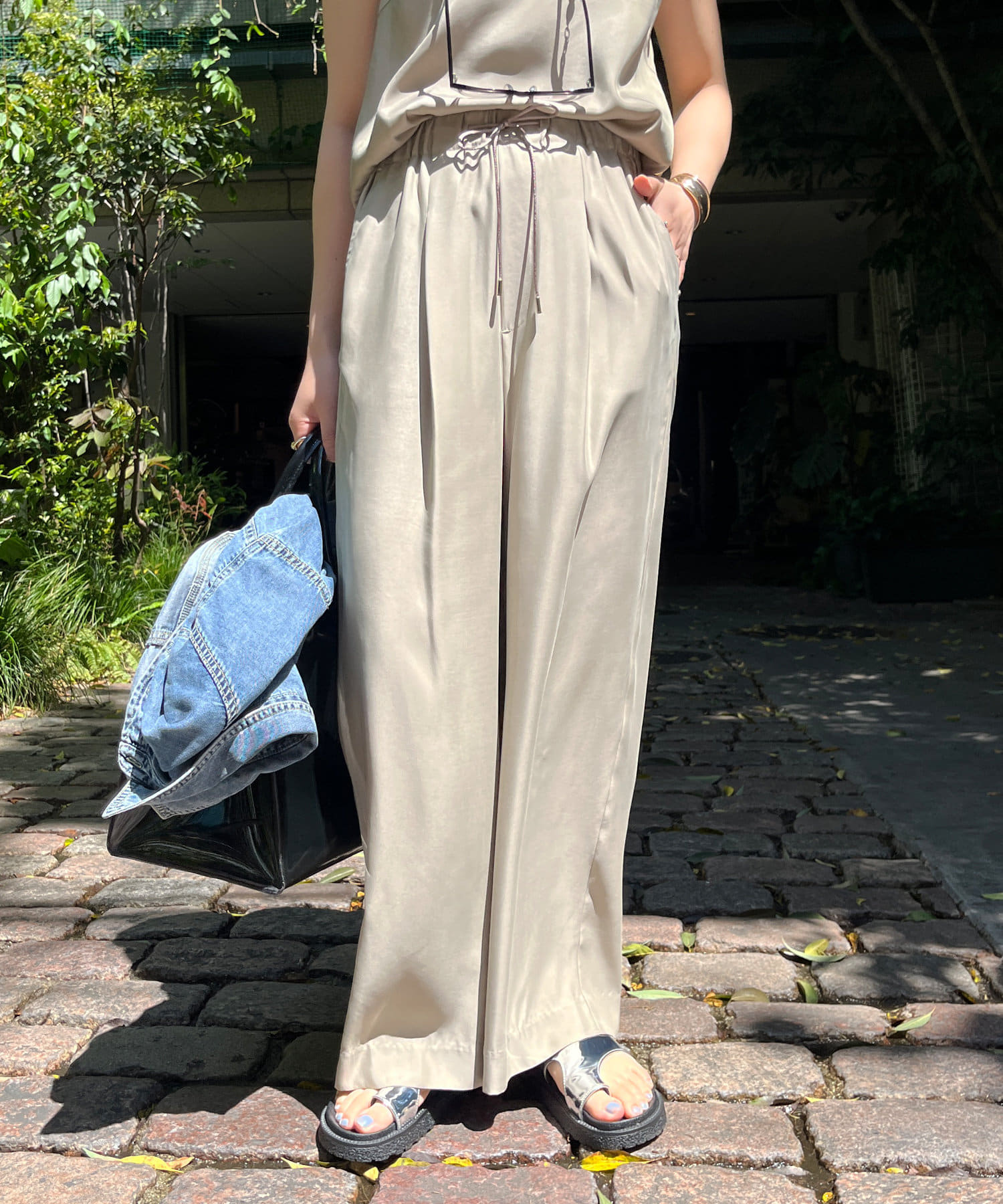 とろみ感のあるしなやかな素材が上品な印象のパンツ。