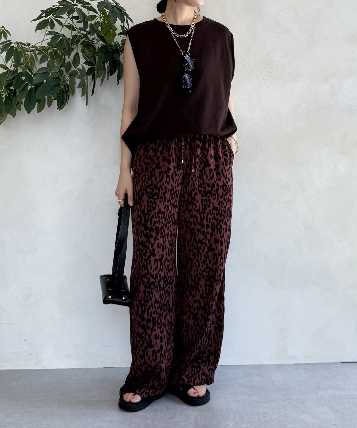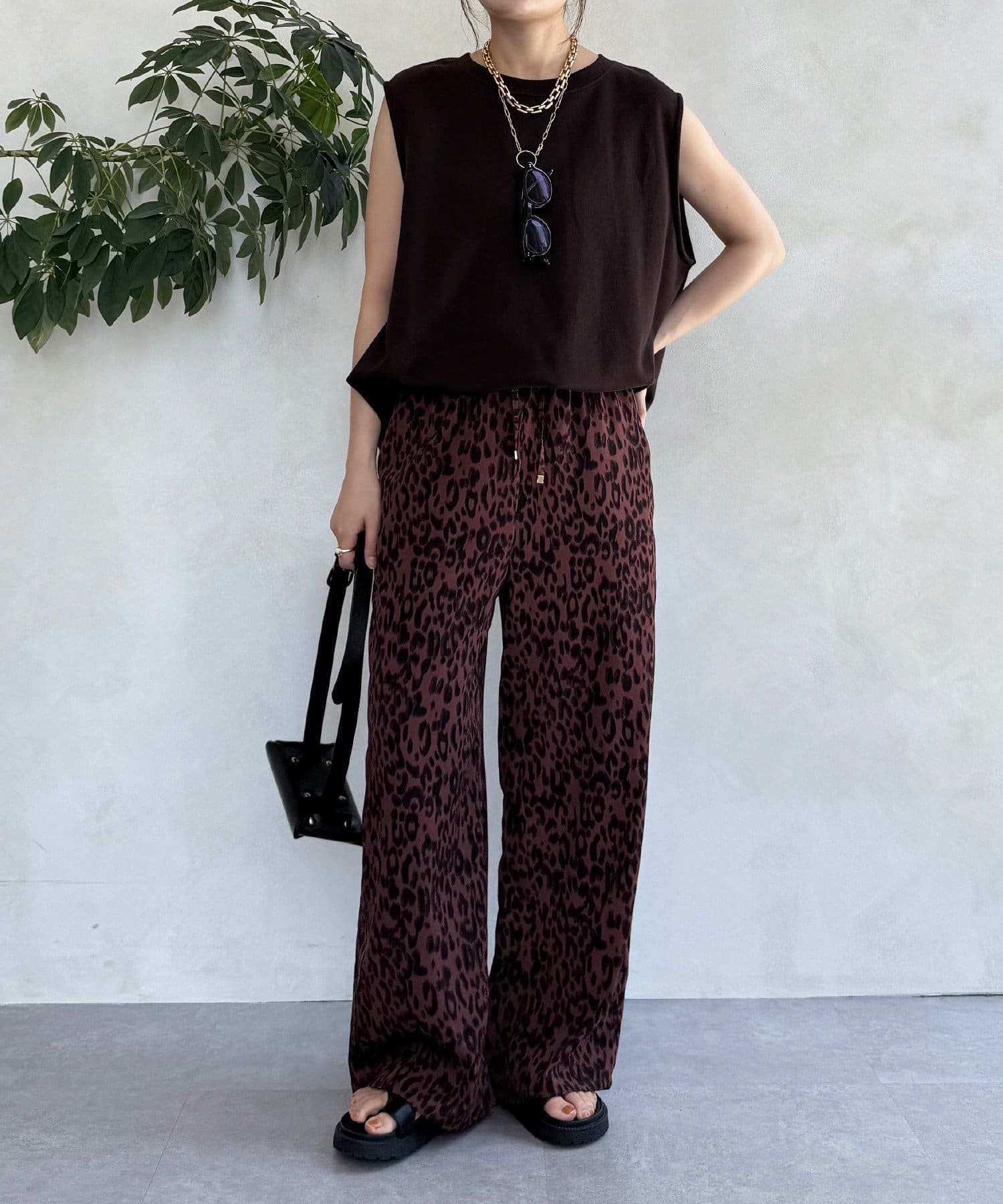 一見派手に見えがちなレオパード柄も、落ち着いたカラーリングで上品な印象に。