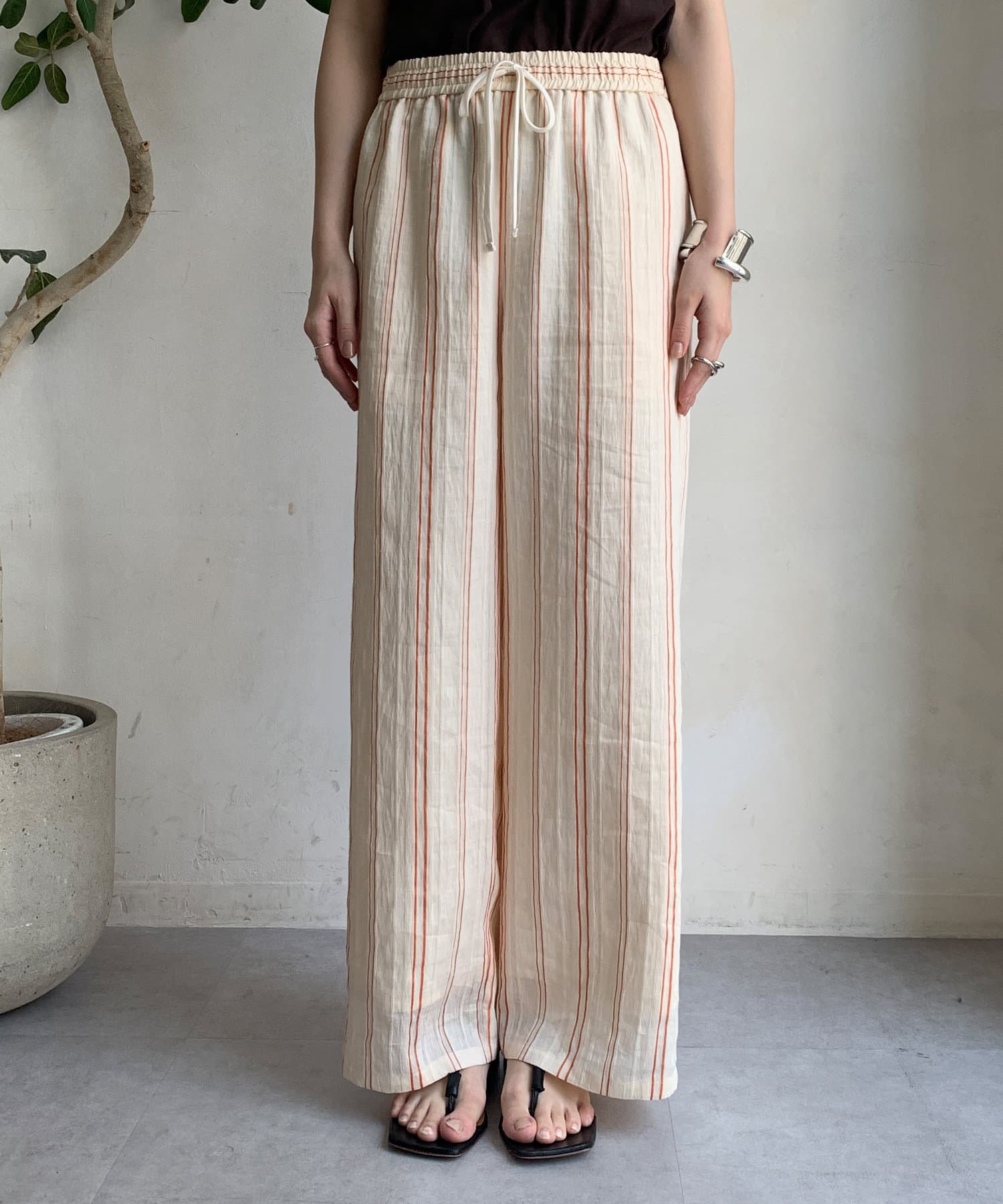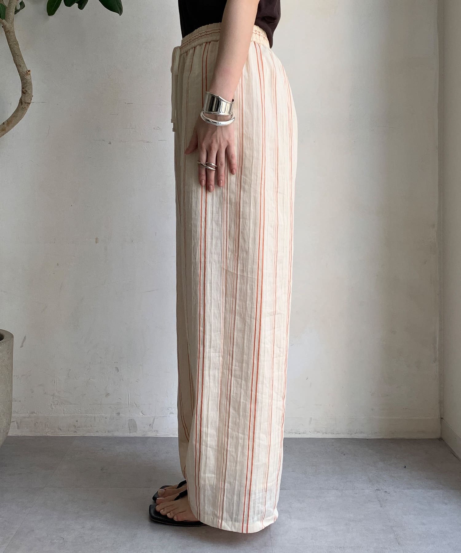 リネンレーヨンストライプパンツ