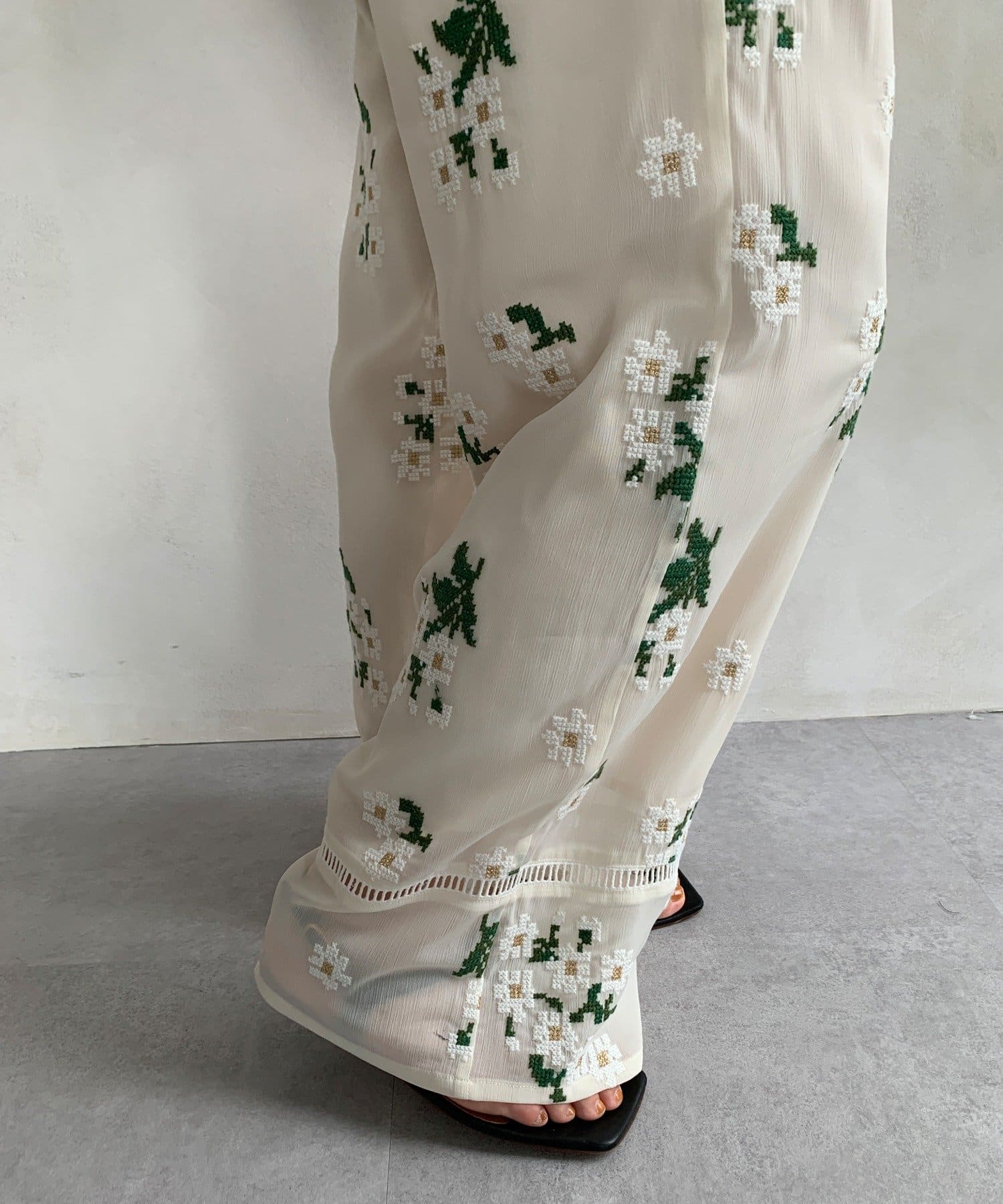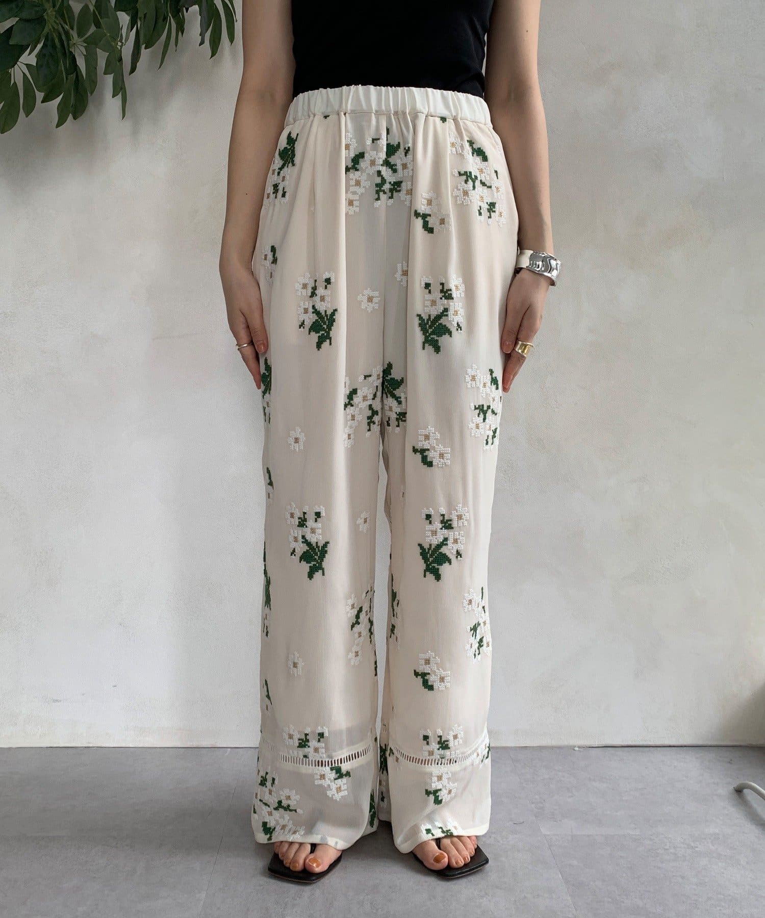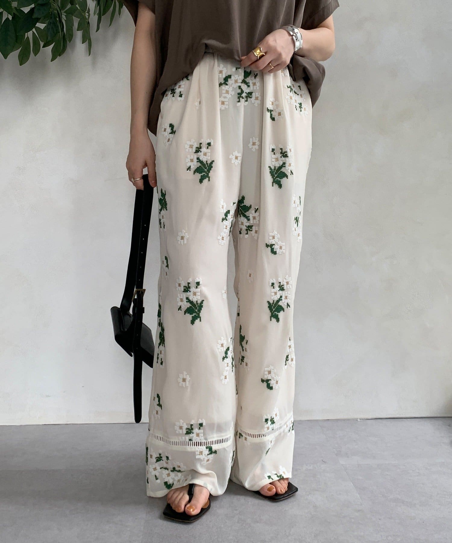 • DOUDOU(ドゥドゥ) 【WEB限定】フルレット刺繍パンツ