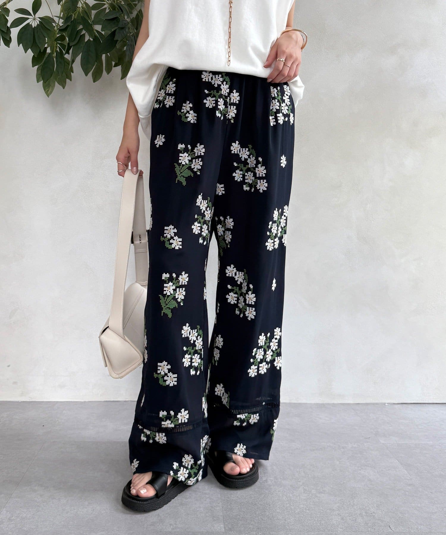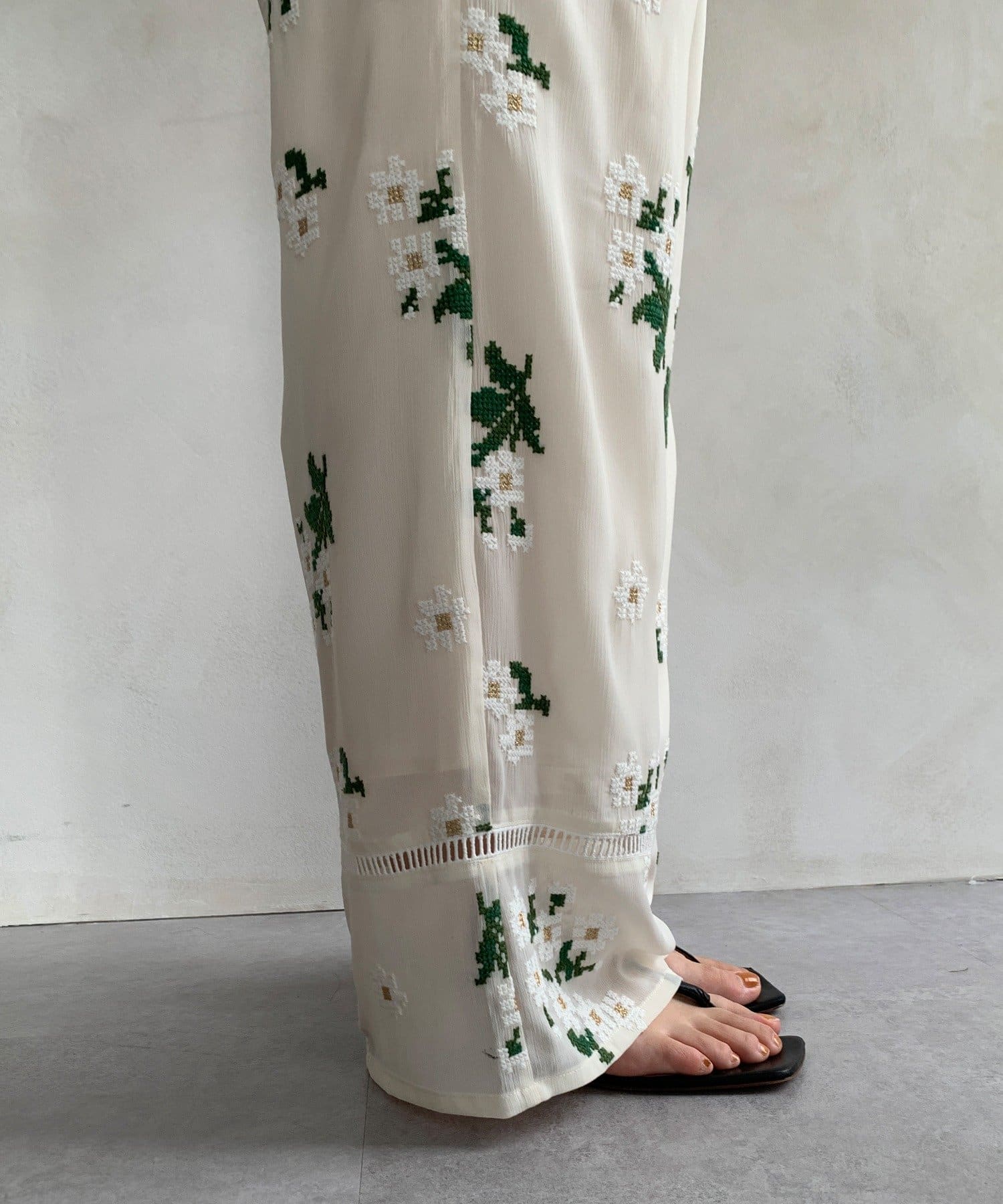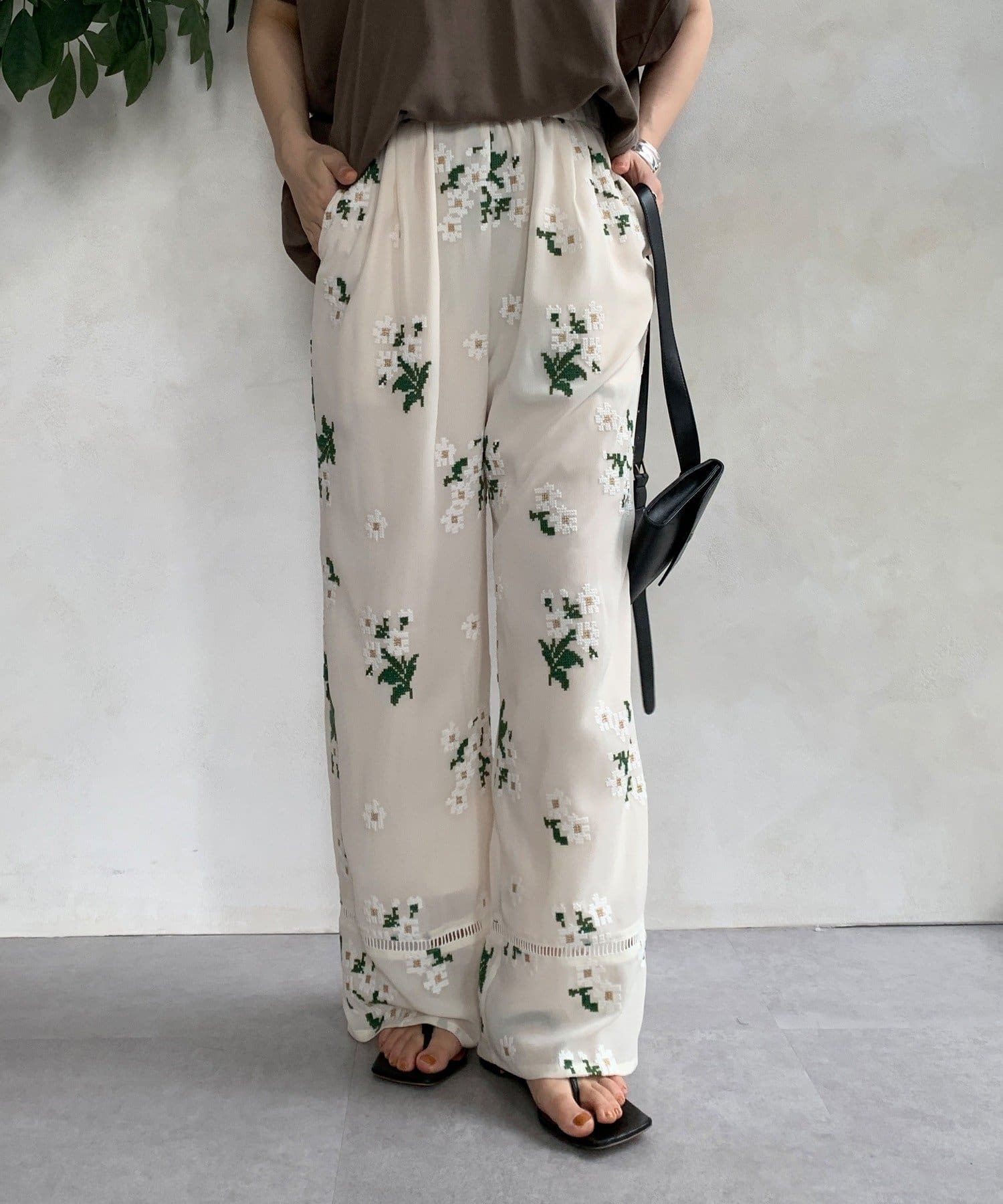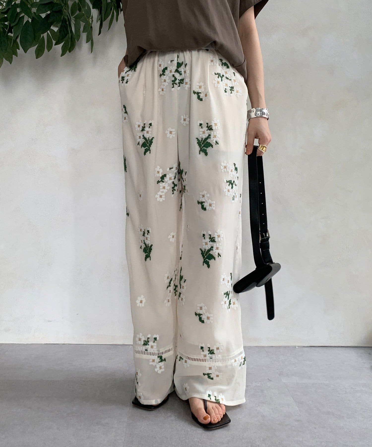 DOUDOU(ドゥドゥ) 【WEB限定】フルレット刺繍パンツ