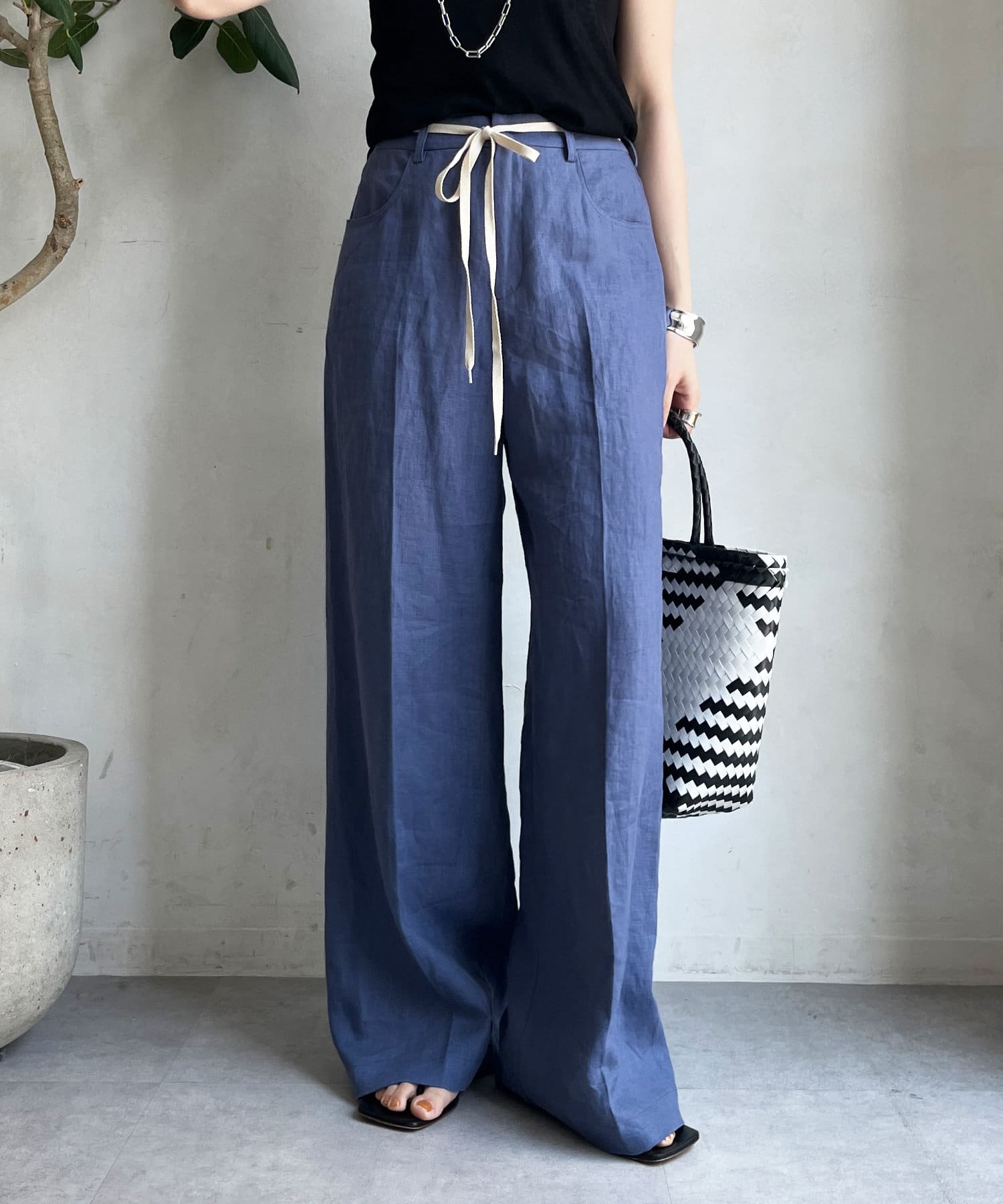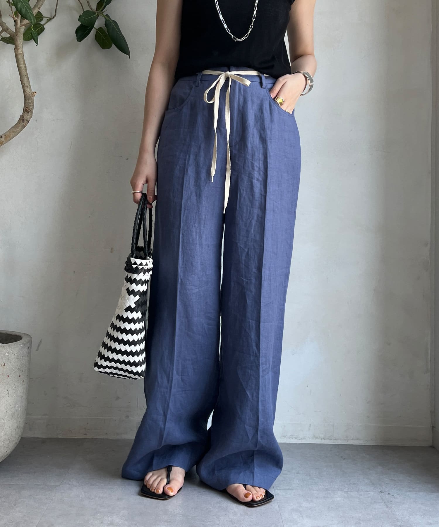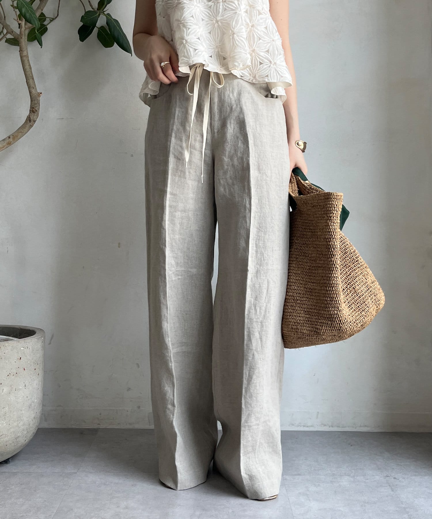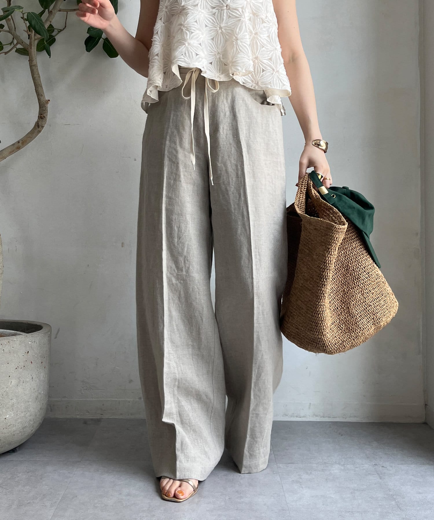 軽やかでシーズンムード漂うリネン素材を使用したパンツ。