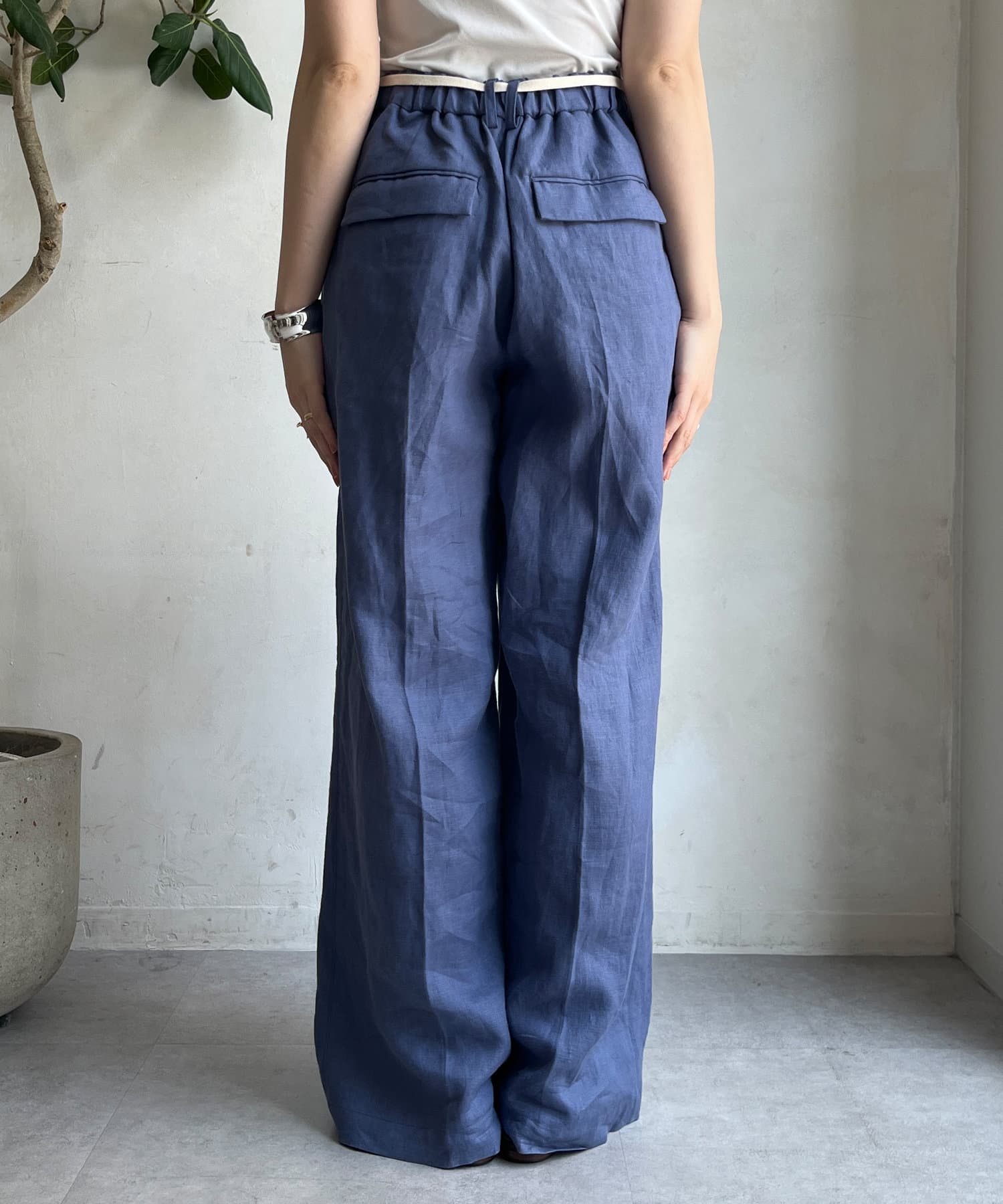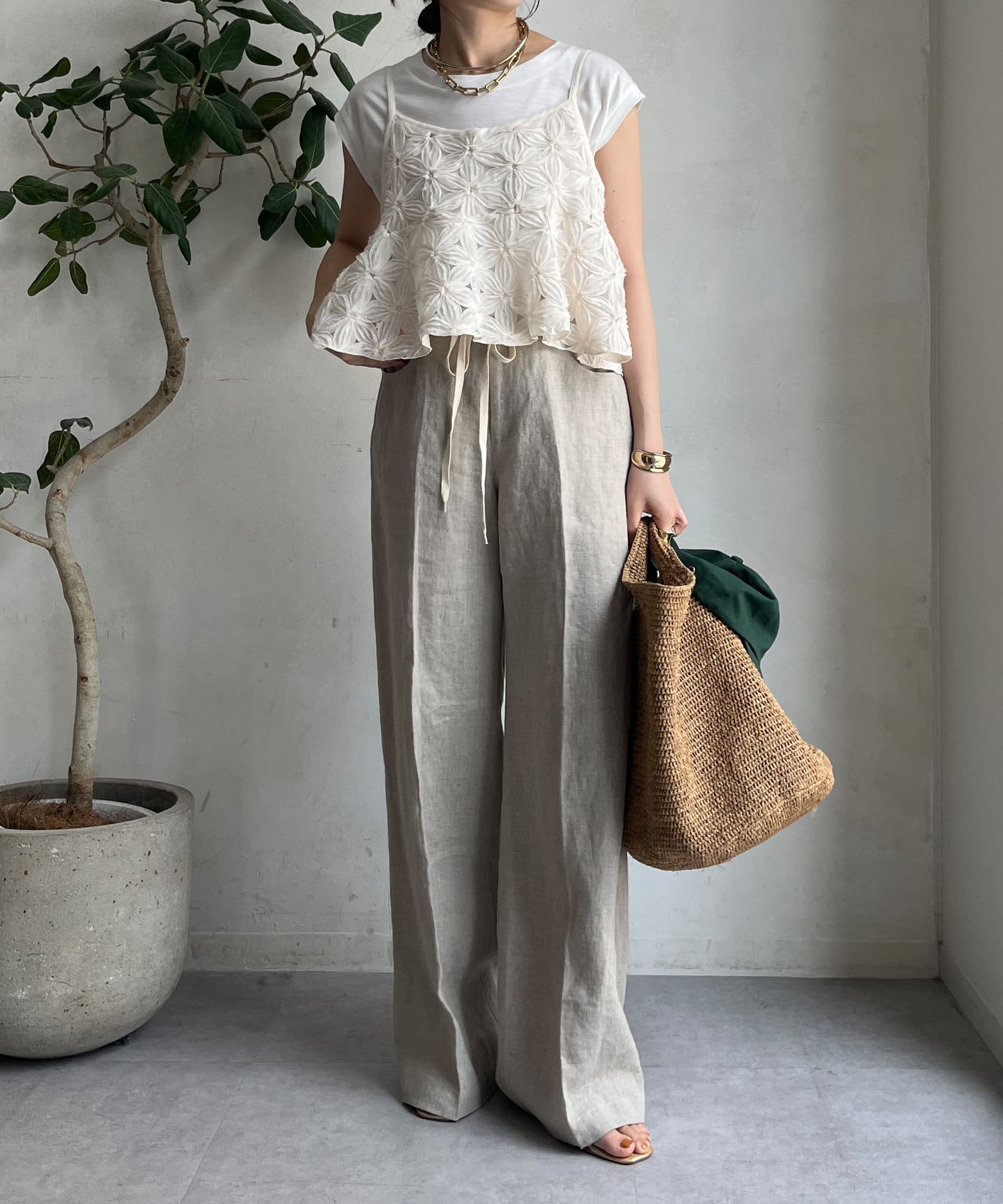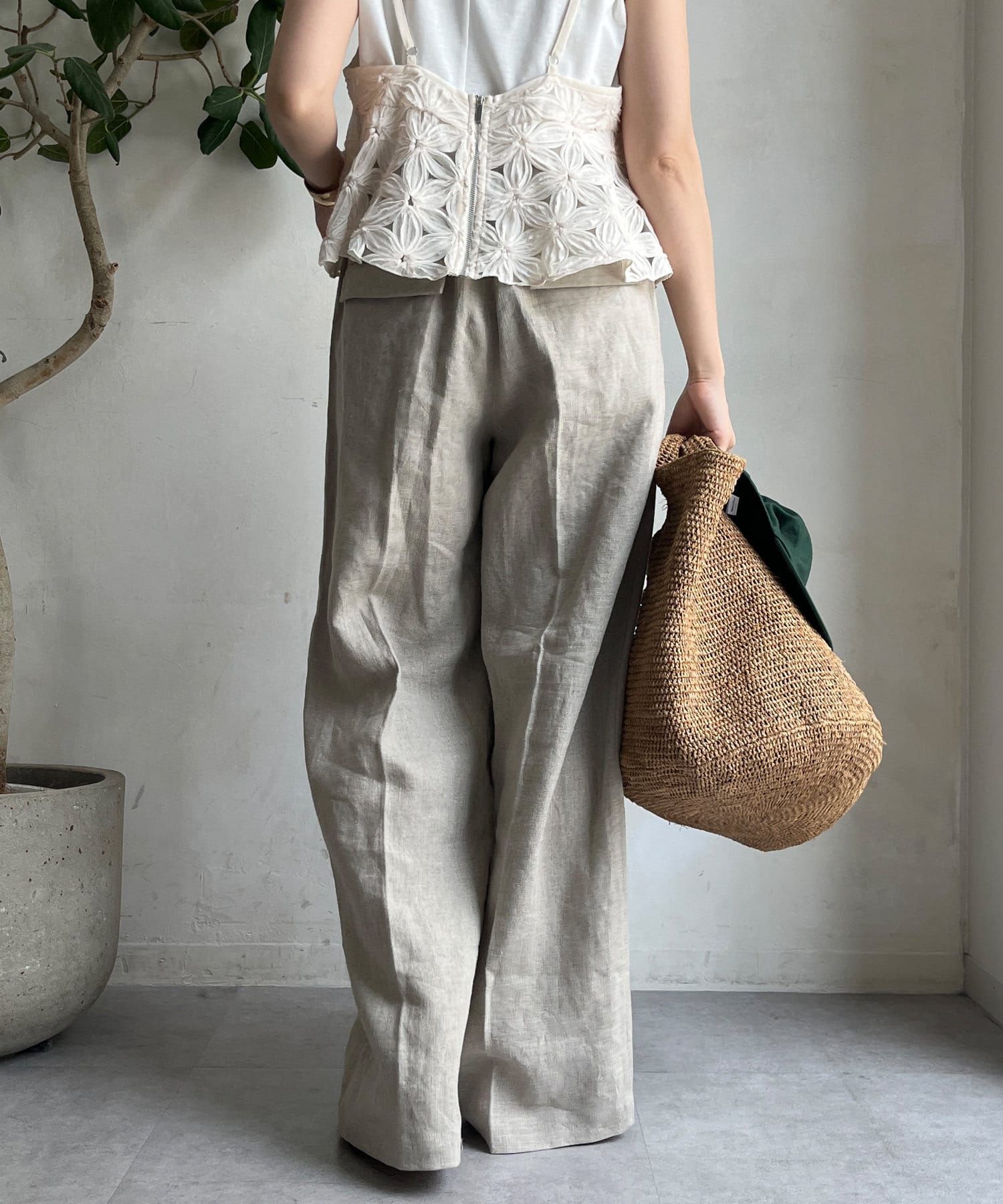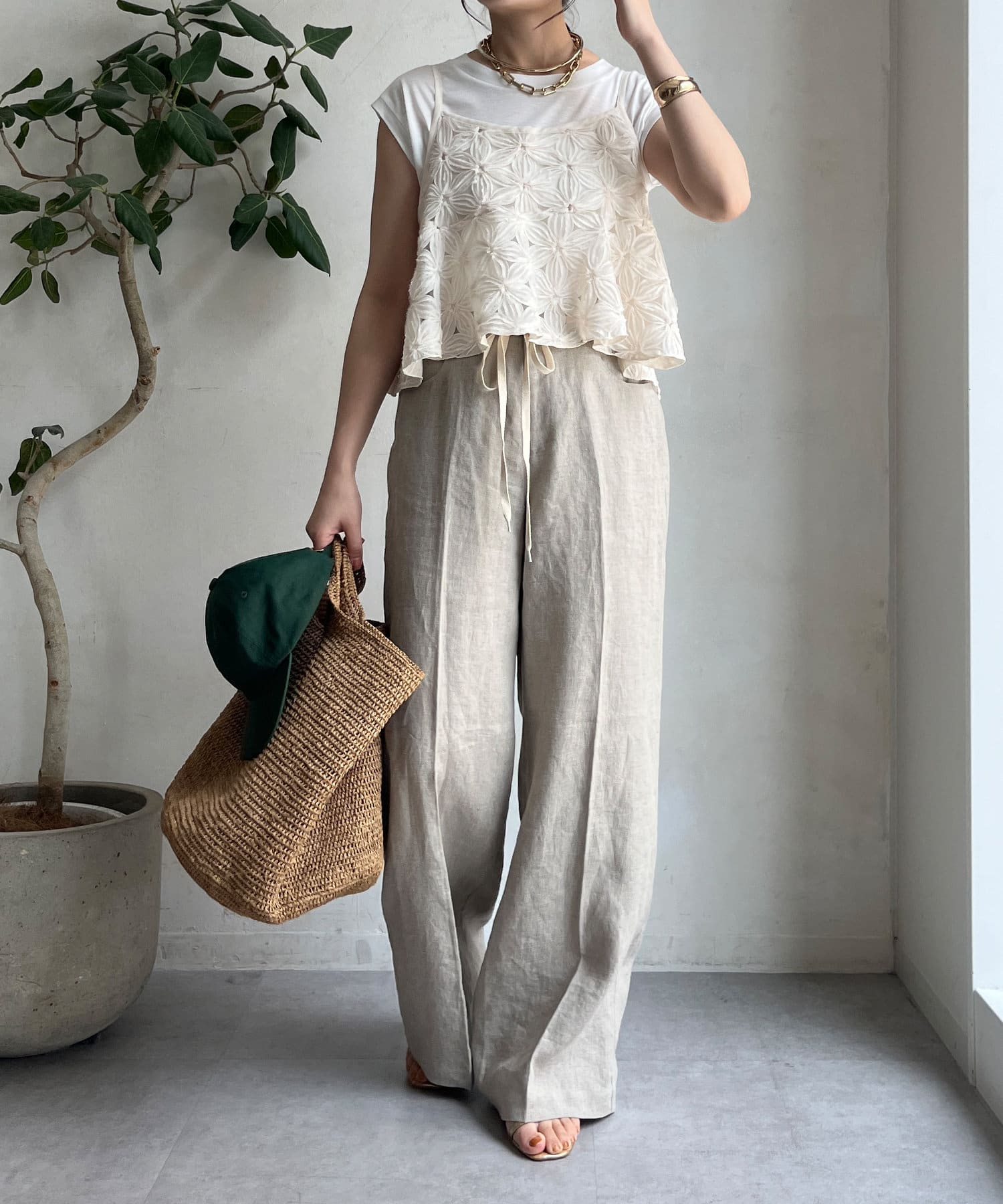 軽やかでシーズンムード漂うリネン素材を使用したパンツ。