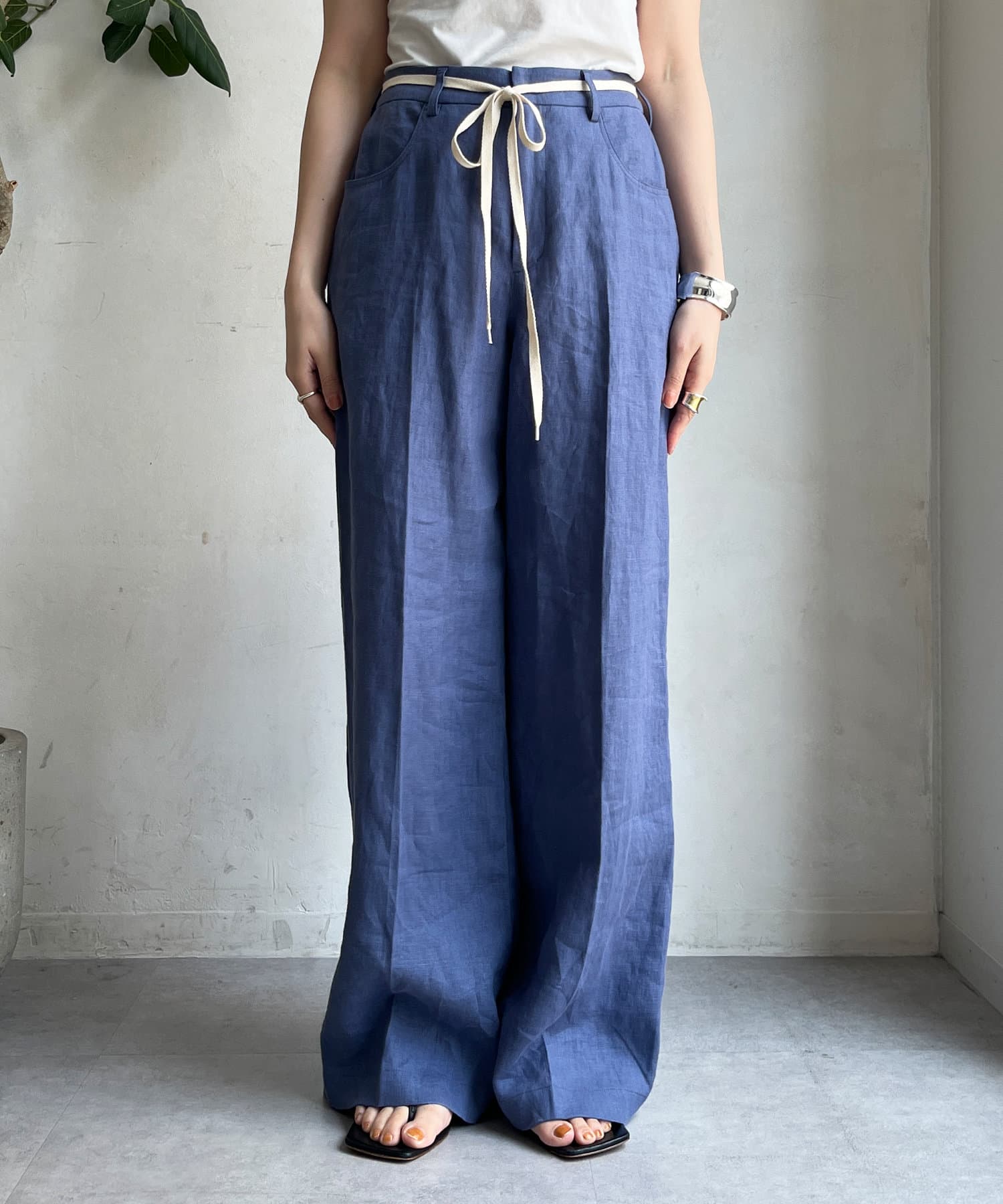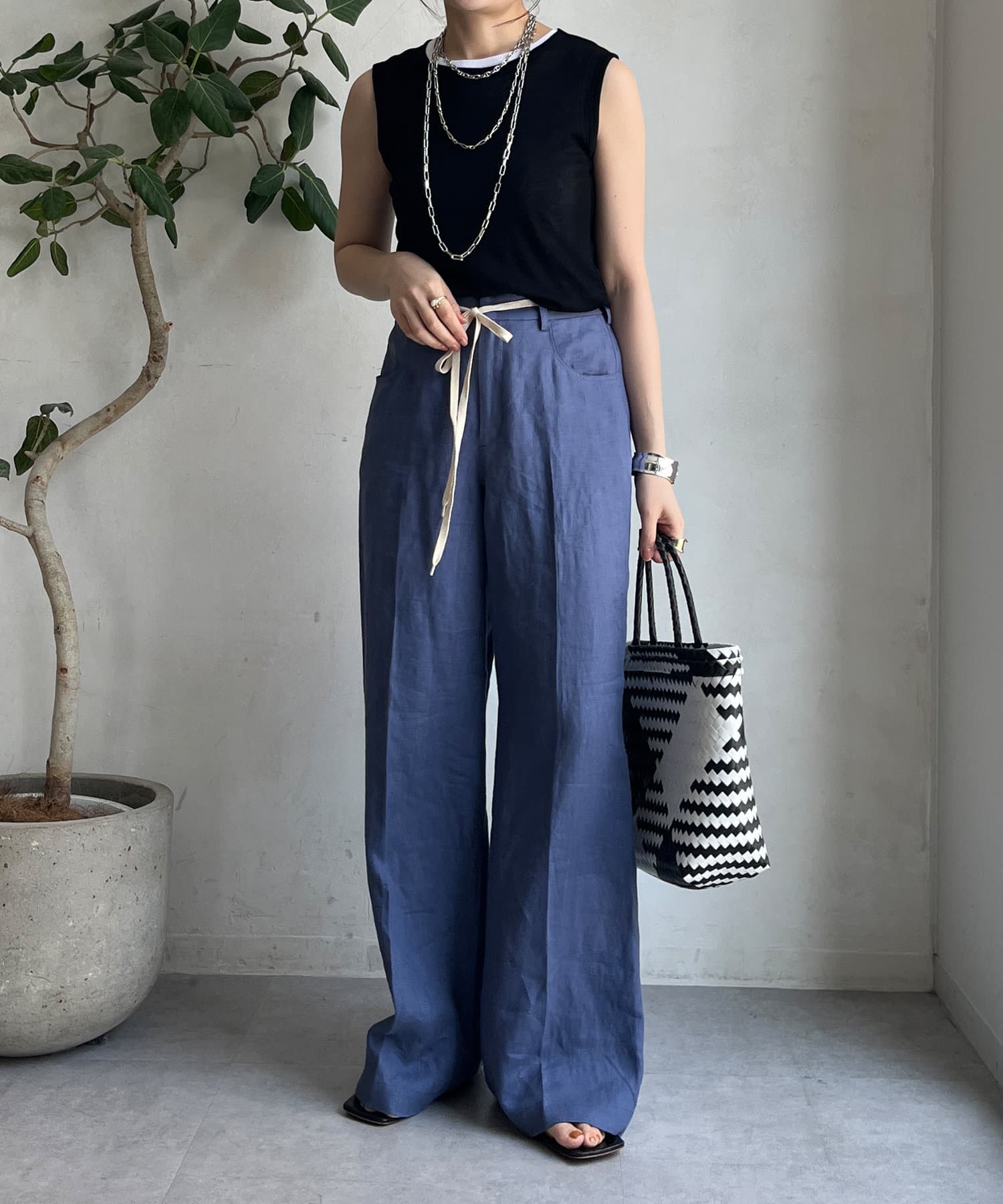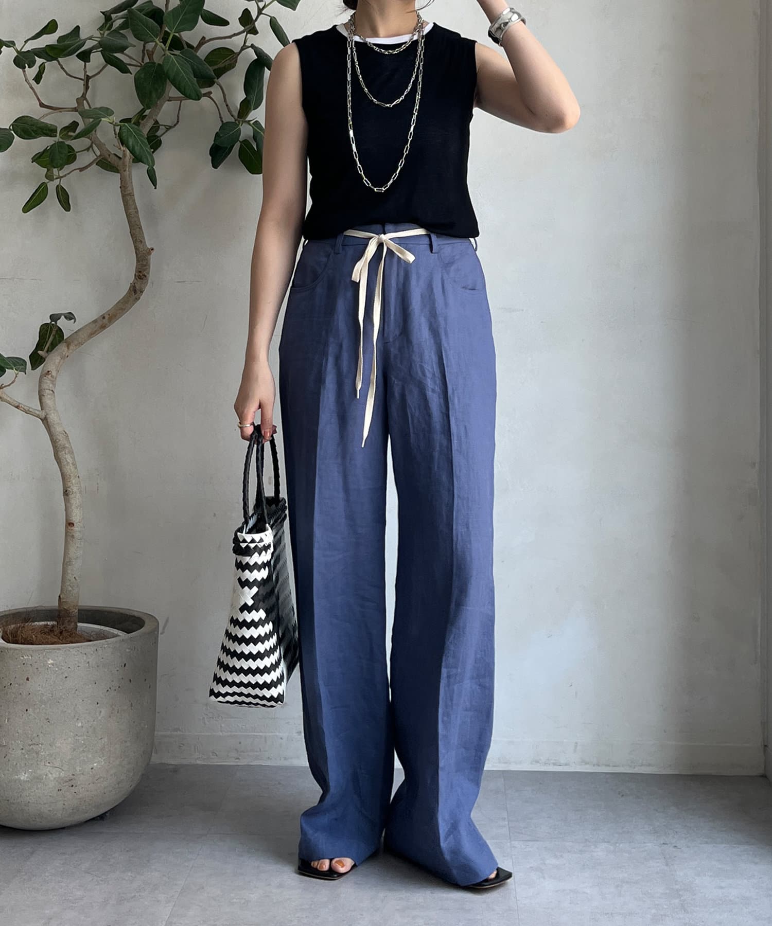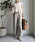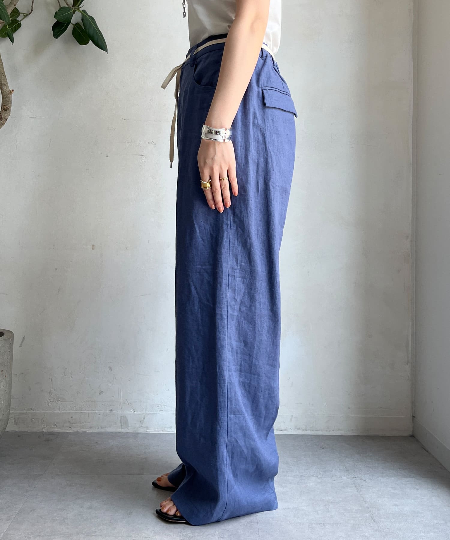 軽やかでシーズンムード漂うリネン素材を使用したパンツ。