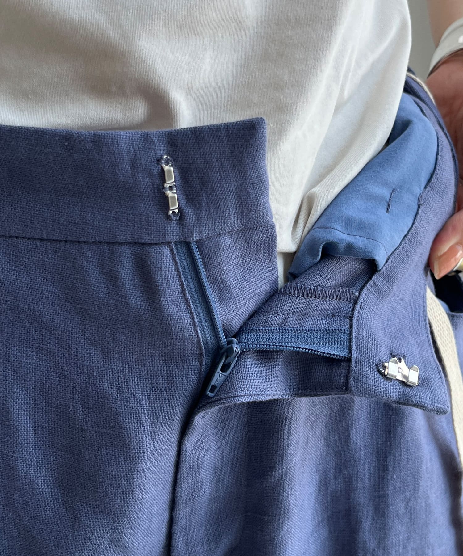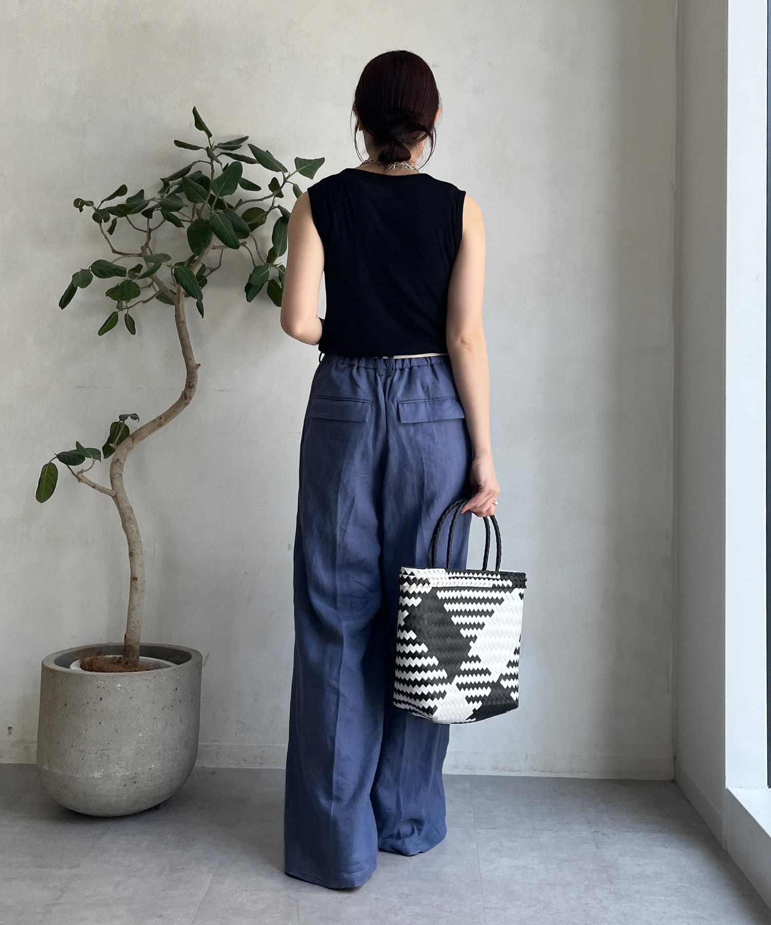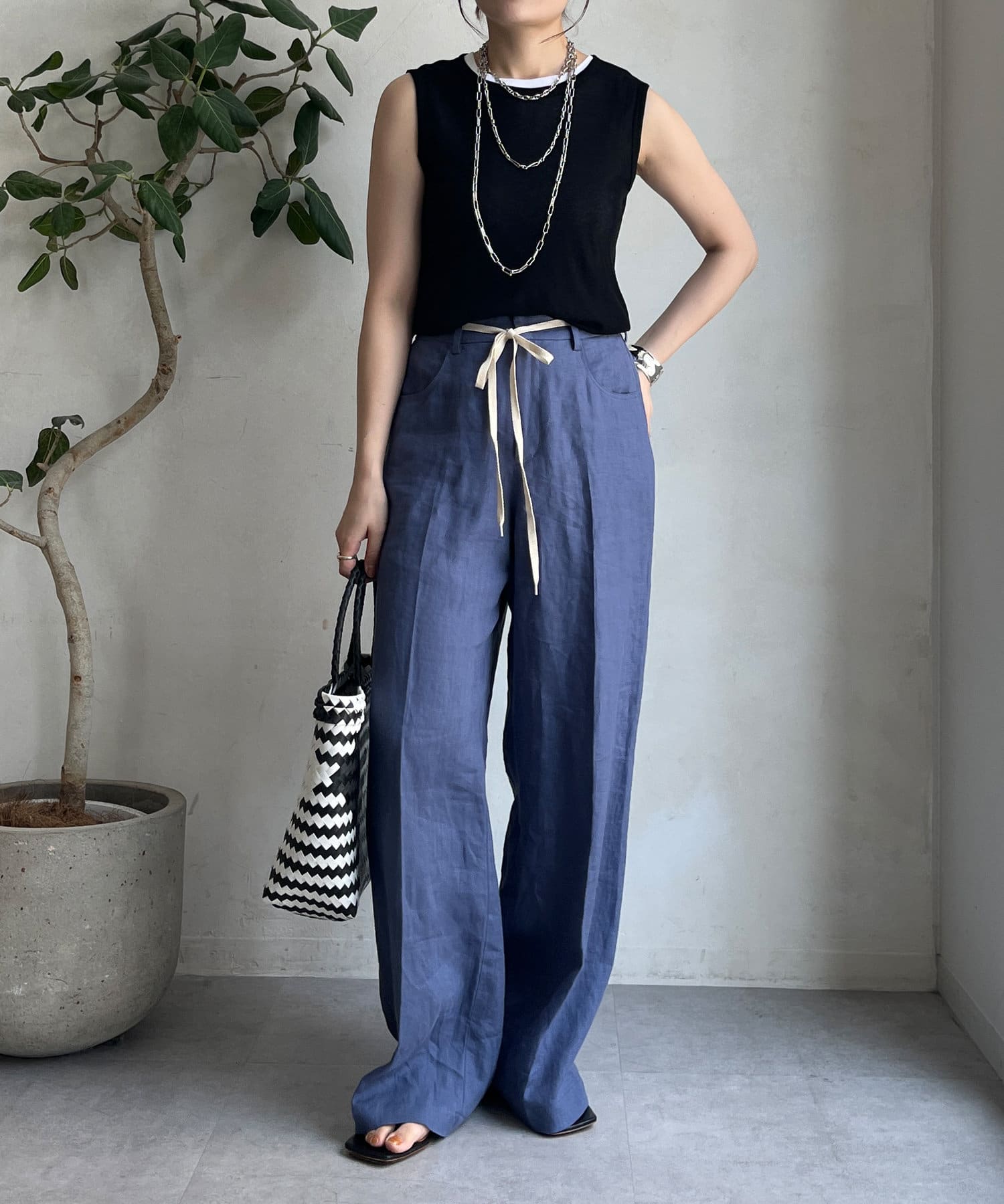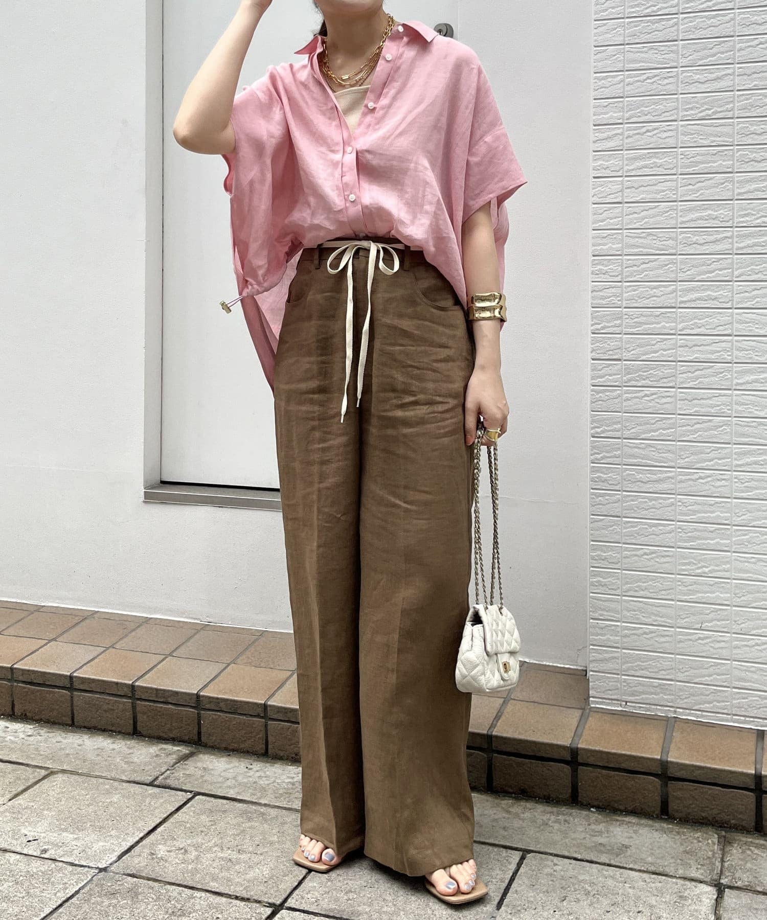 軽やかでシーズンムード漂うリネン素材を使用したパンツ。