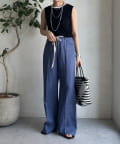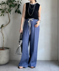 ウエスト部分はトレンドライクな紐ベルトをプラスし、今年らしい印象に。