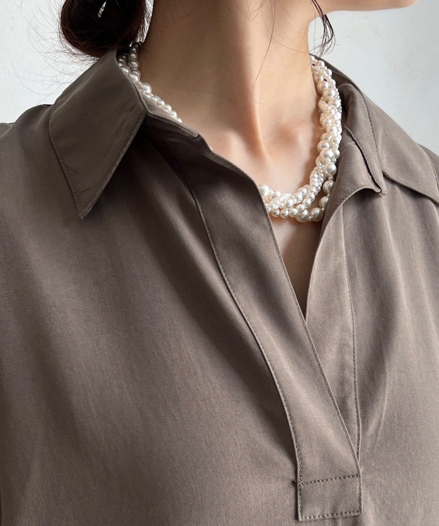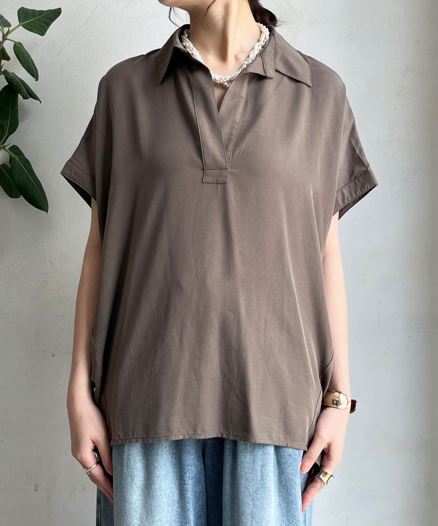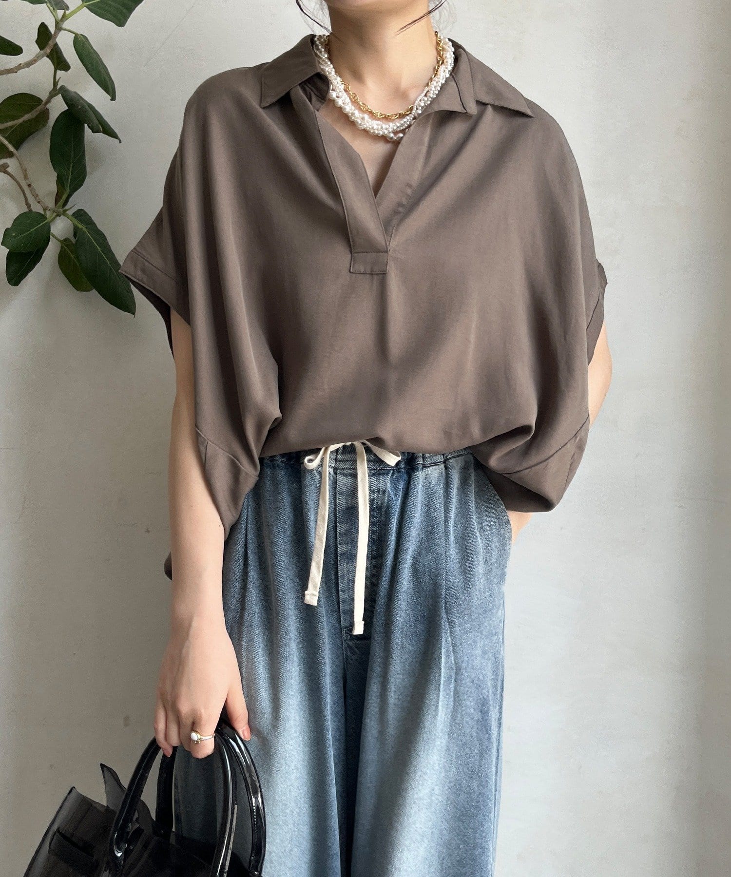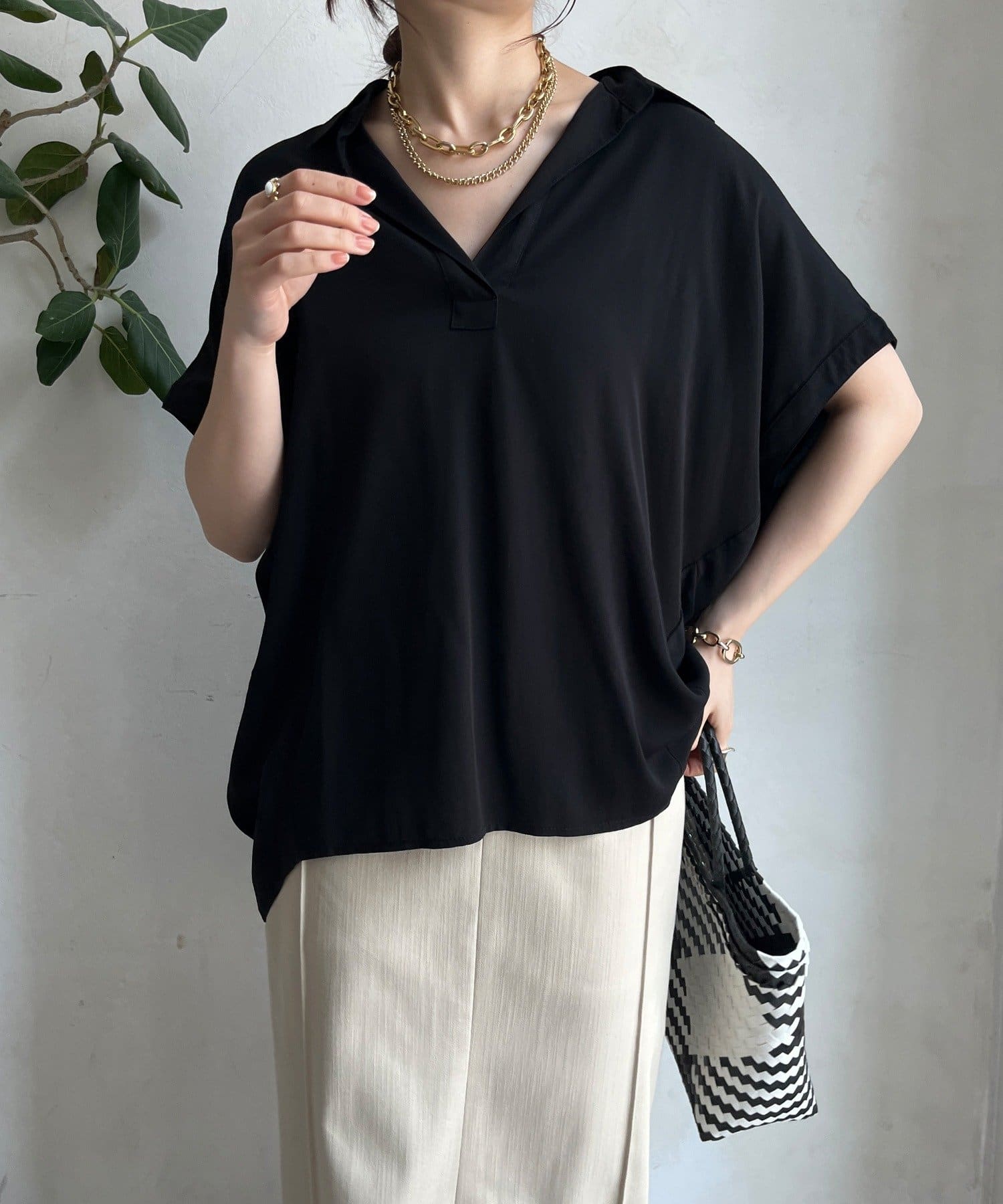 首元に抜け感のあるデザインがポイントのスキッパーブラウス。