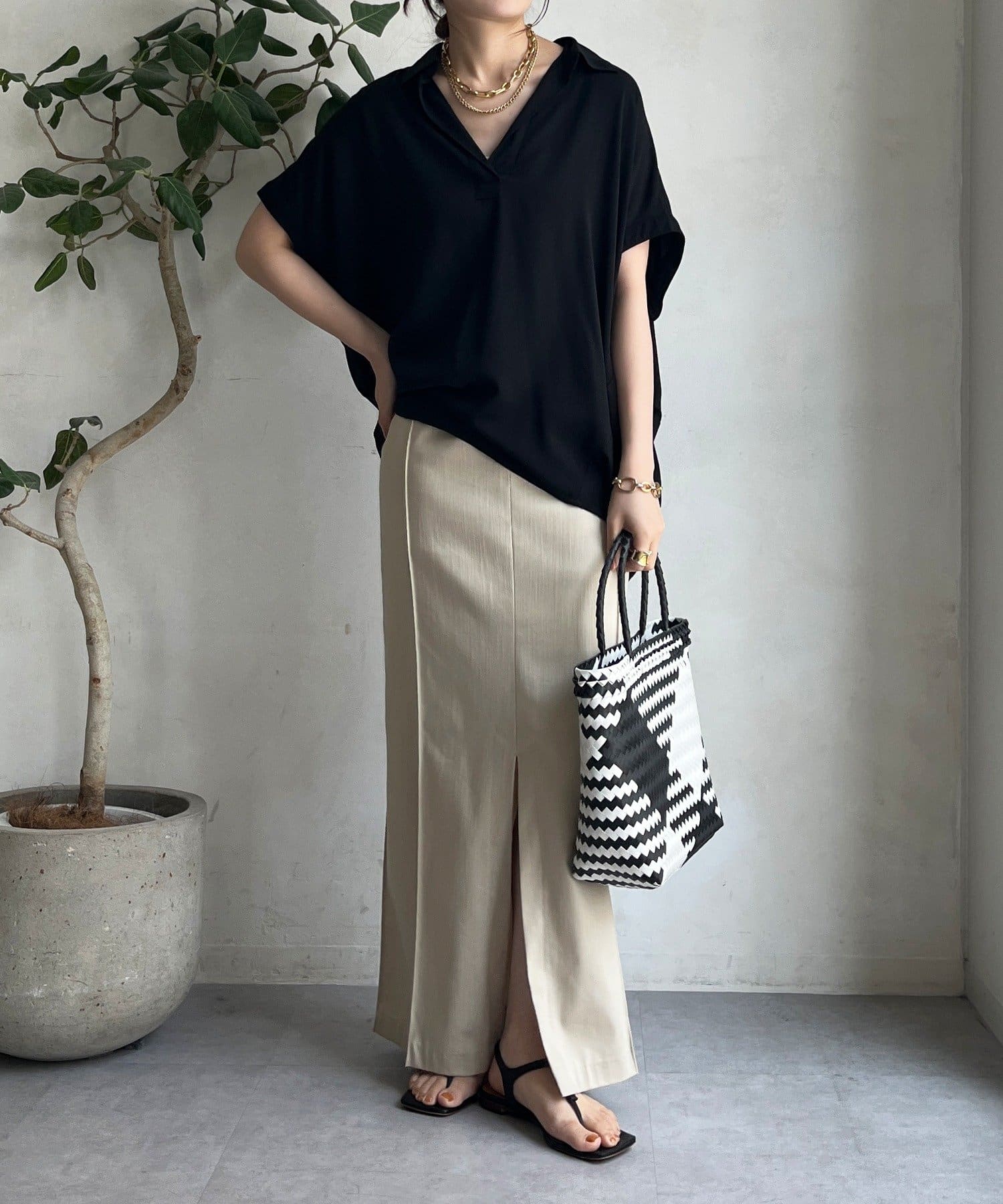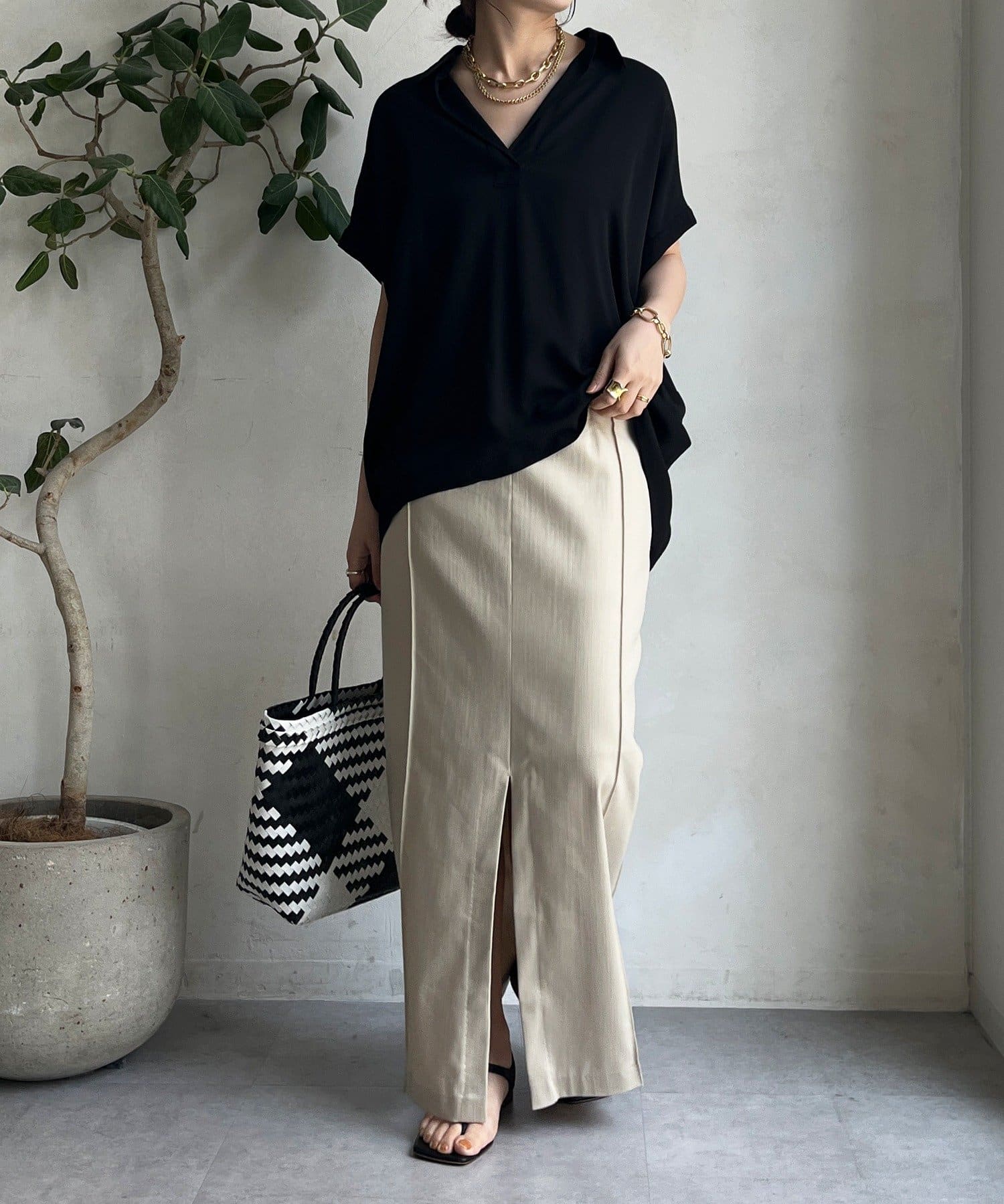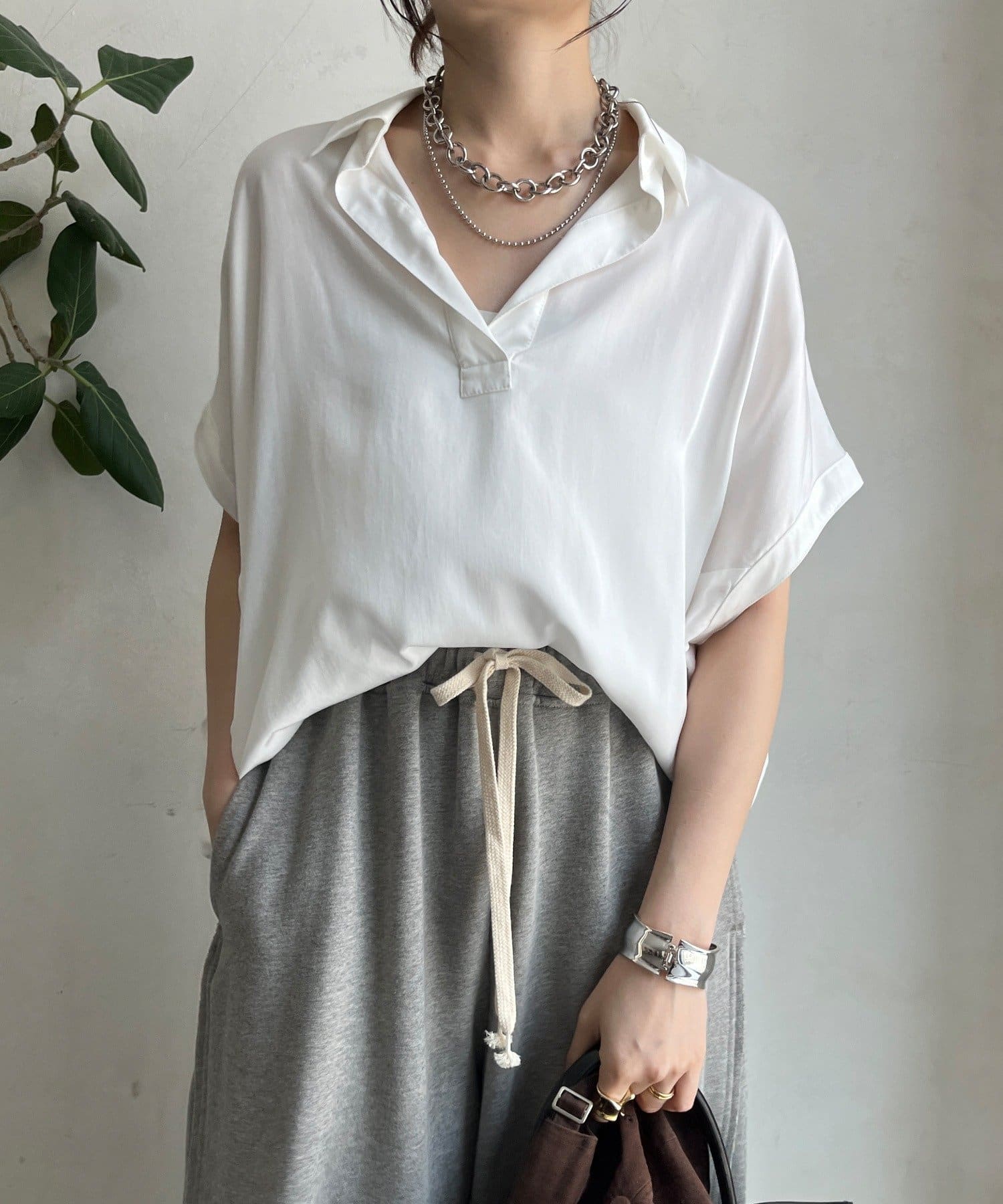 首元に抜け感のあるデザインがポイントのスキッパーブラウス。