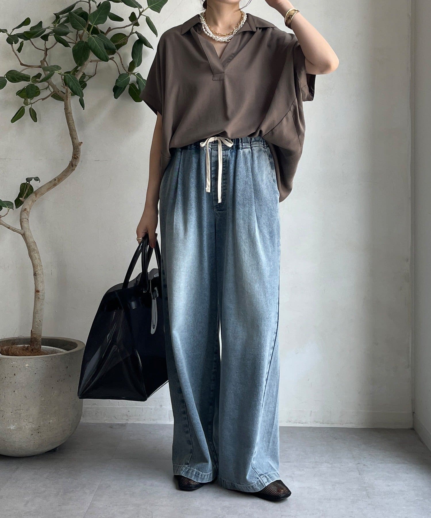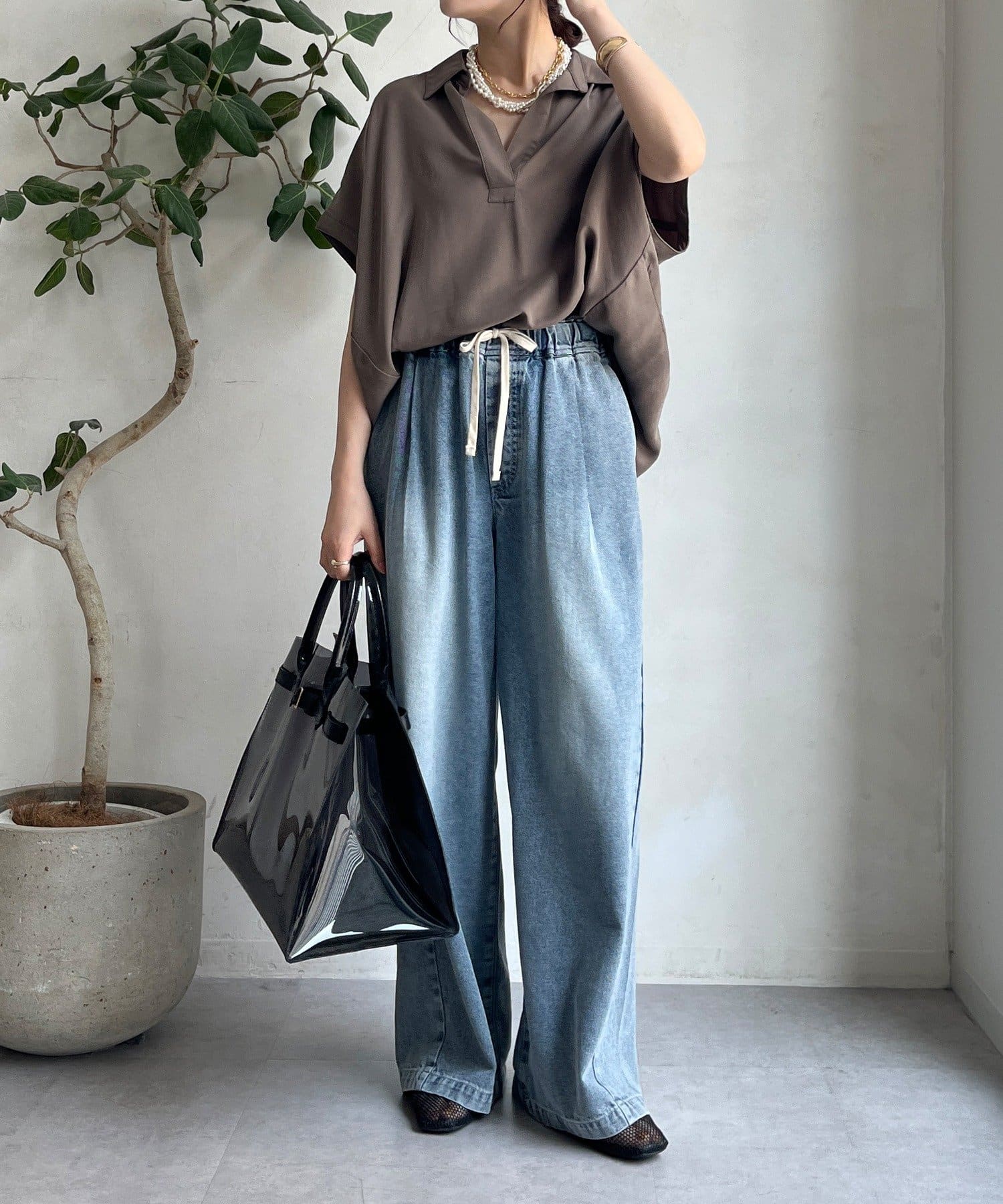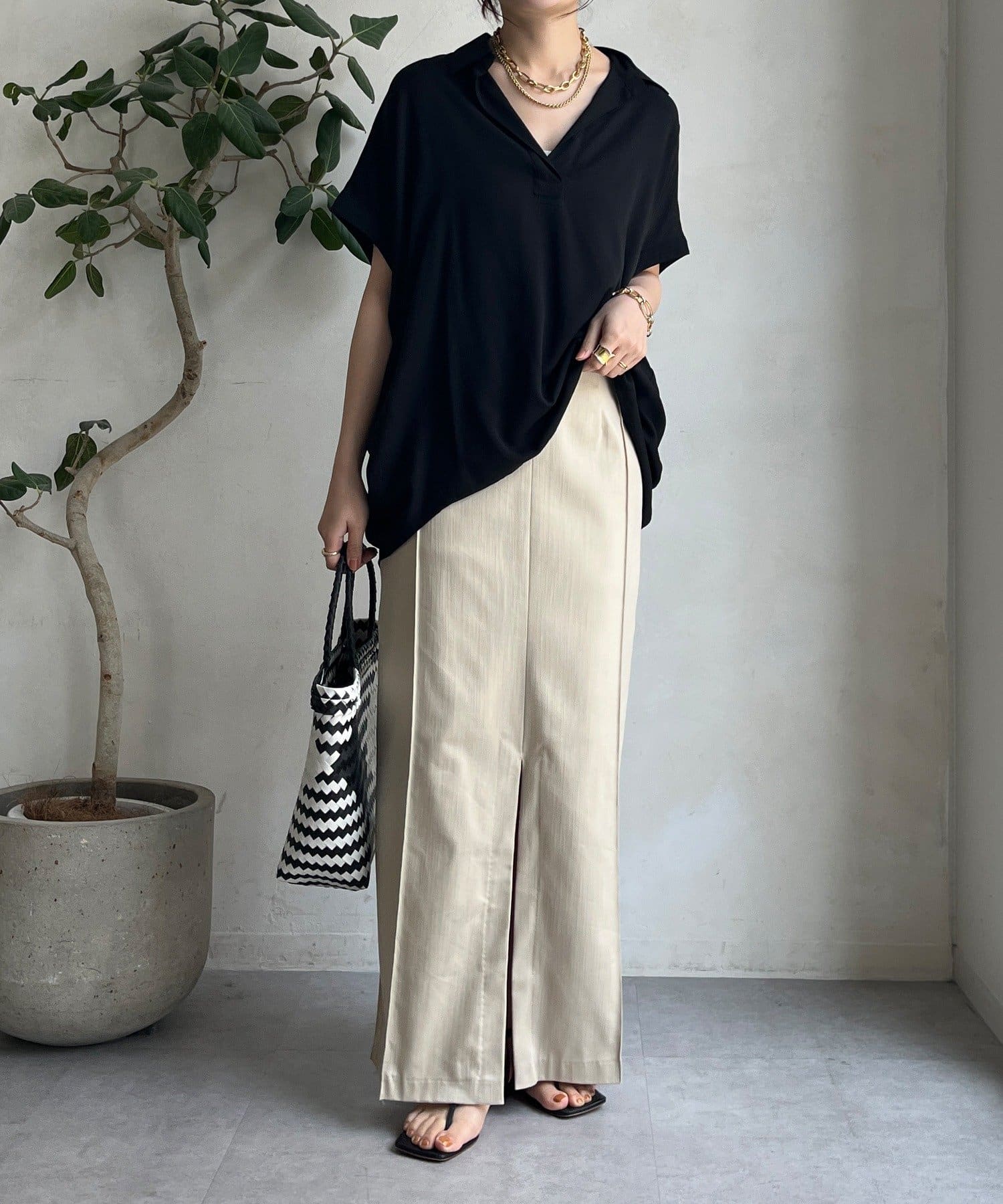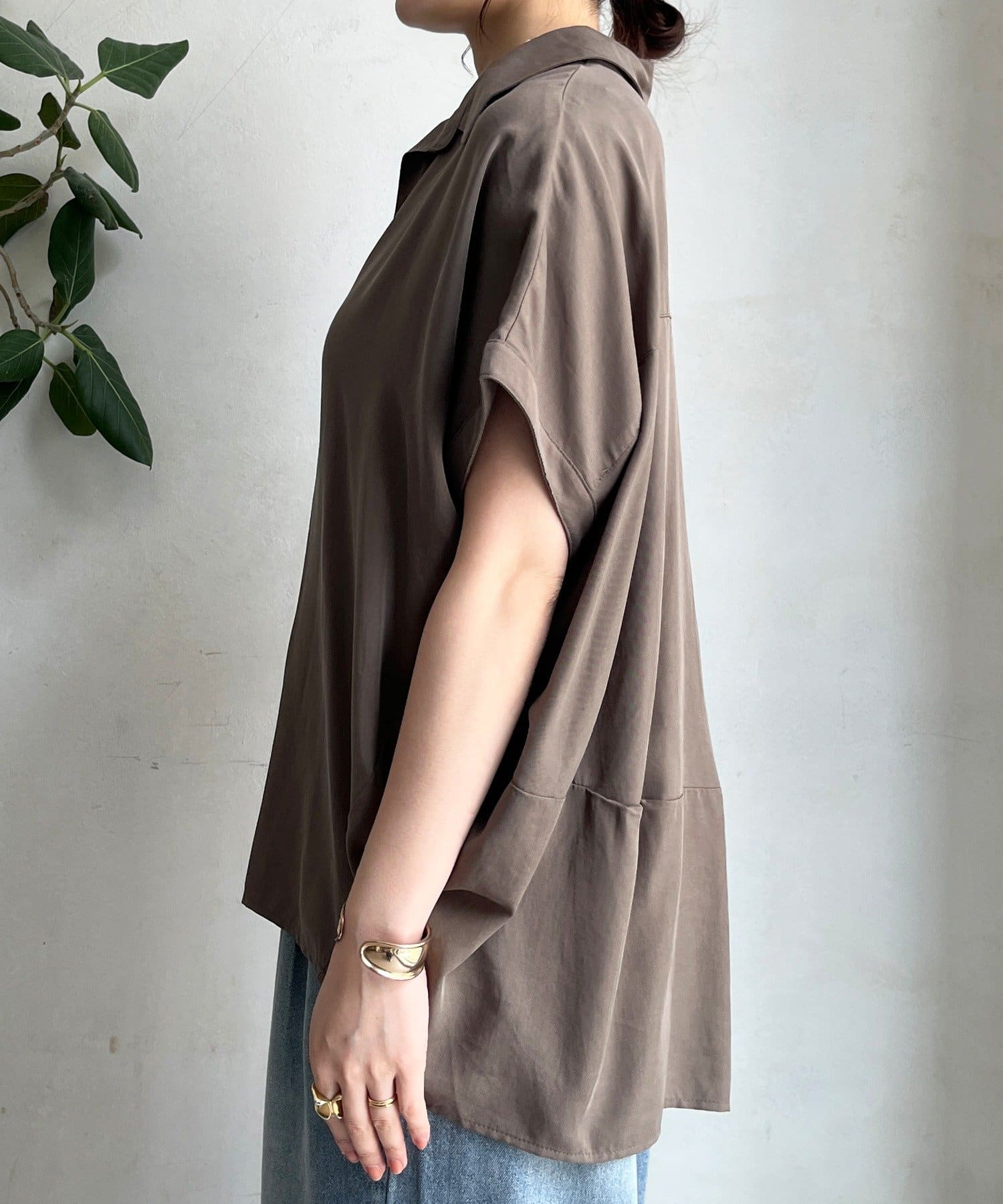 首元に抜け感のあるデザインがポイントのスキッパーブラウス。