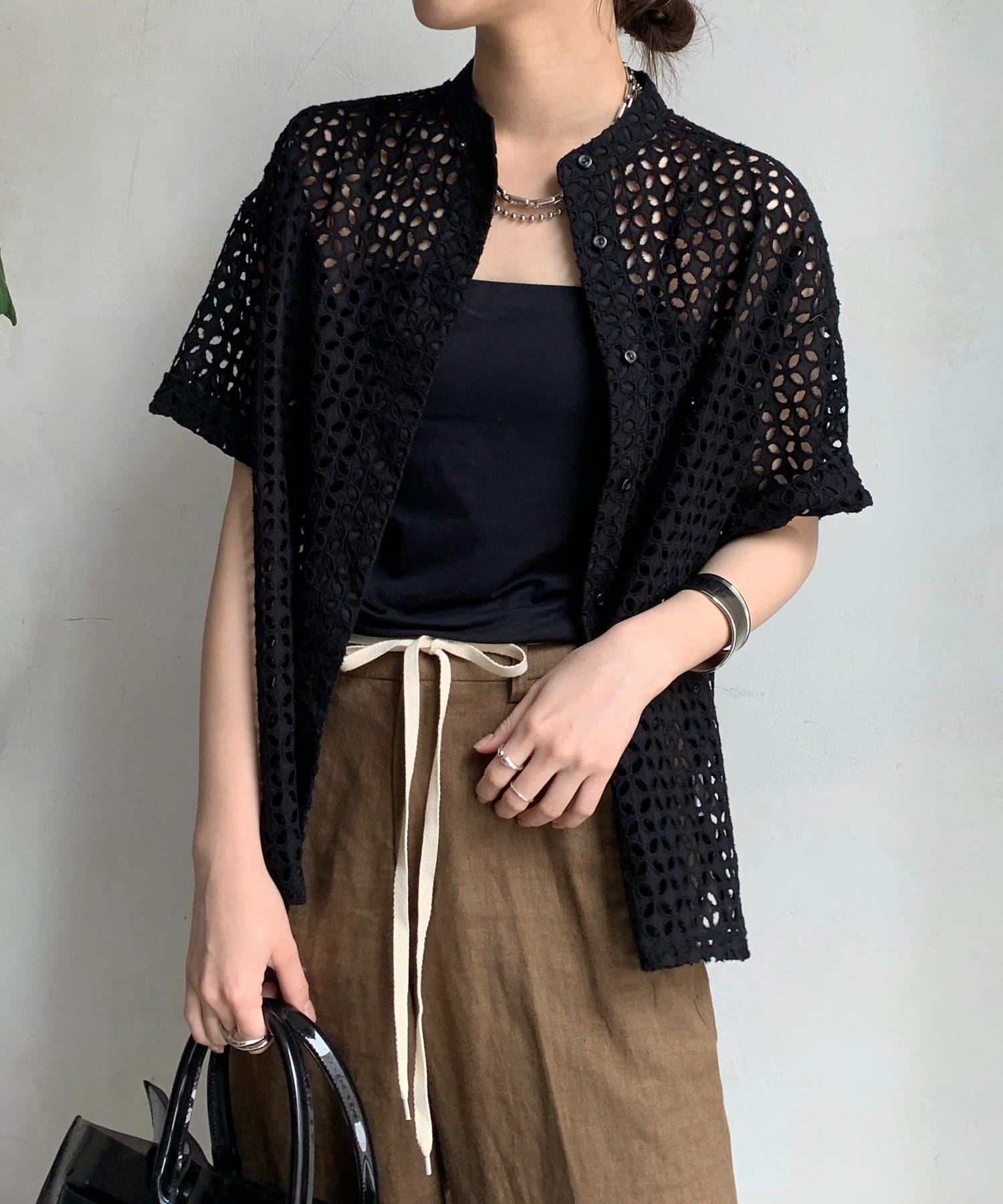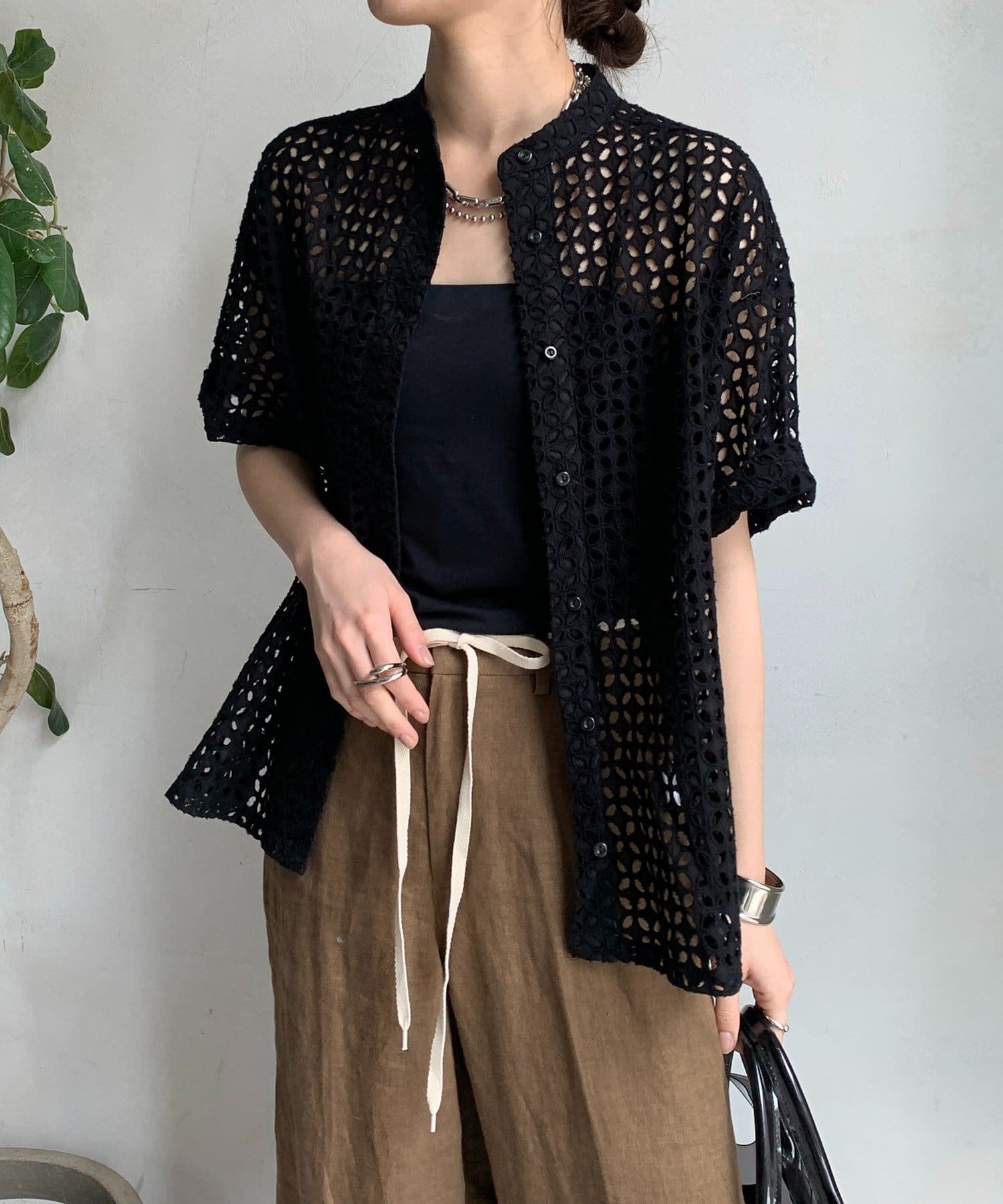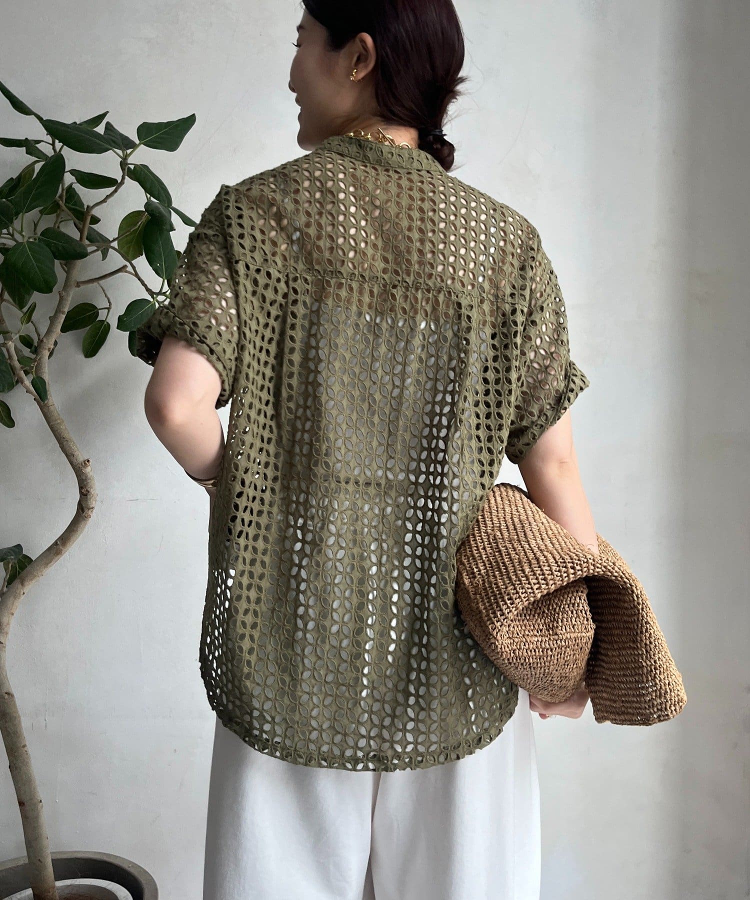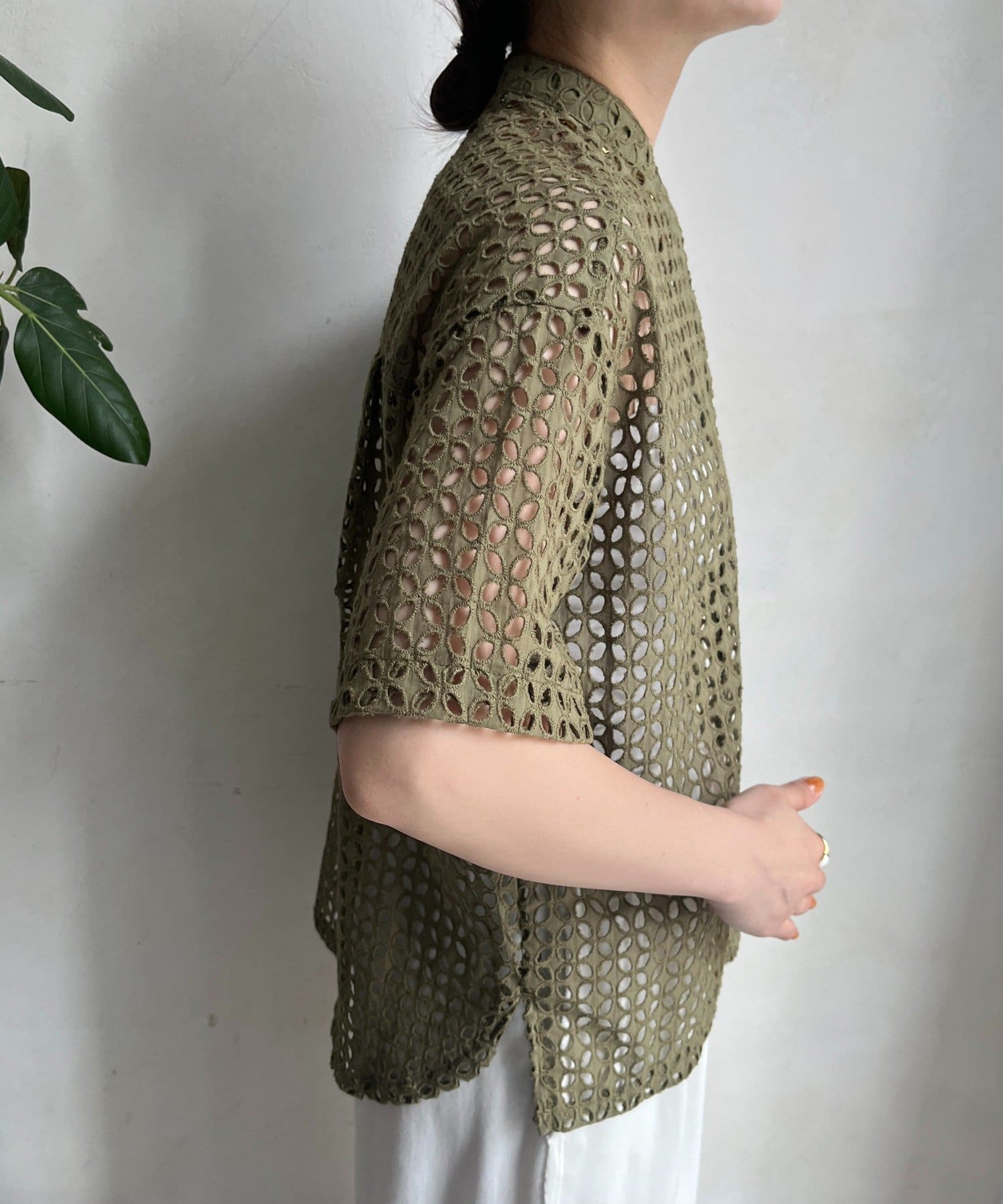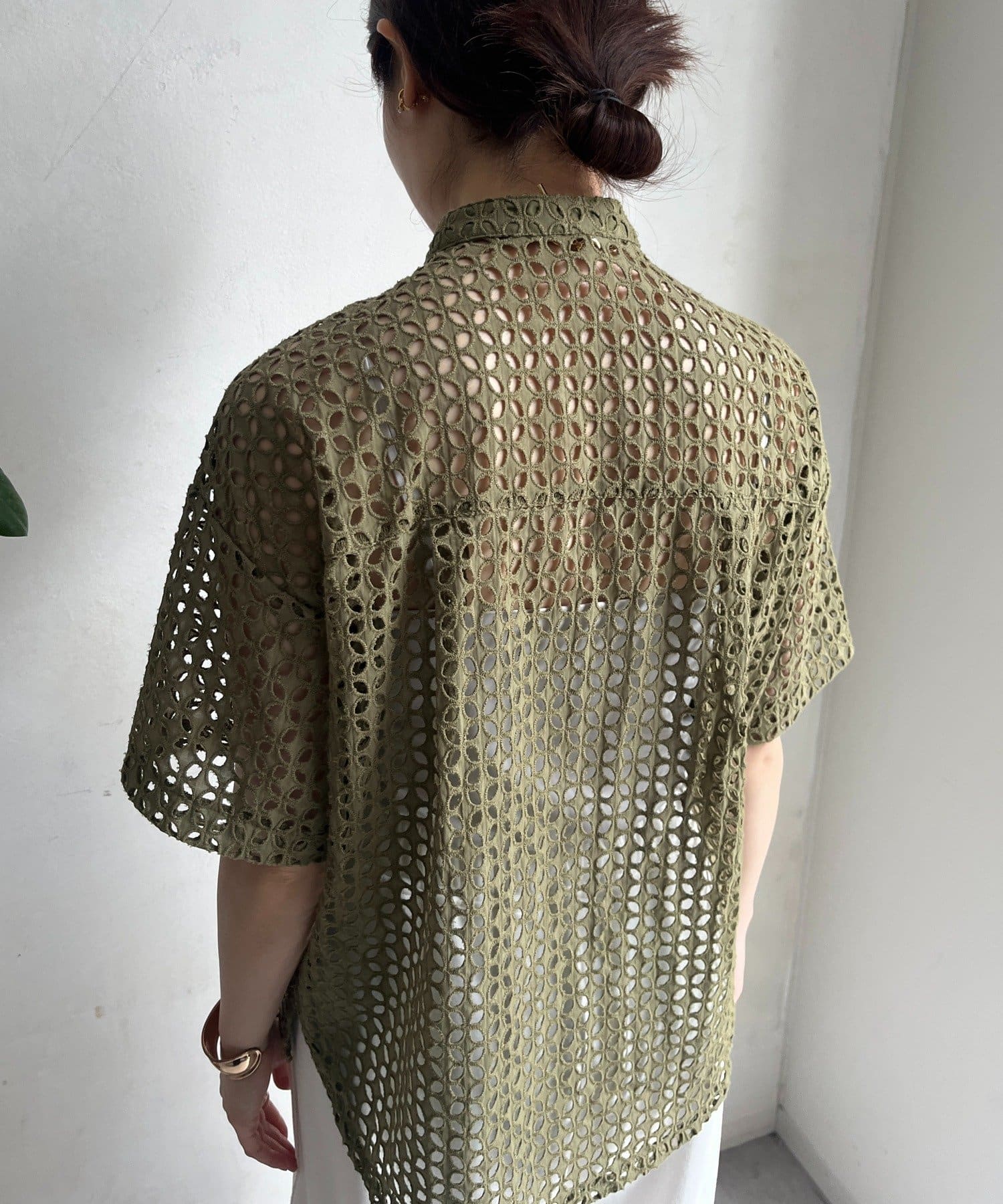 【WEB限定】カットワークレースハーフスリーブシャツ