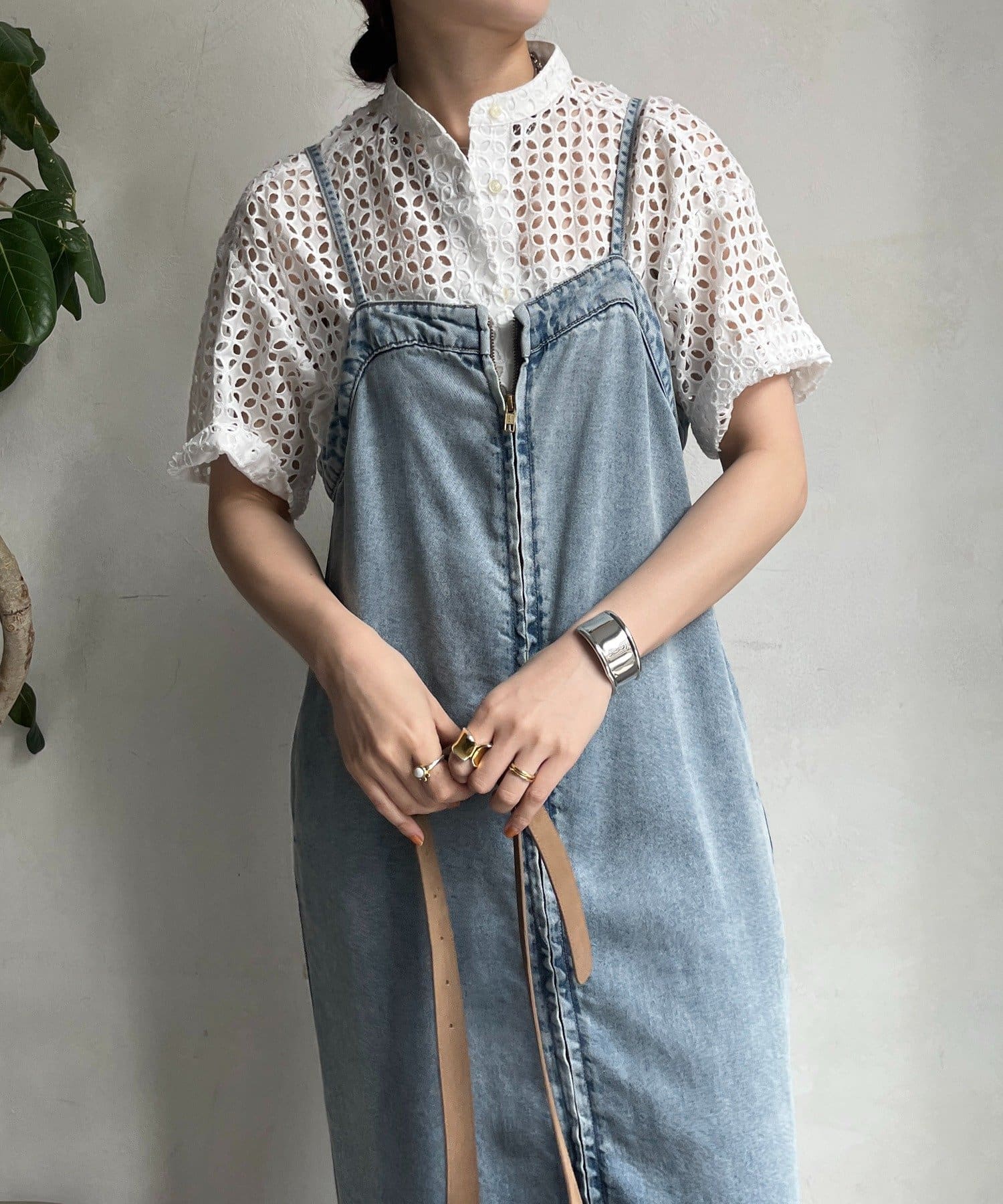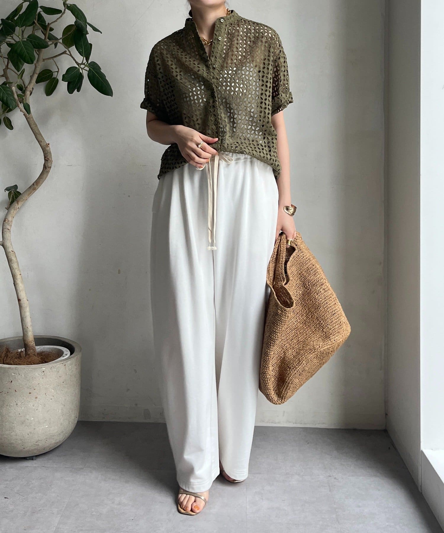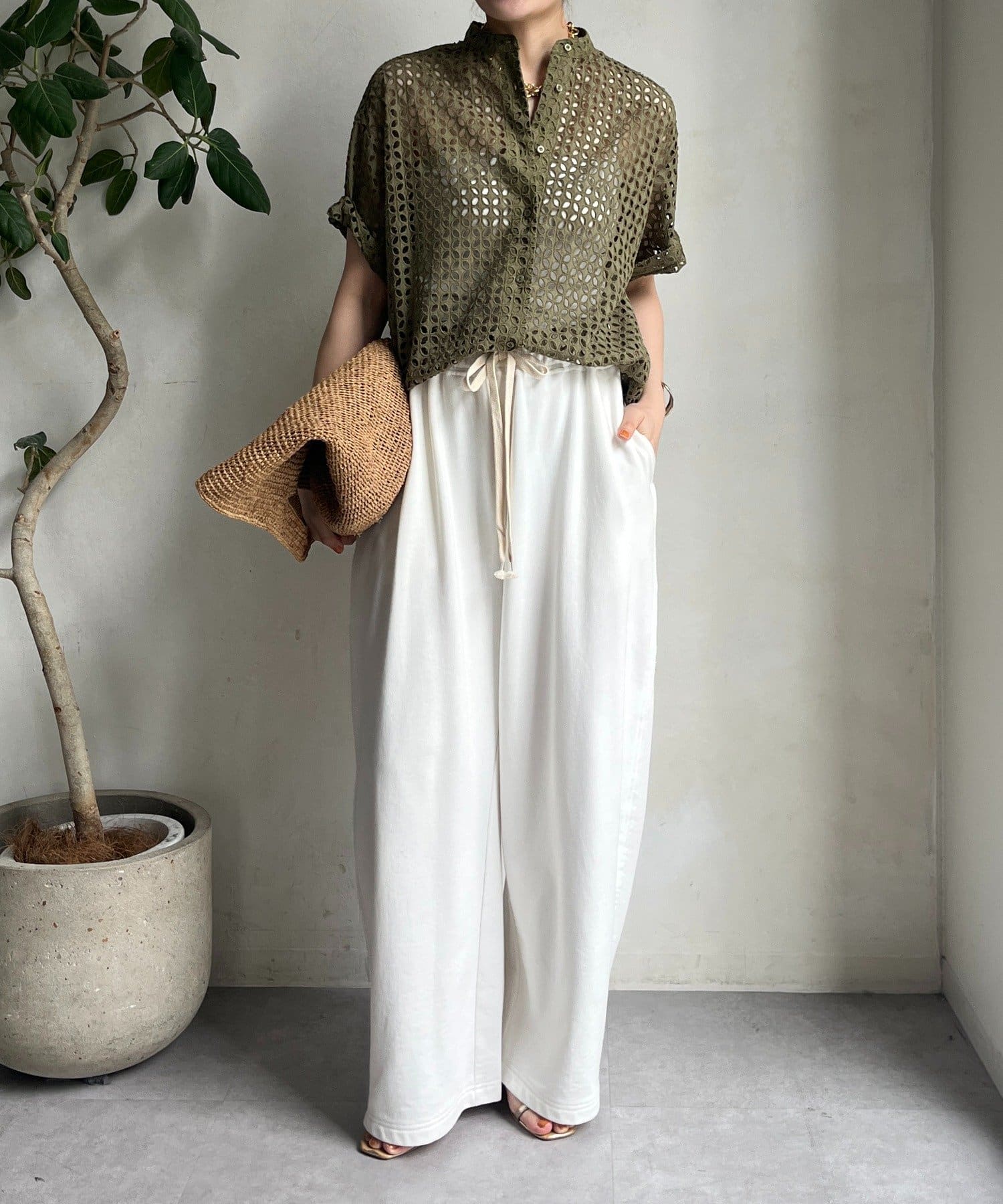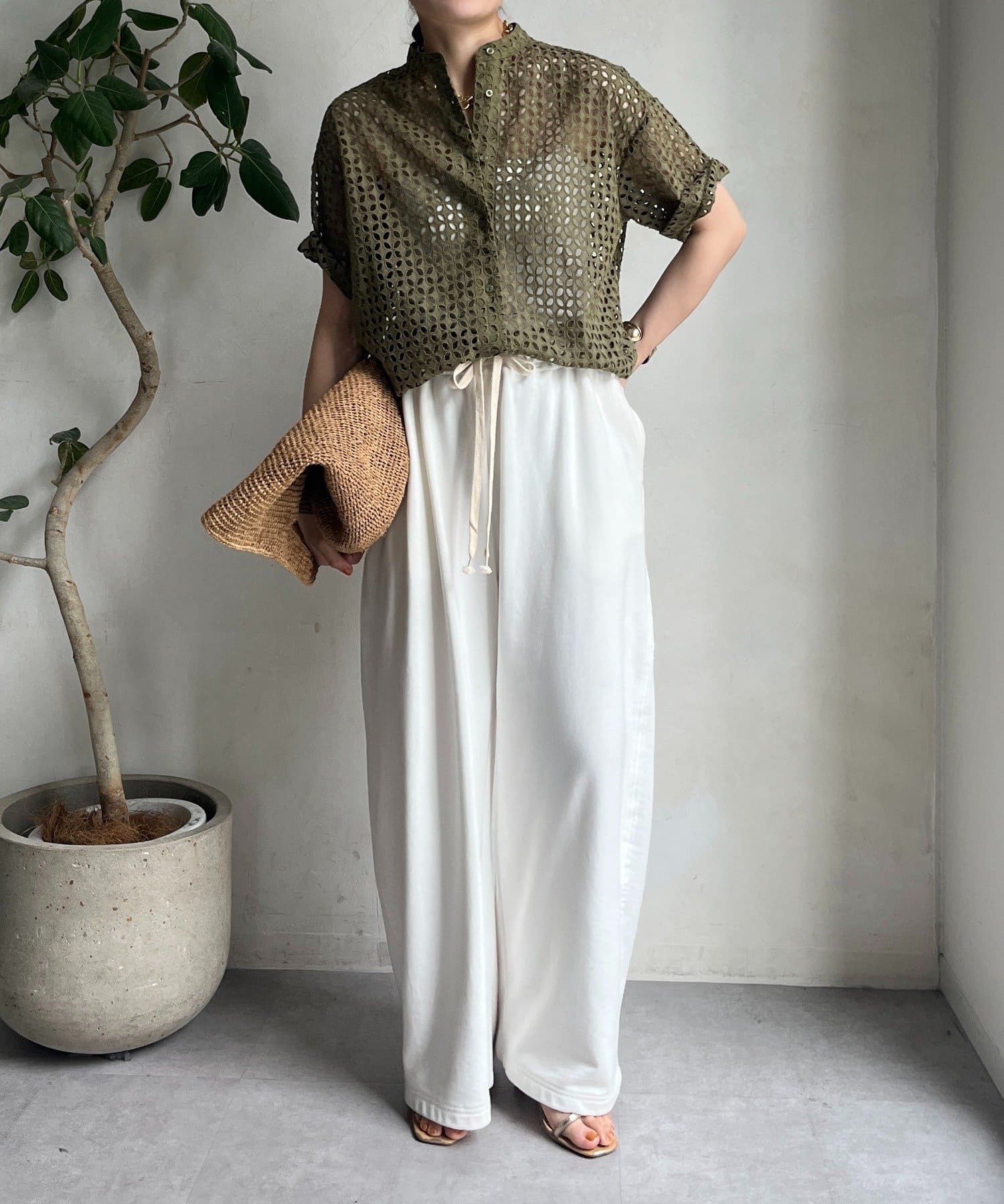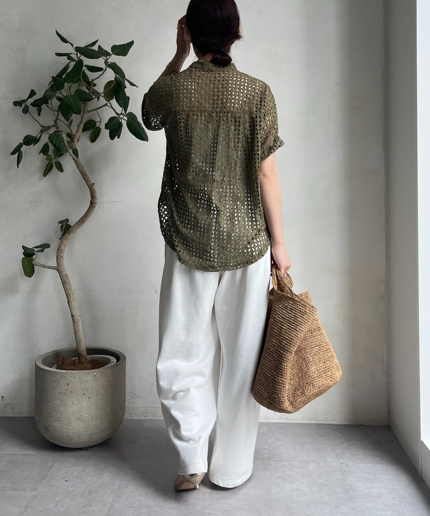 【WEB限定】カットワークレースハーフスリーブシャツ