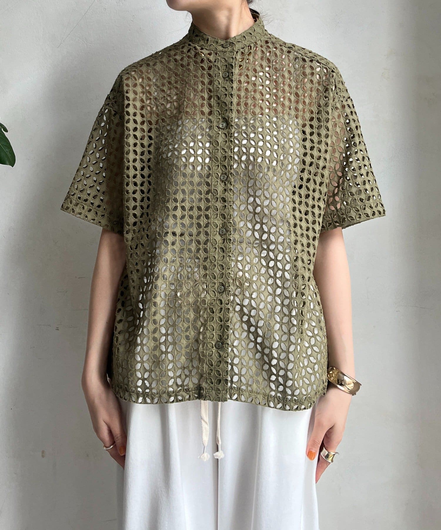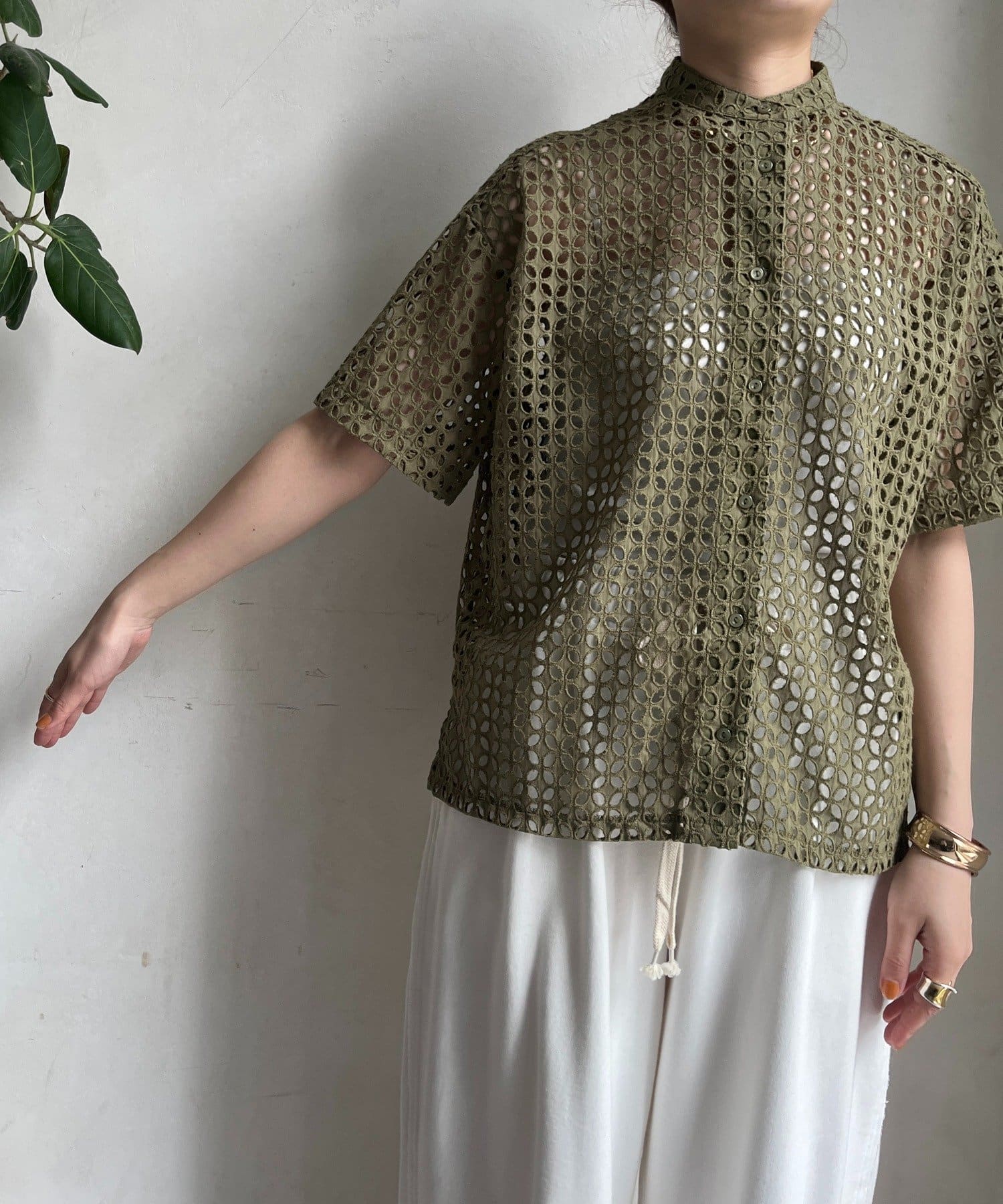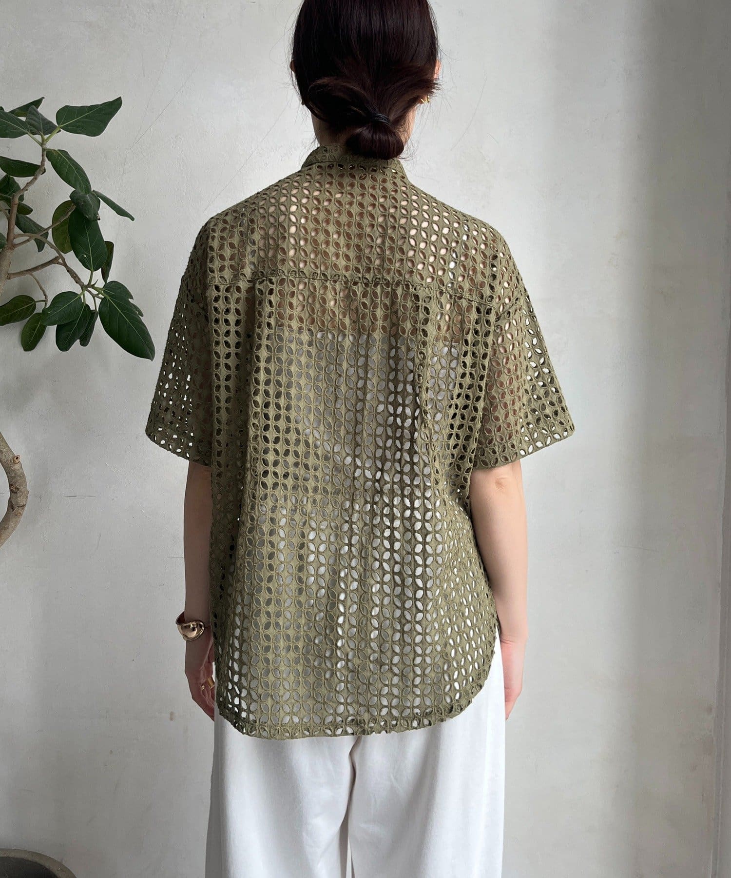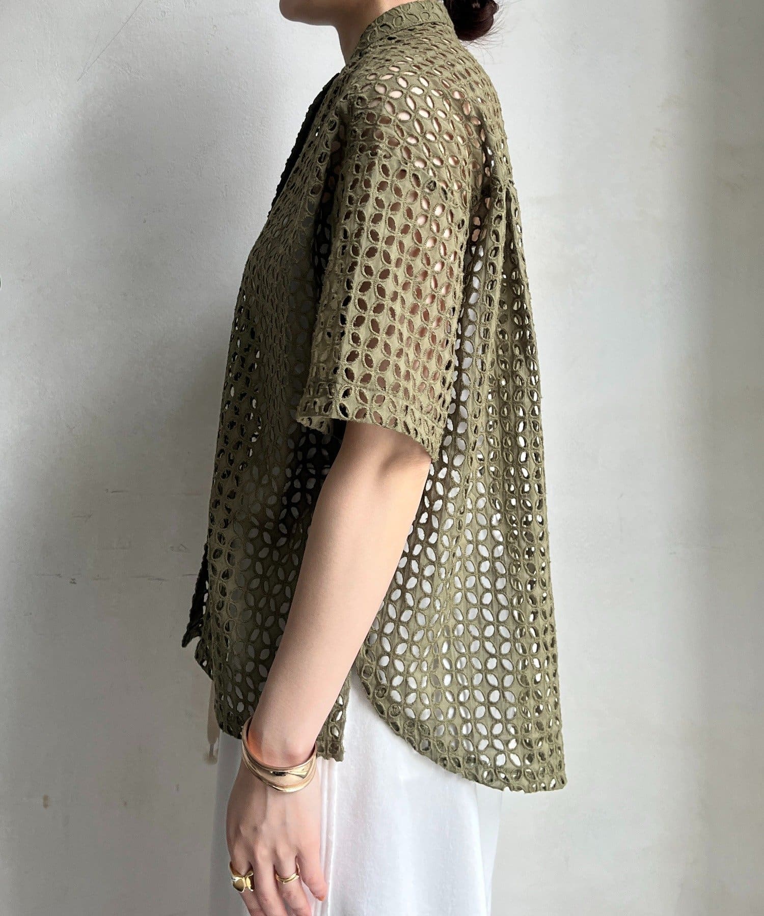まるでアンティークレースのような繊細なカットワークが目を惹く、ハーフスリーブシャツ。