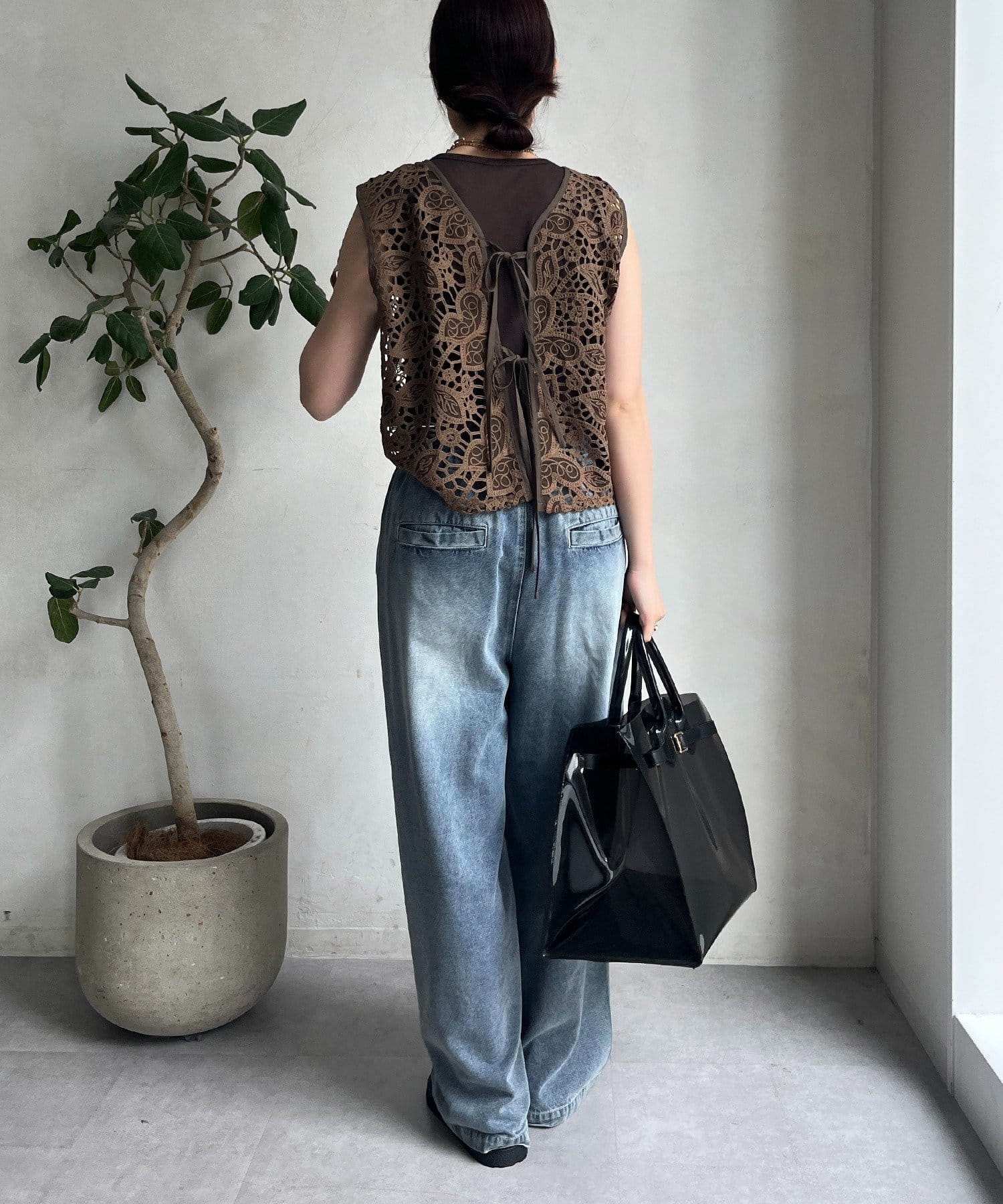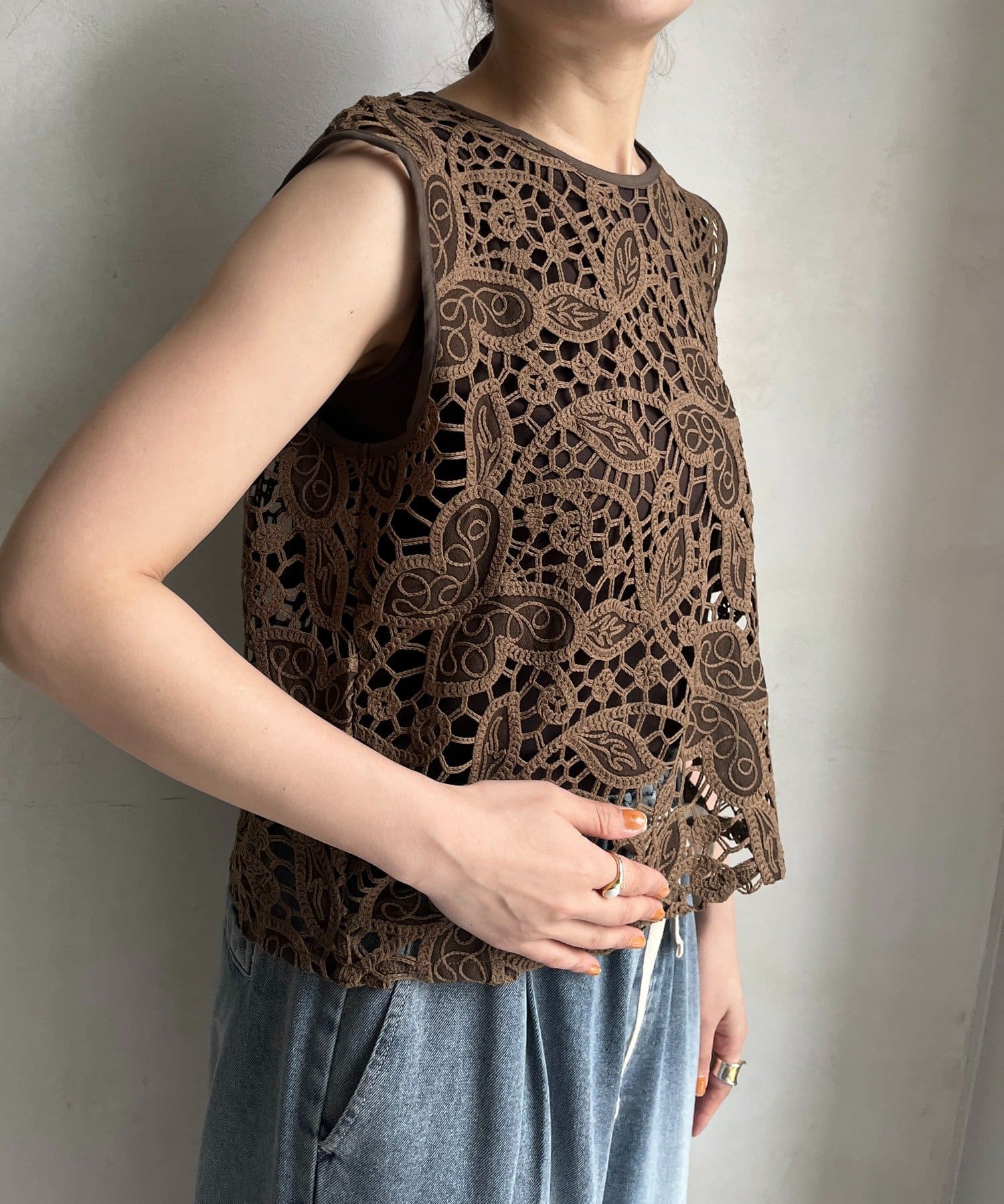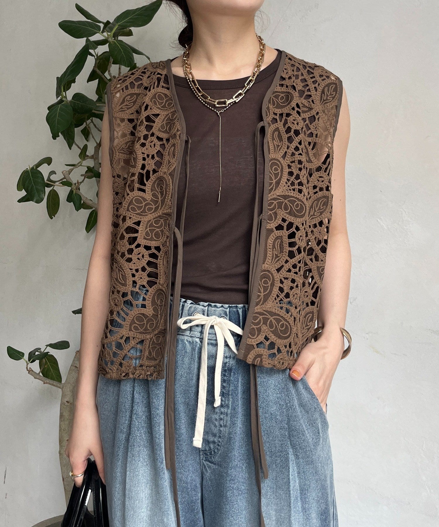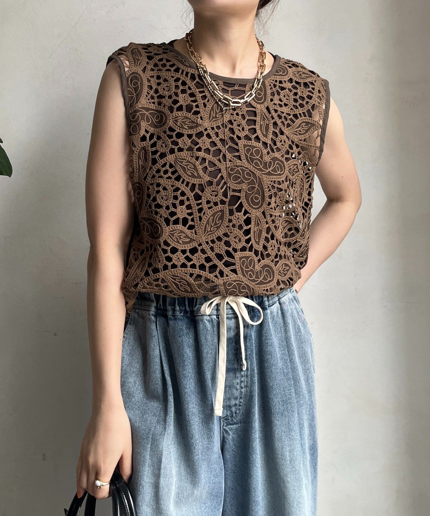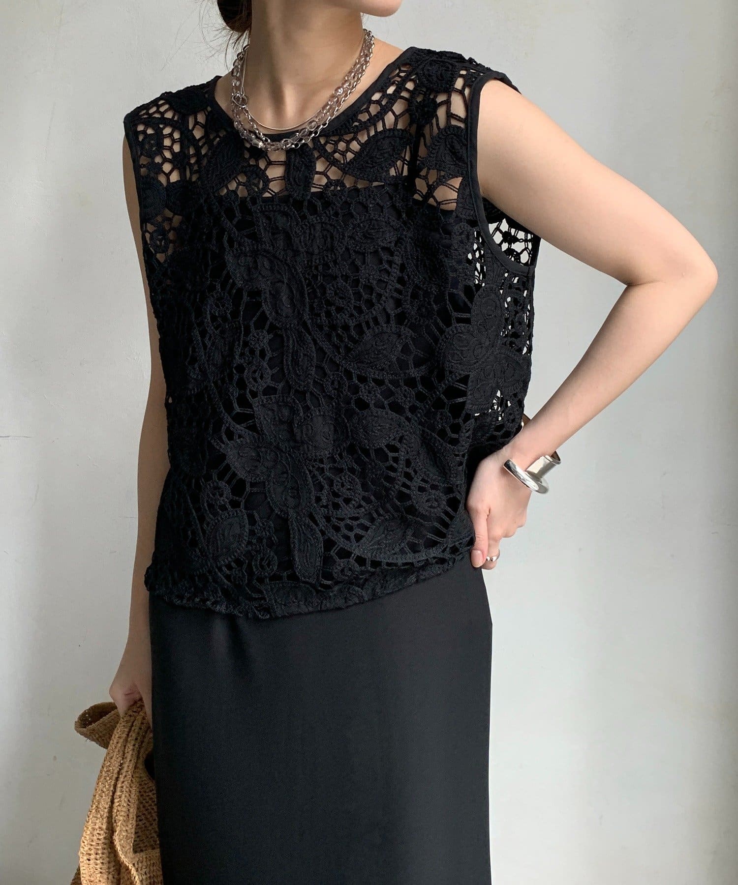 Tシャツやカットソーにレイヤードして、レースを覗かせれば、こなれ感のあるスタイリングが完成します。