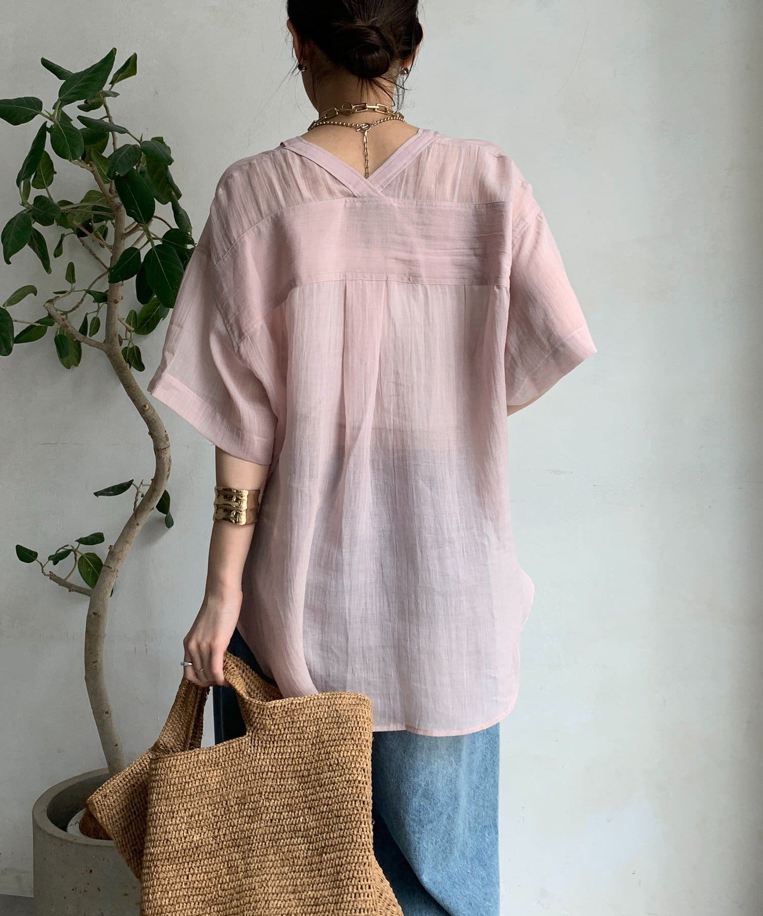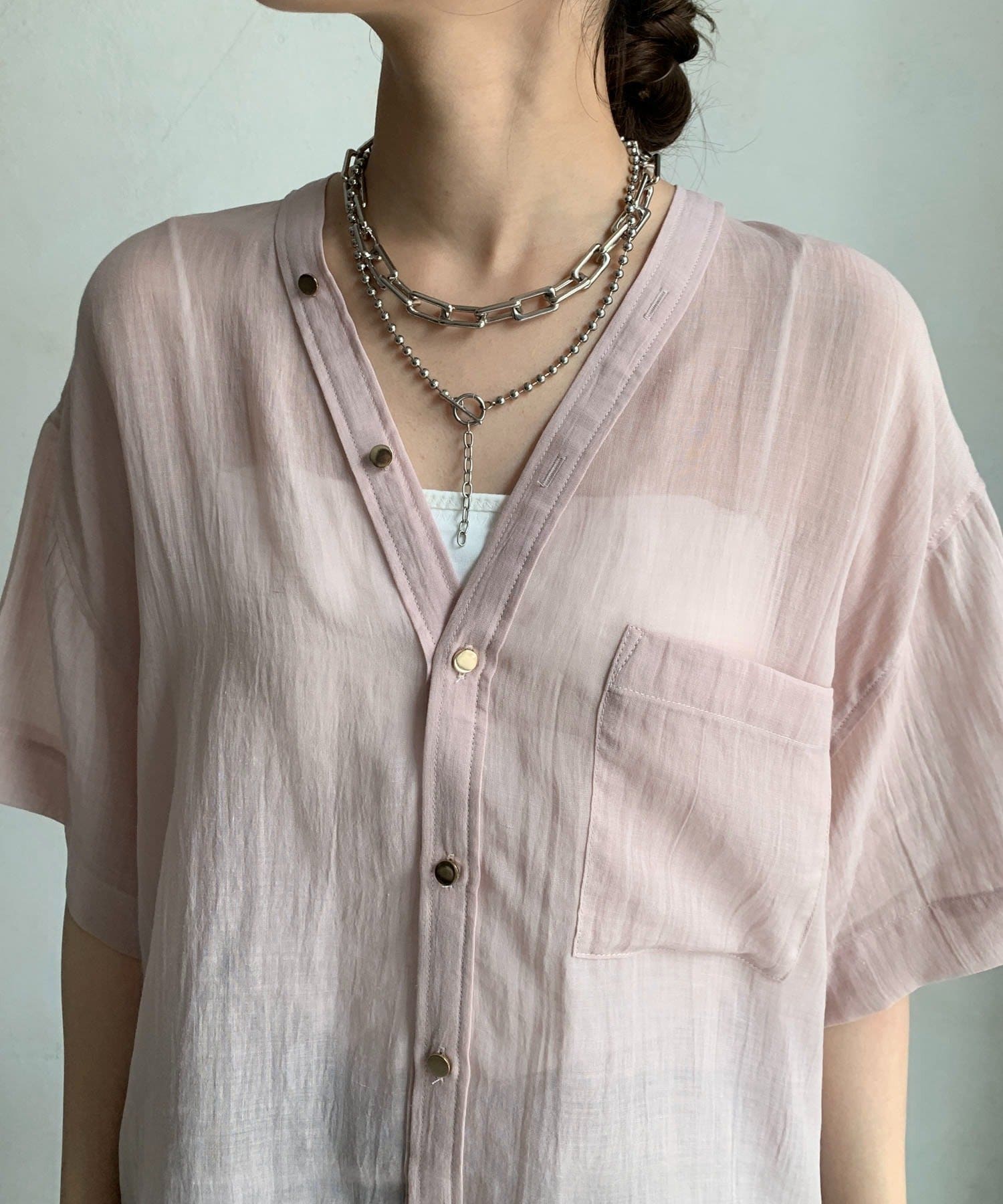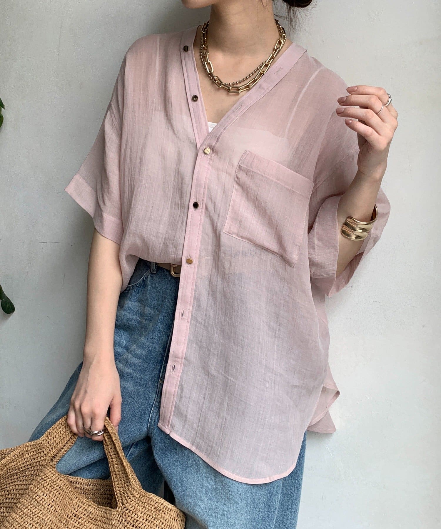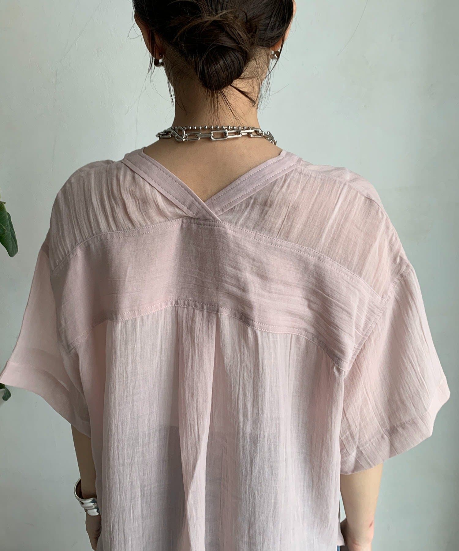 デザインのポイントは、顔周りをすっきりと見せてくれるVネック。