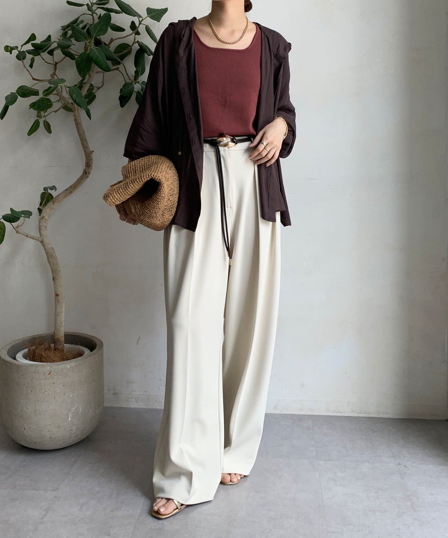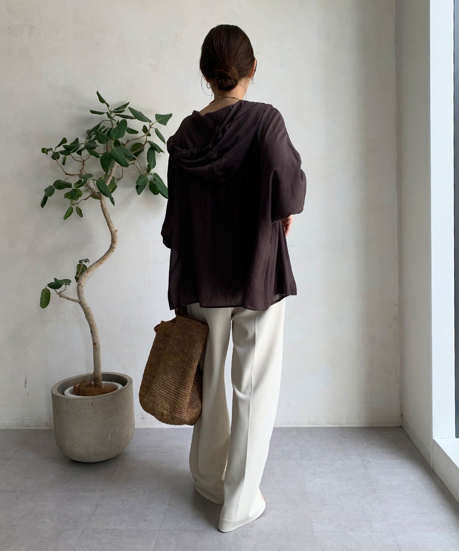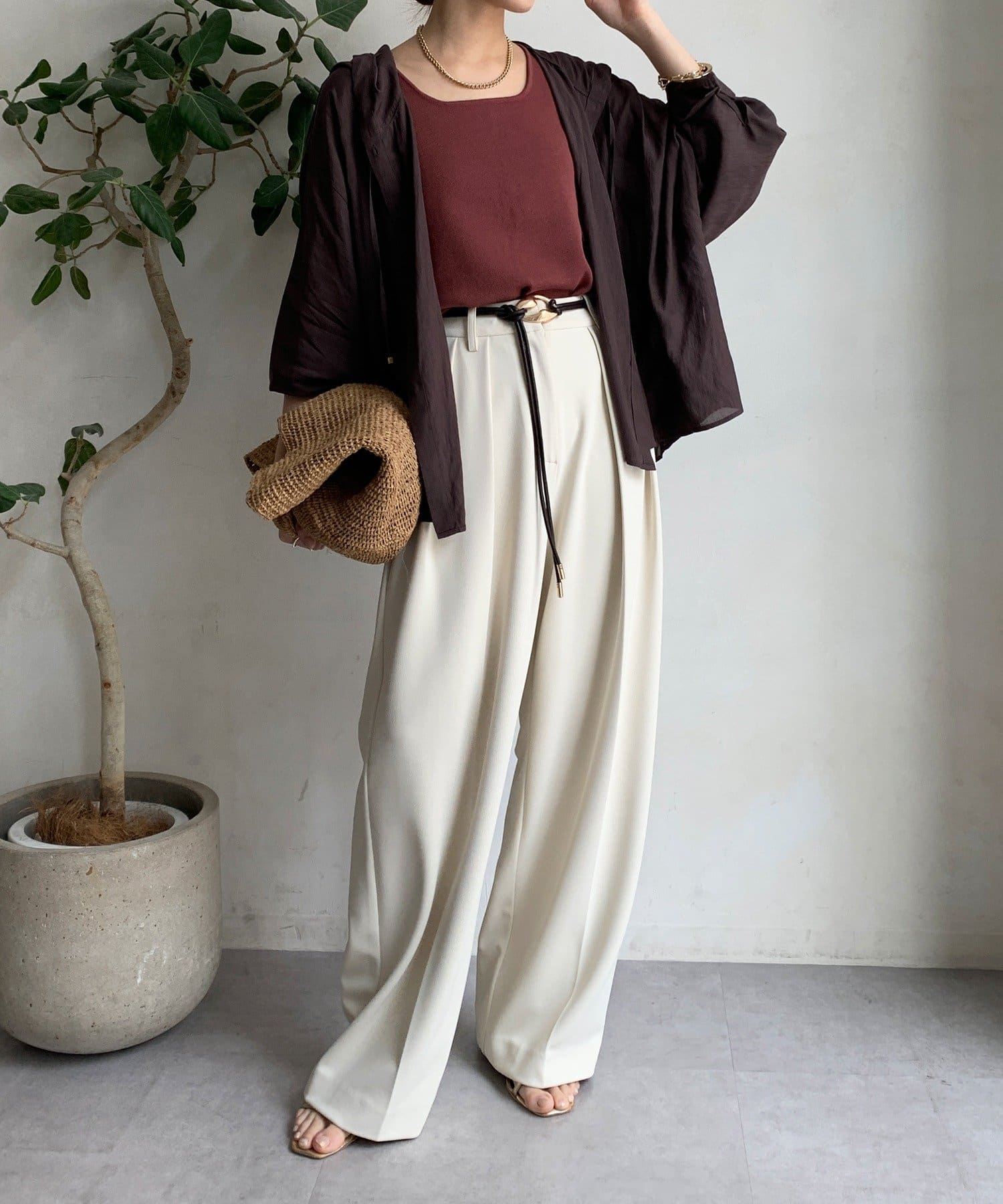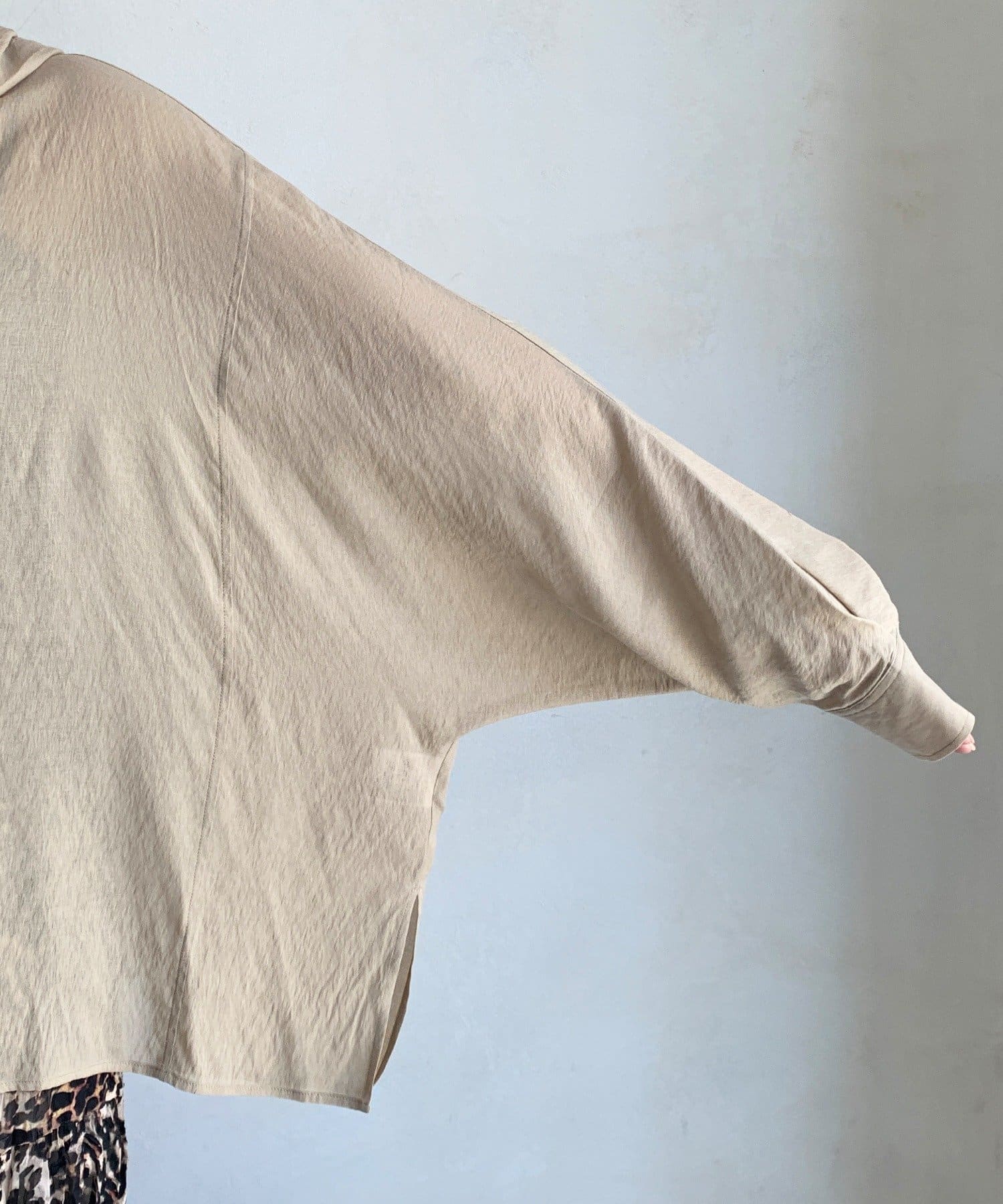 程よく透け感のある素材と、ゆったりと抜け感のでるドルマンシルエットが大人の余裕を感じさせるスタイリングを叶えます。