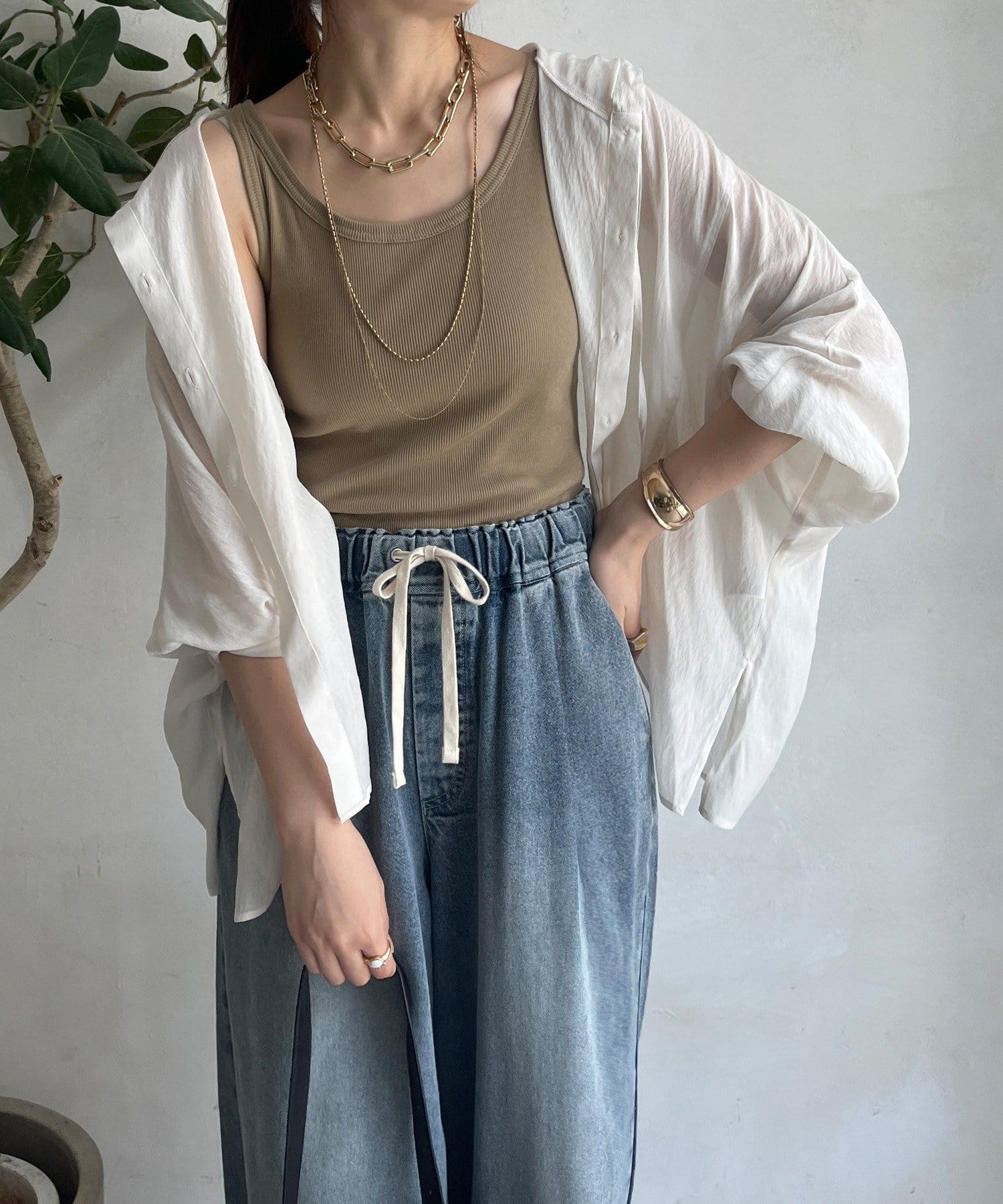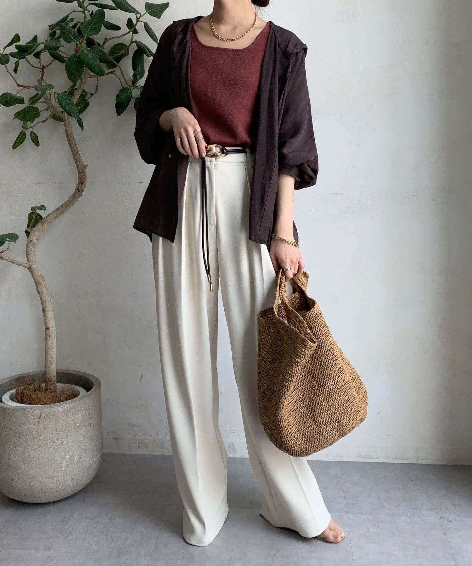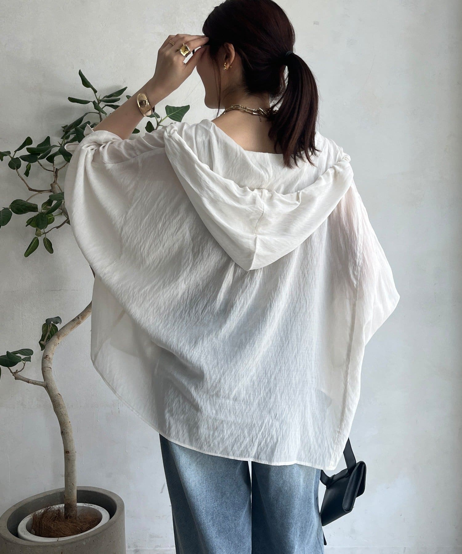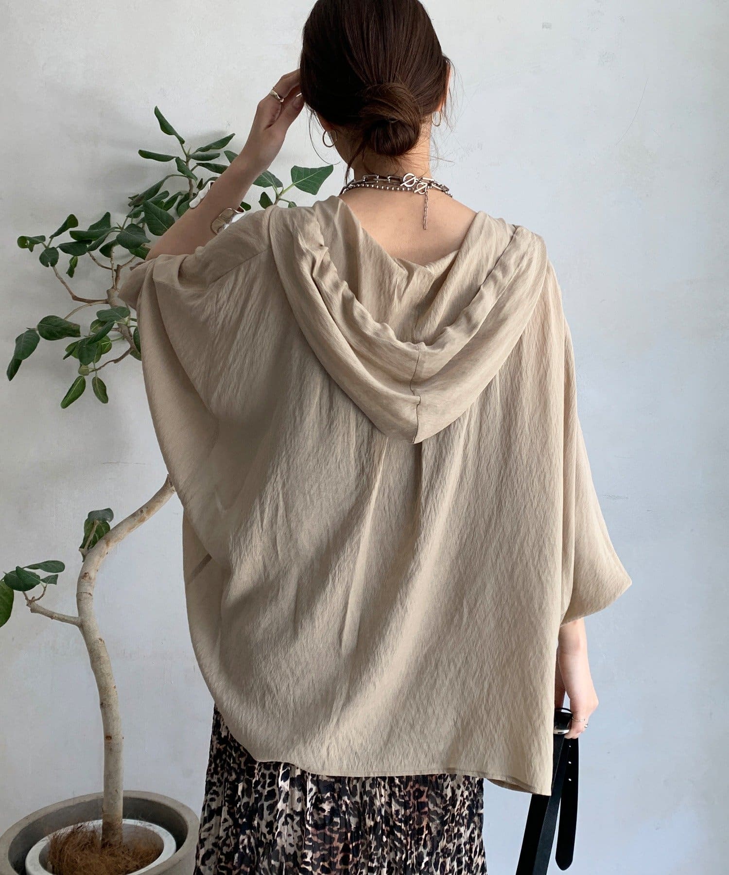 程よく透け感のある素材と、ゆったりと抜け感のでるドルマンシルエットが大人の余裕を感じさせるスタイリングを叶えます。