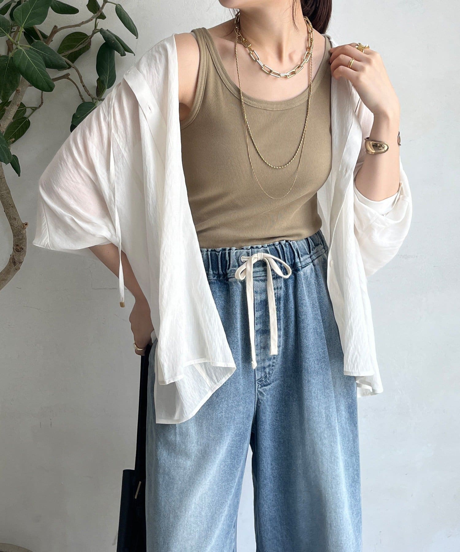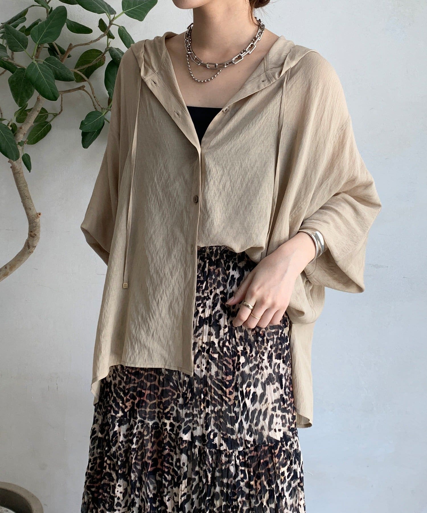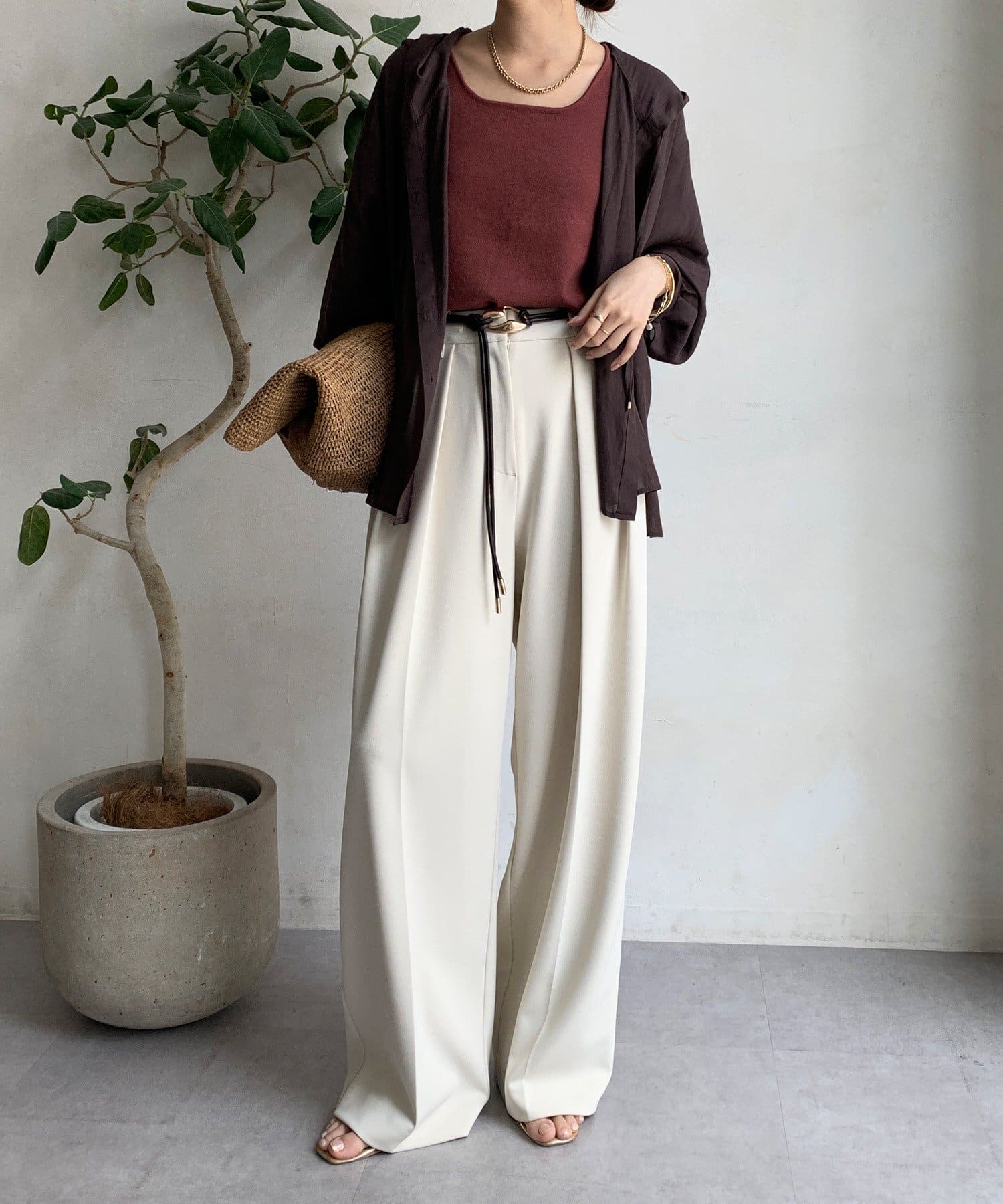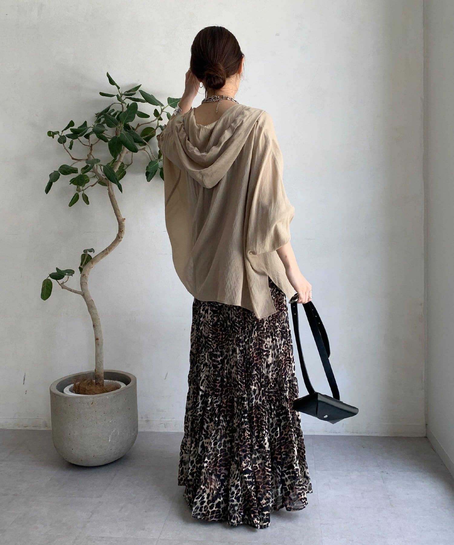 程よく透け感のある素材と、ゆったりと抜け感のでるドルマンシルエットが大人の余裕を感じさせるスタイリングを叶えます。