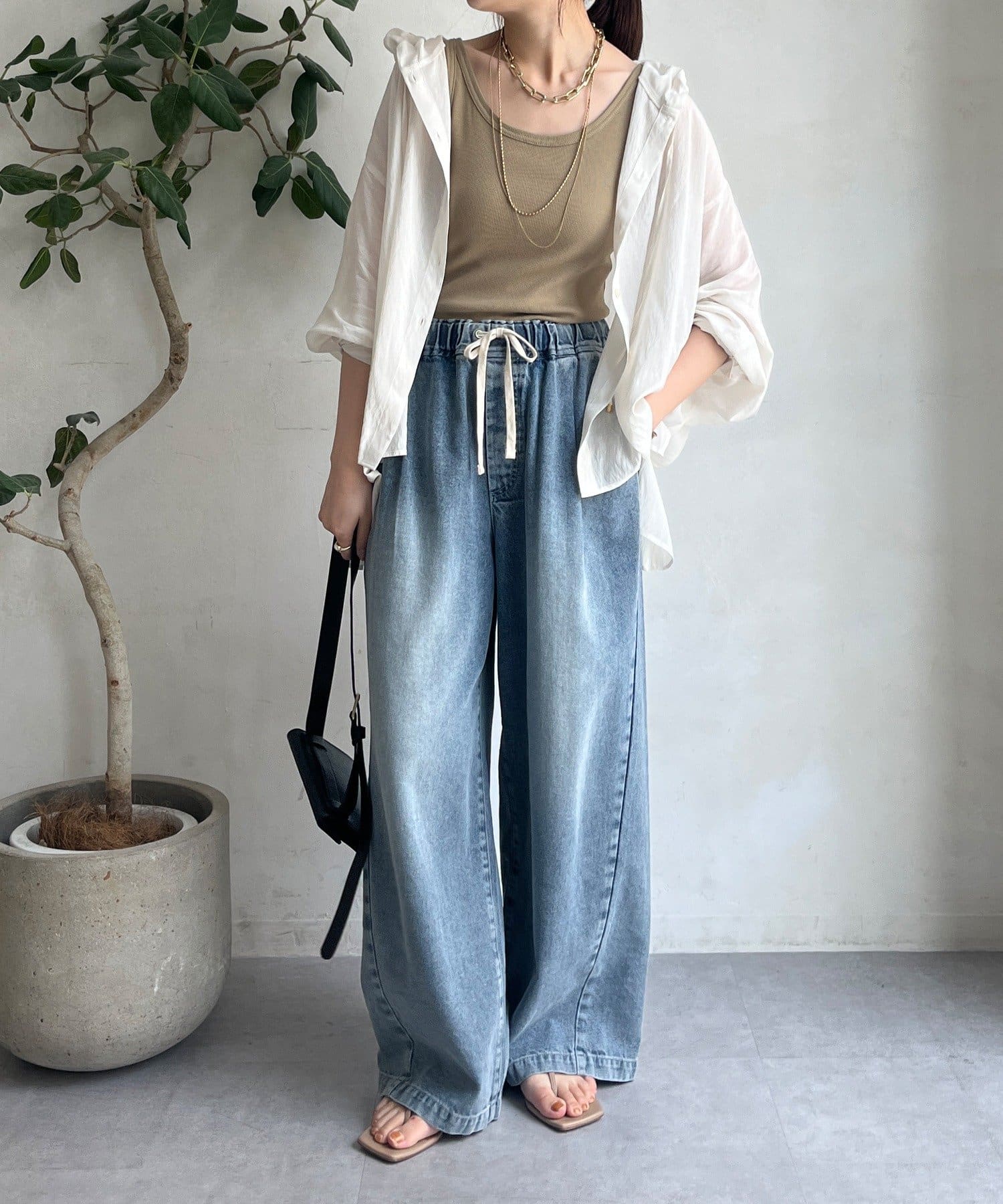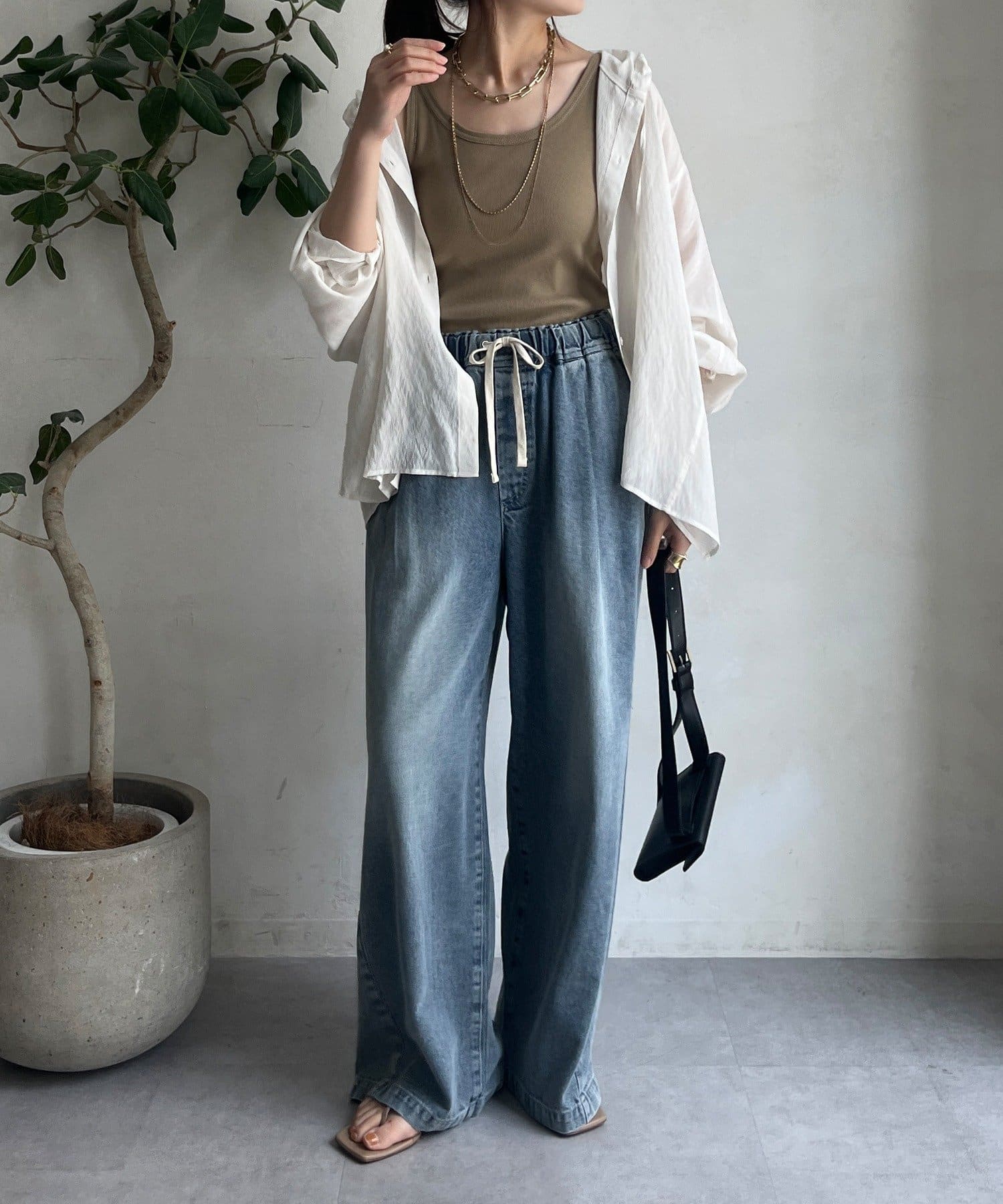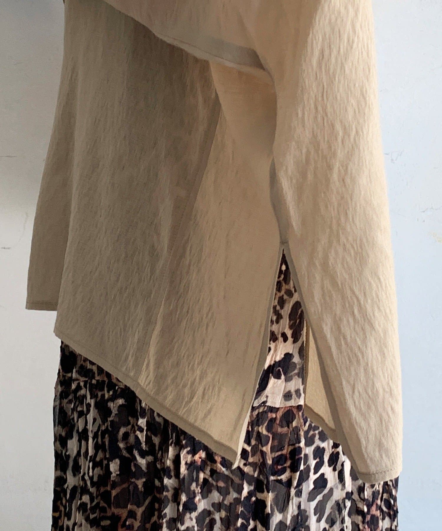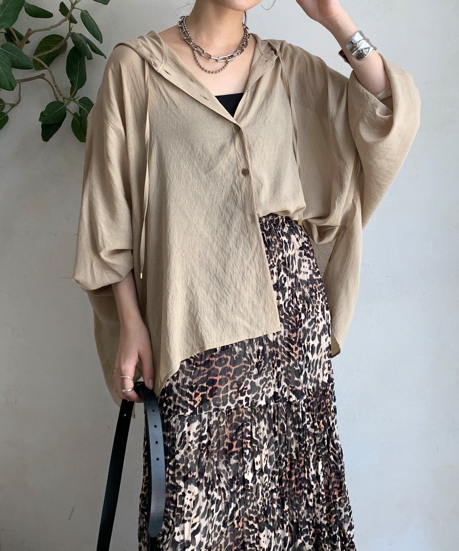 程よく透け感のある素材と、ゆったりと抜け感のでるドルマンシルエットが大人の余裕を感じさせるスタイリングを叶えます。
