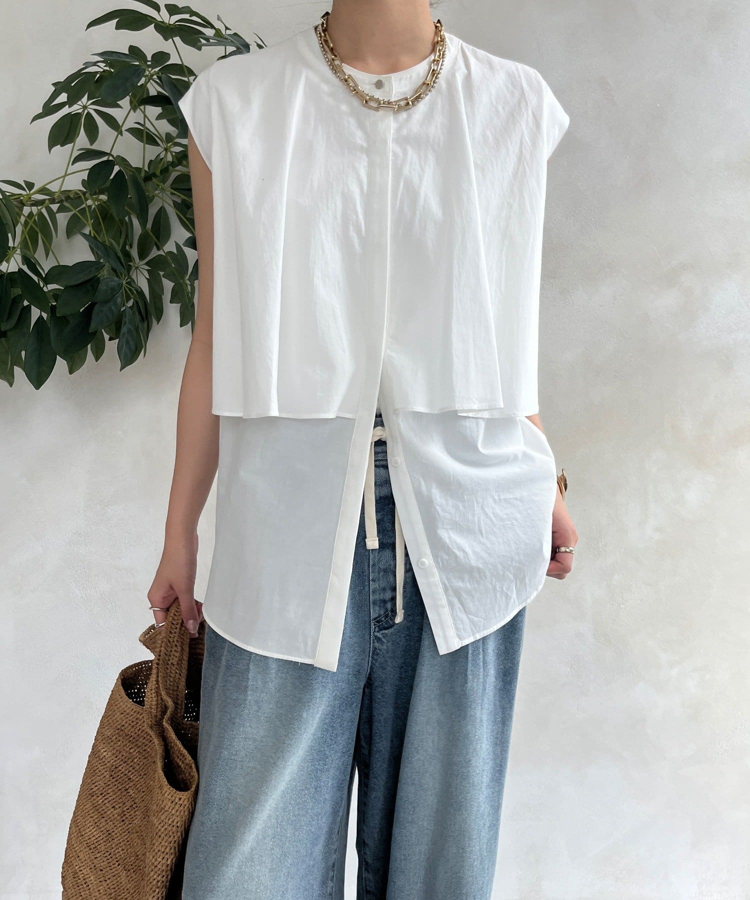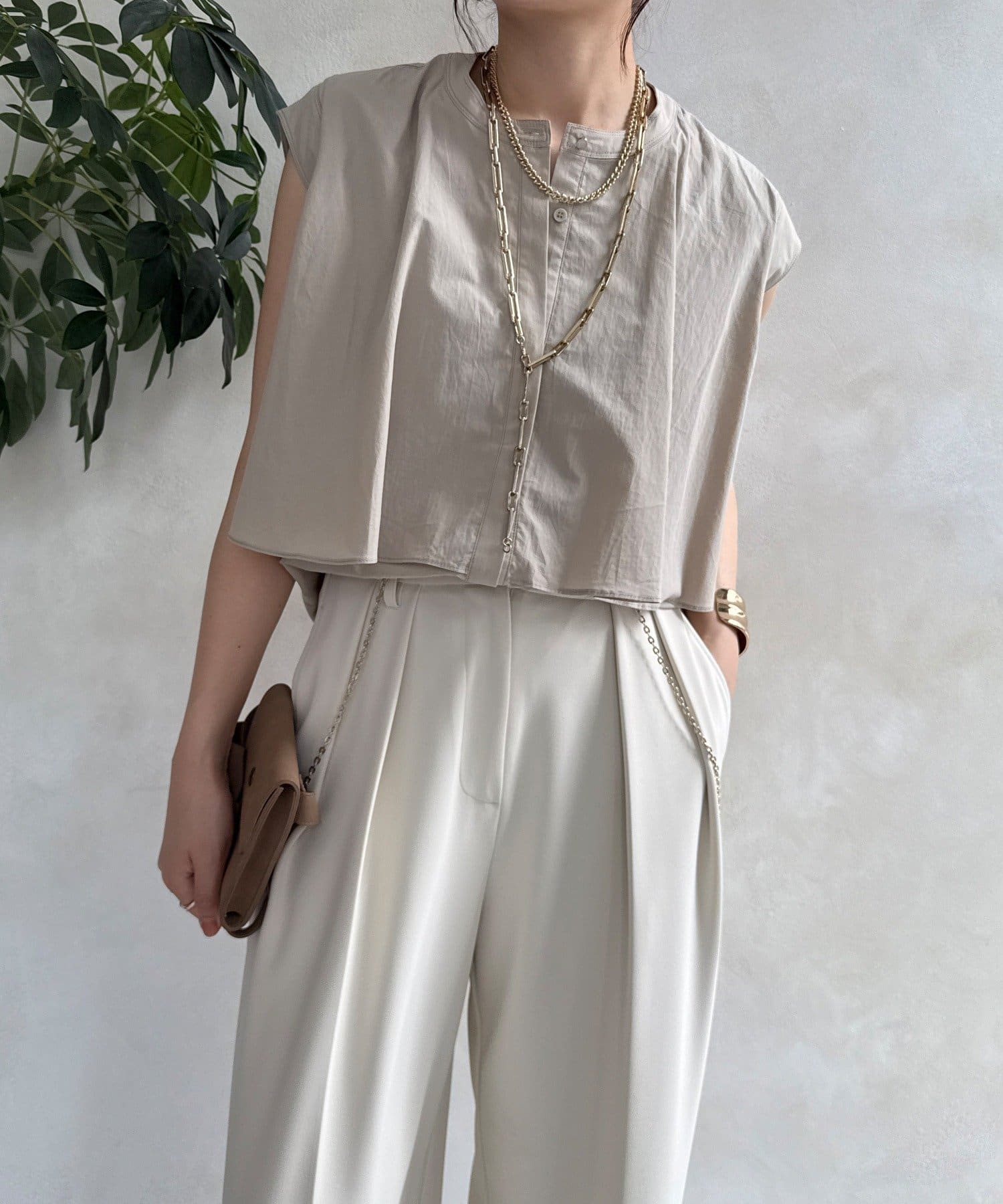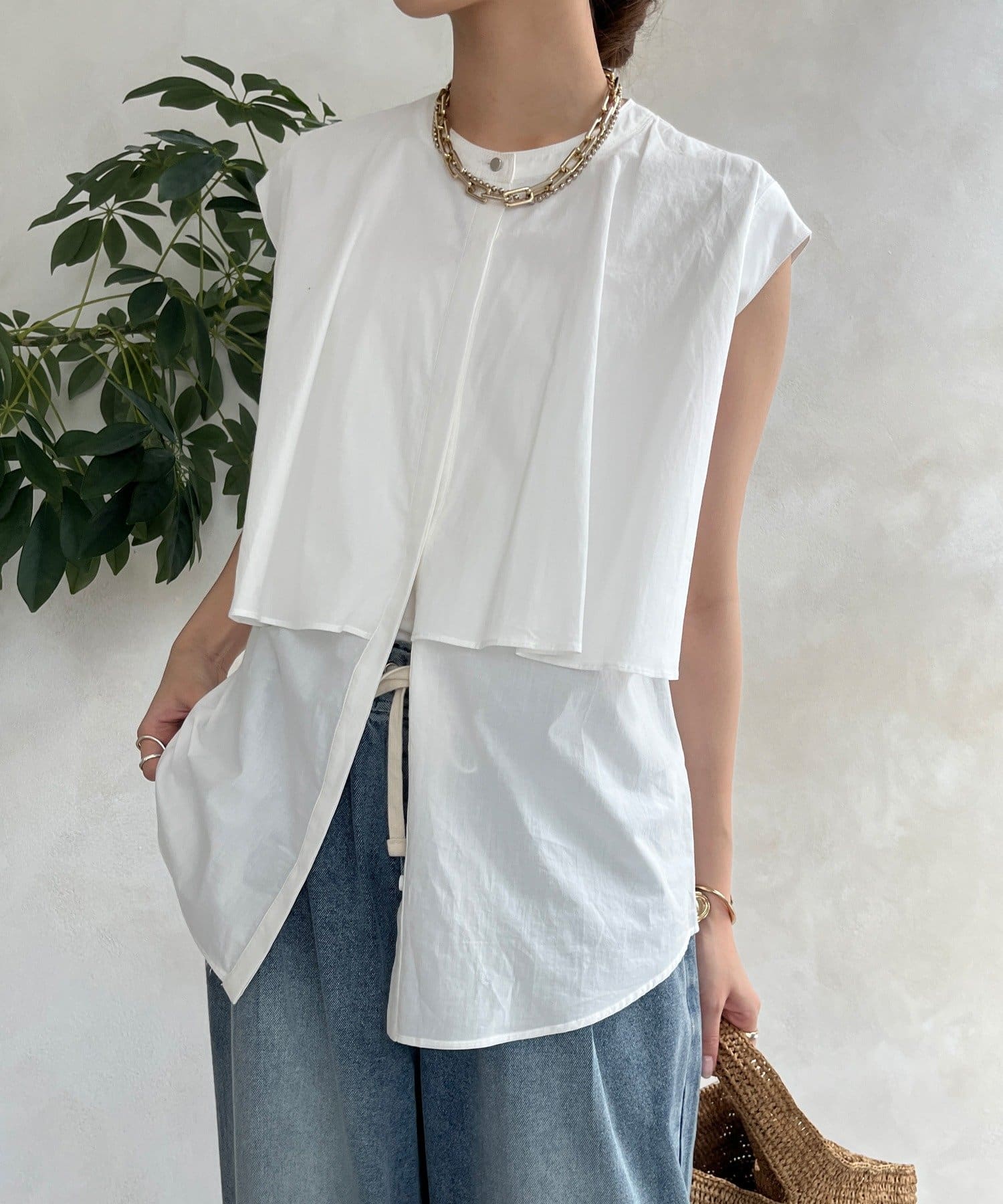 ボタンが見えないスッキリ感で上品&ミニマルな印象。