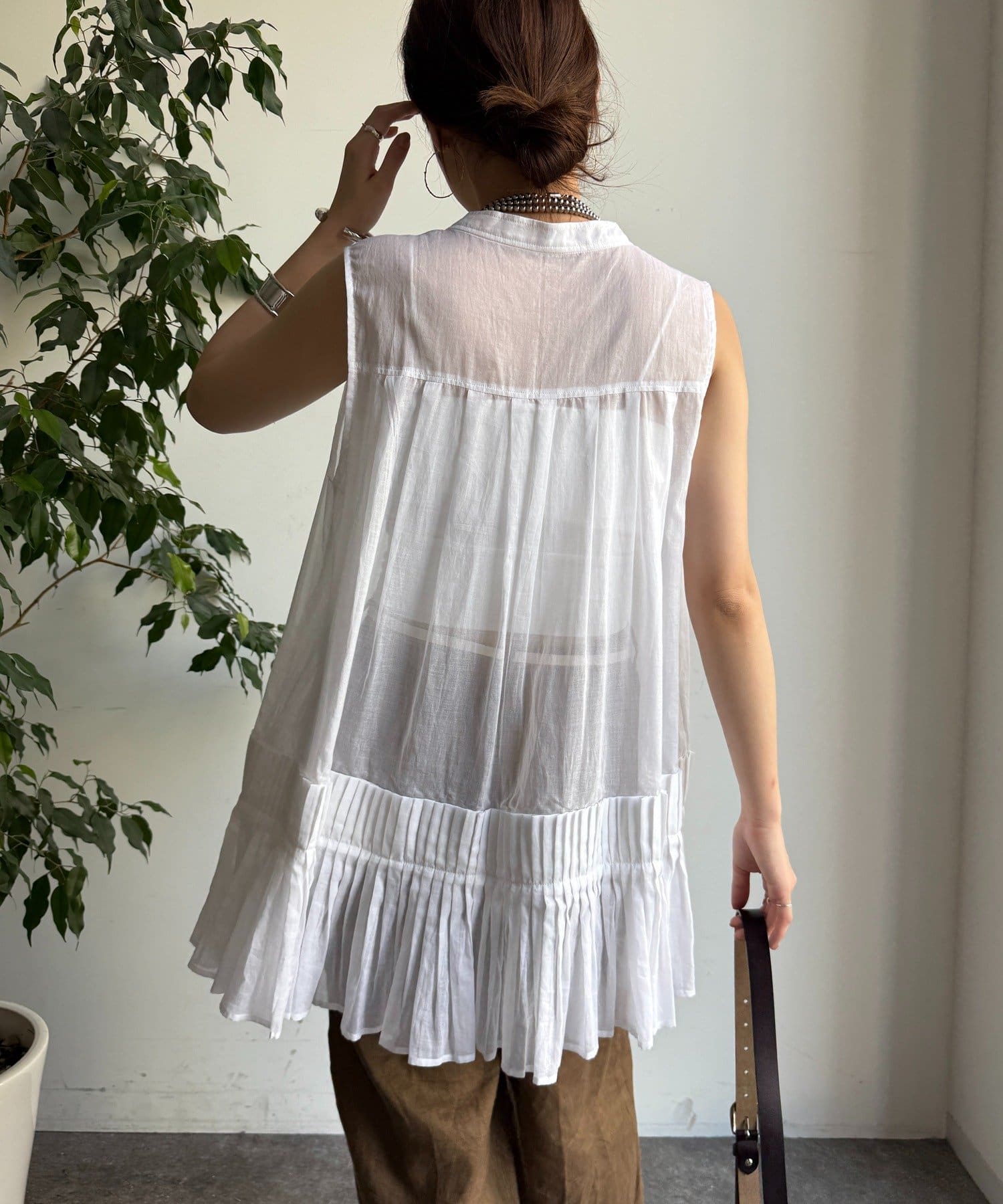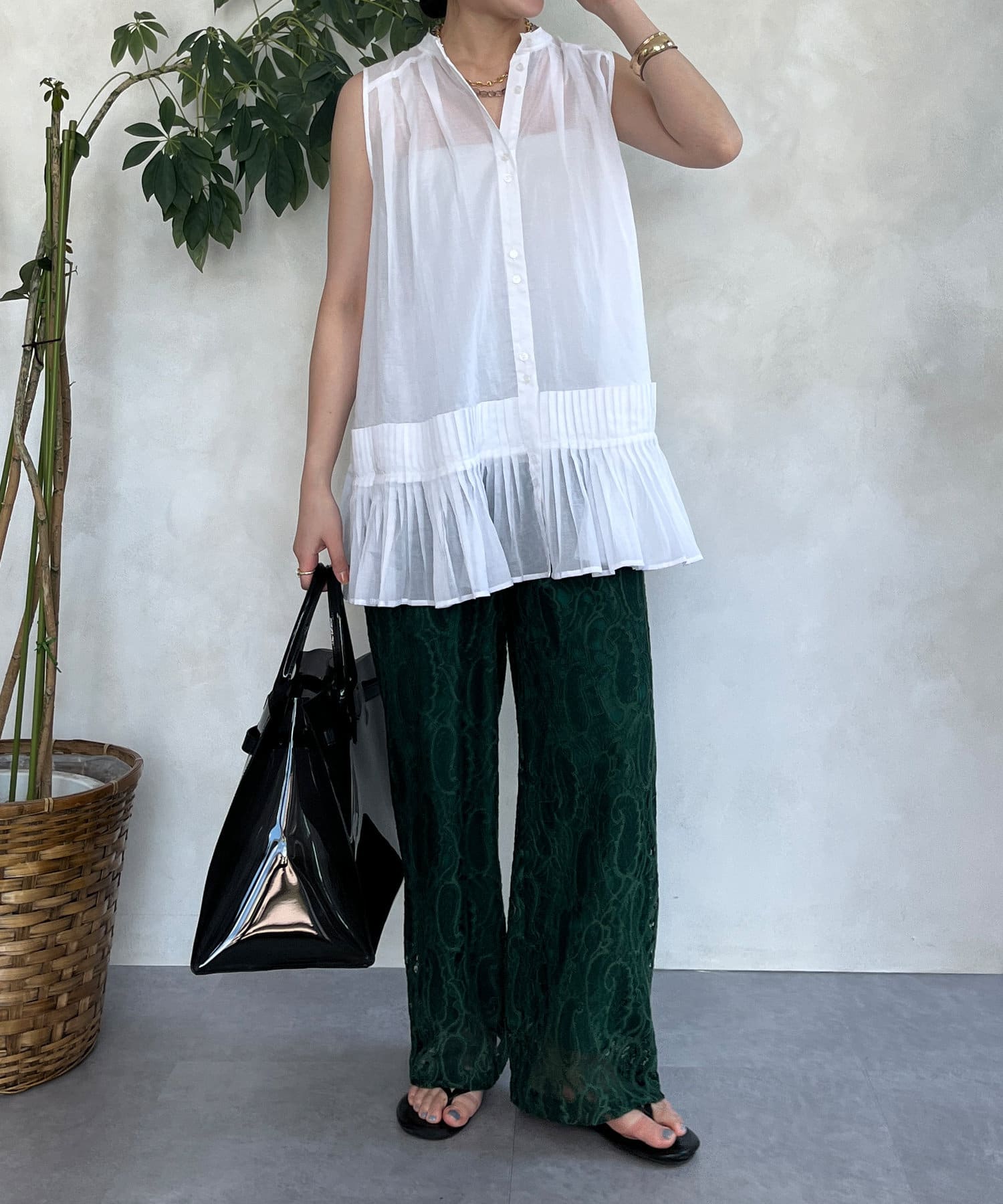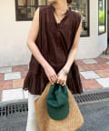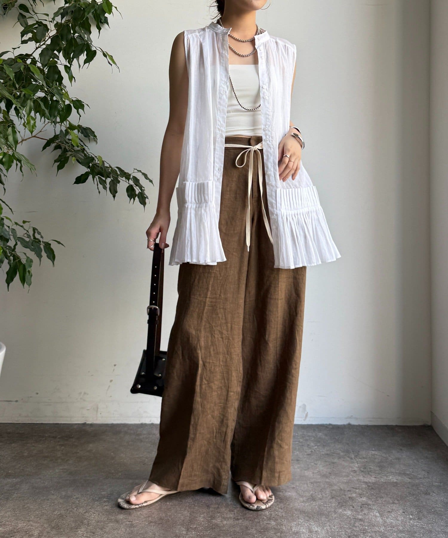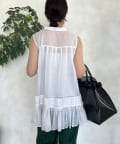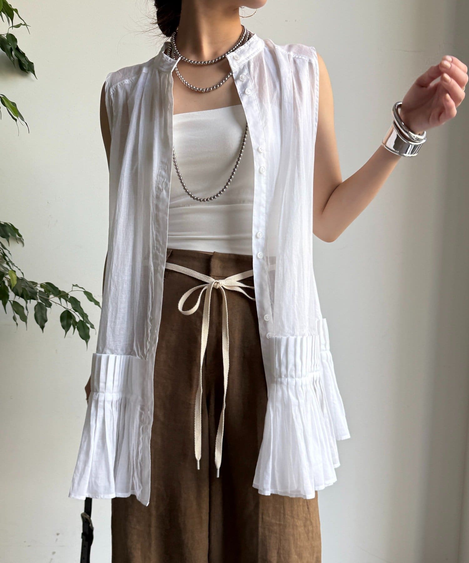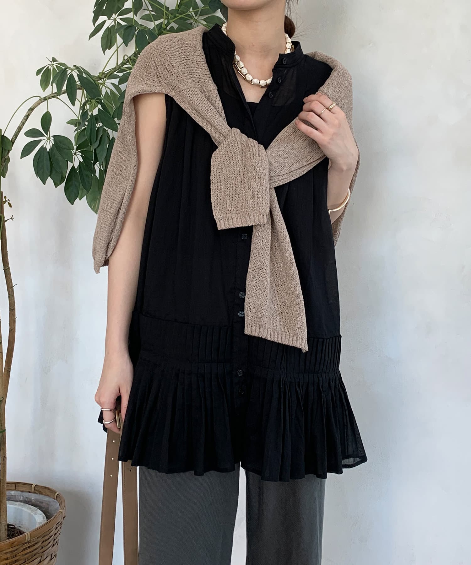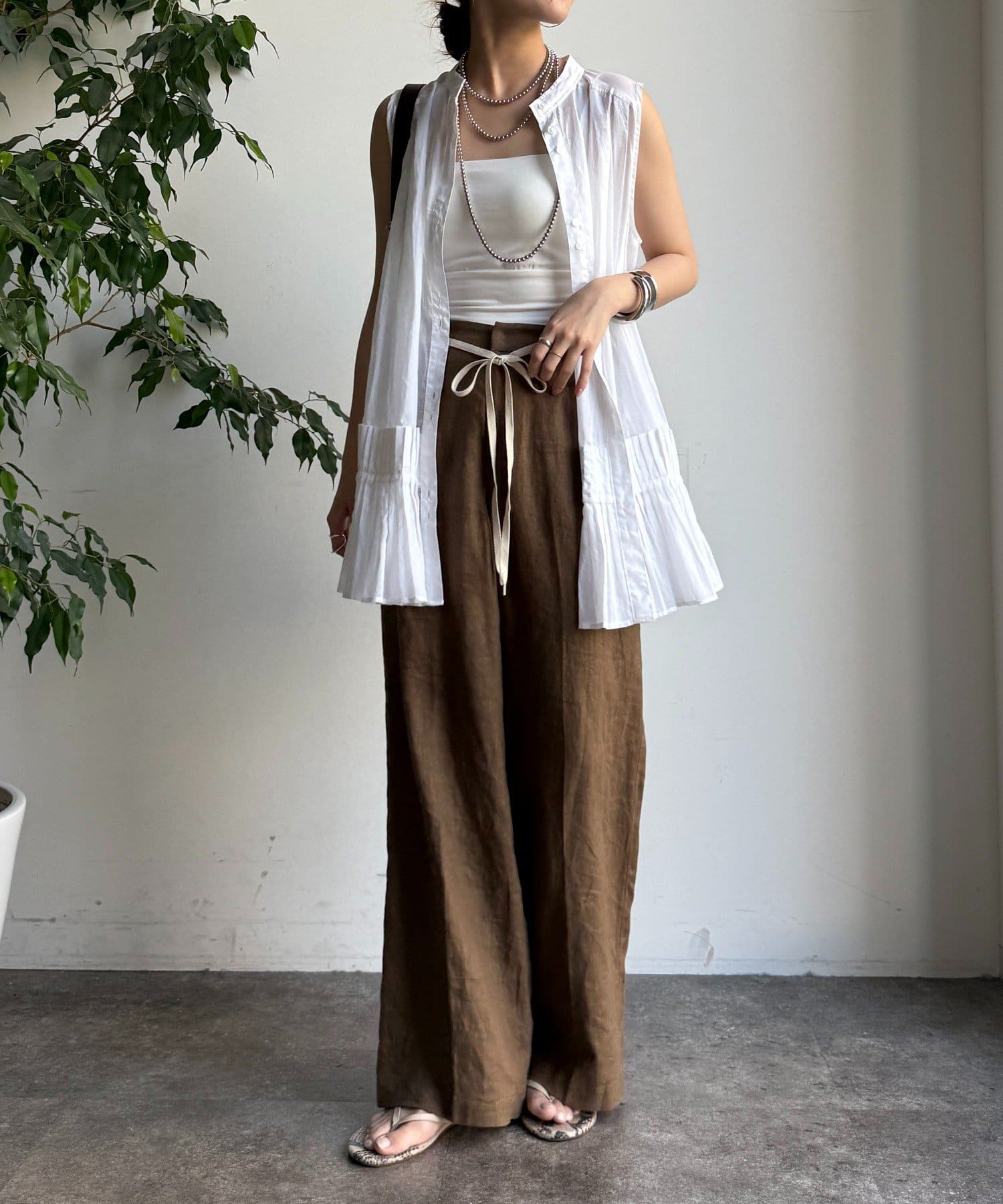 シアー感のある素材と、風通しのいいシルエットで真夏も快適に着られる1着に。