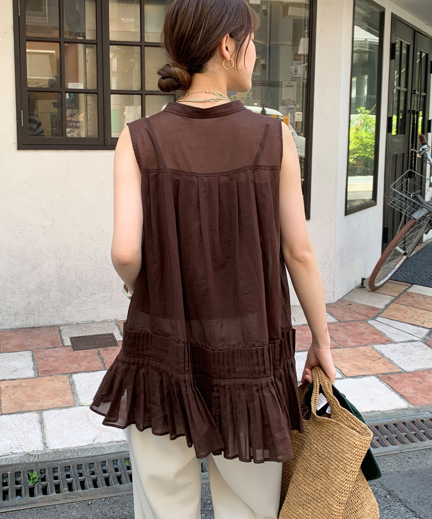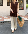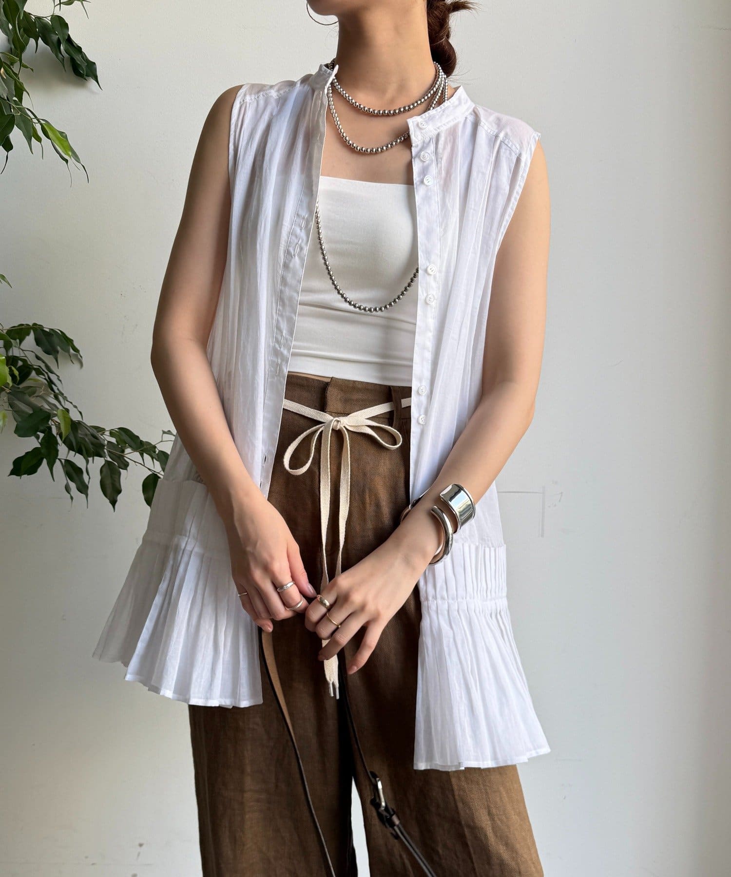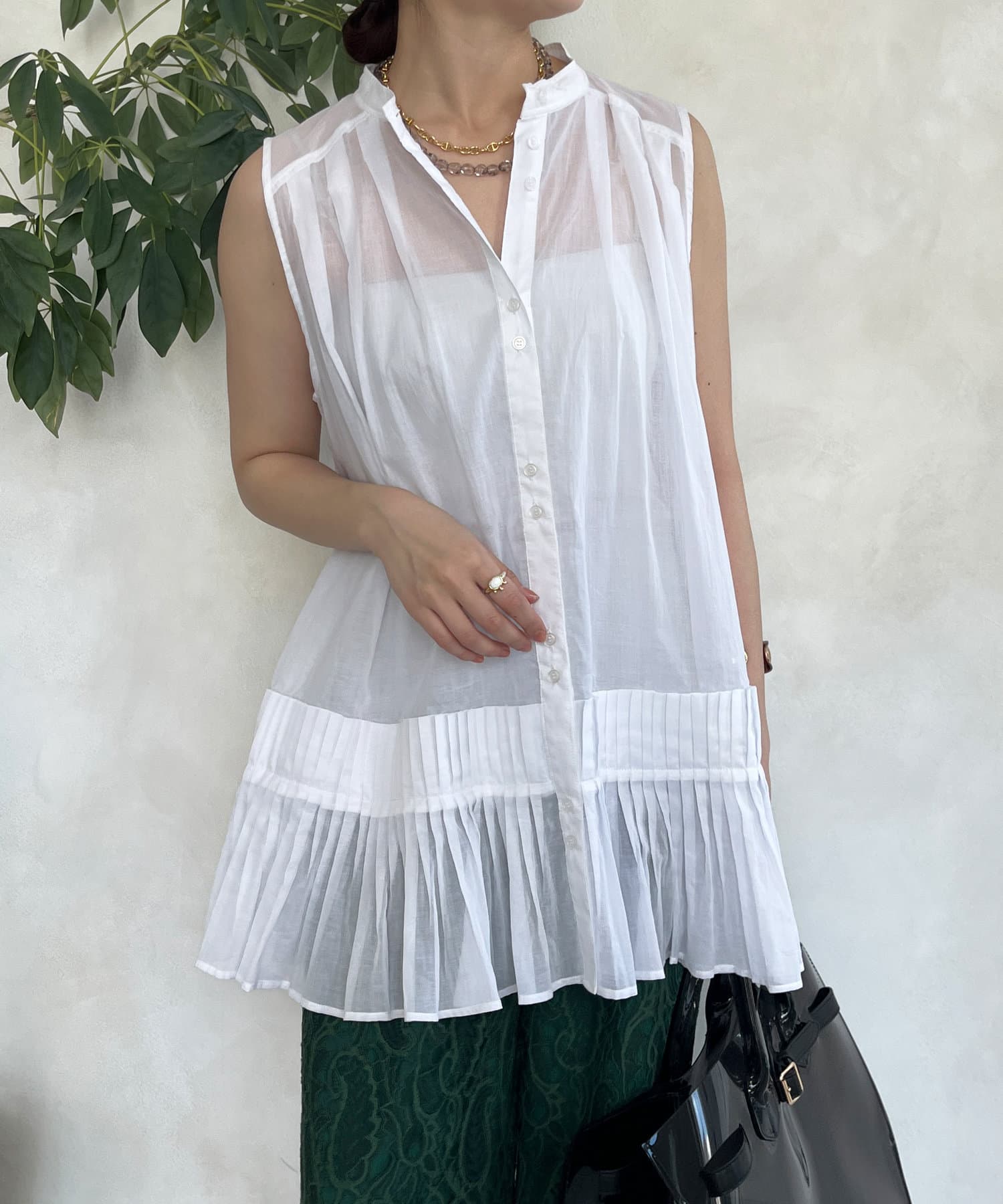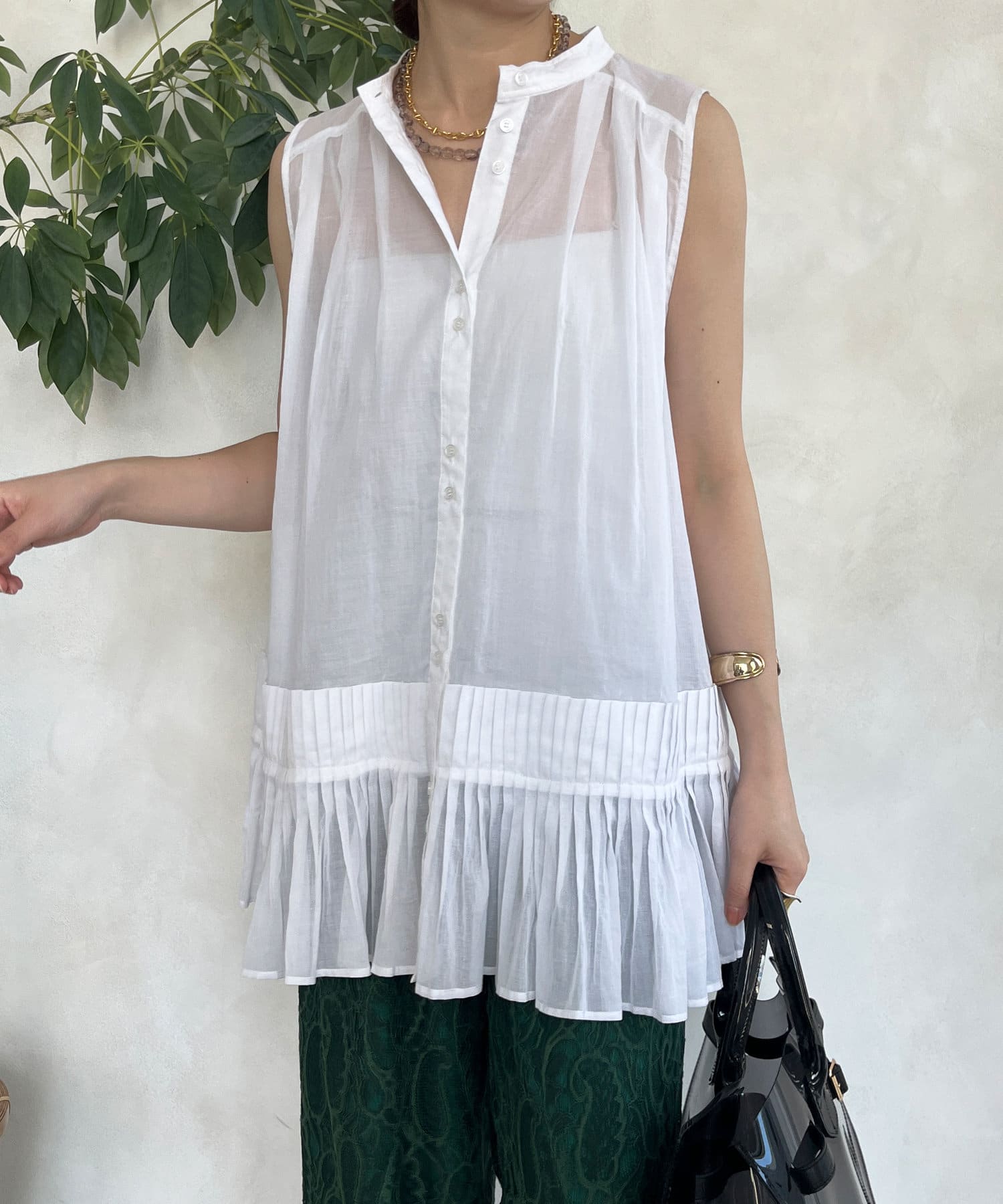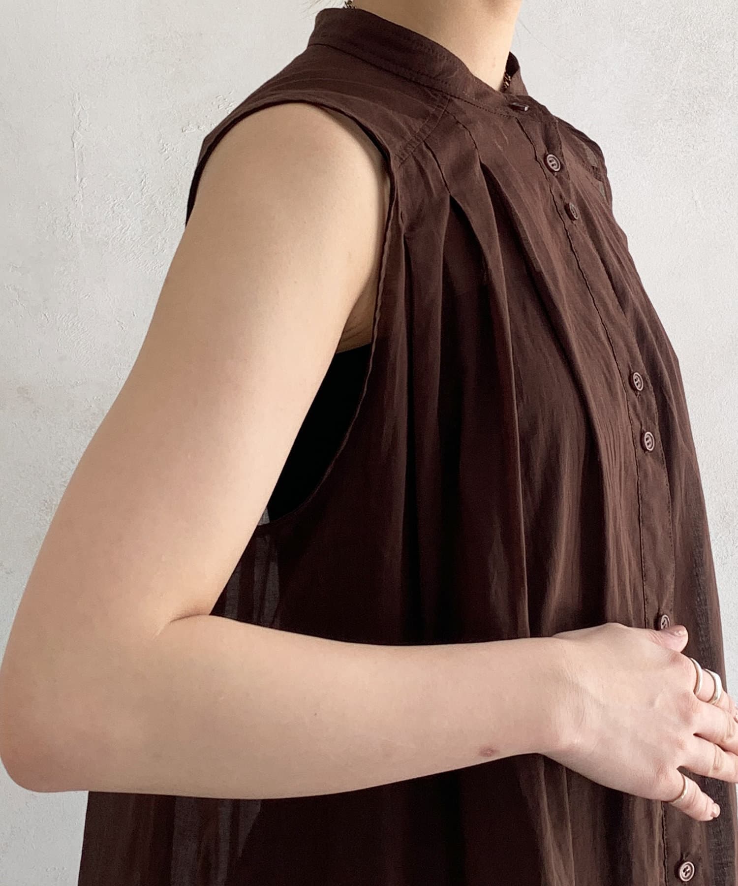 シアー感のある素材と、風通しのいいシルエットで真夏も快適に着られる1着に。