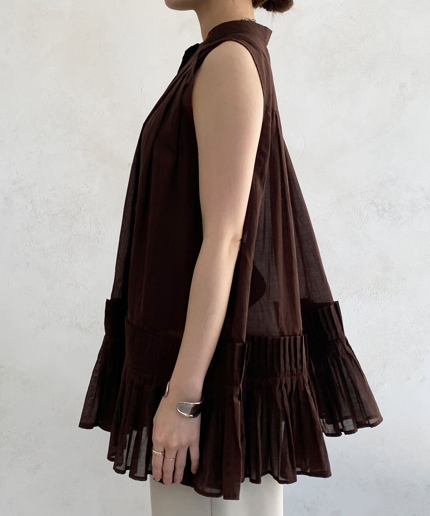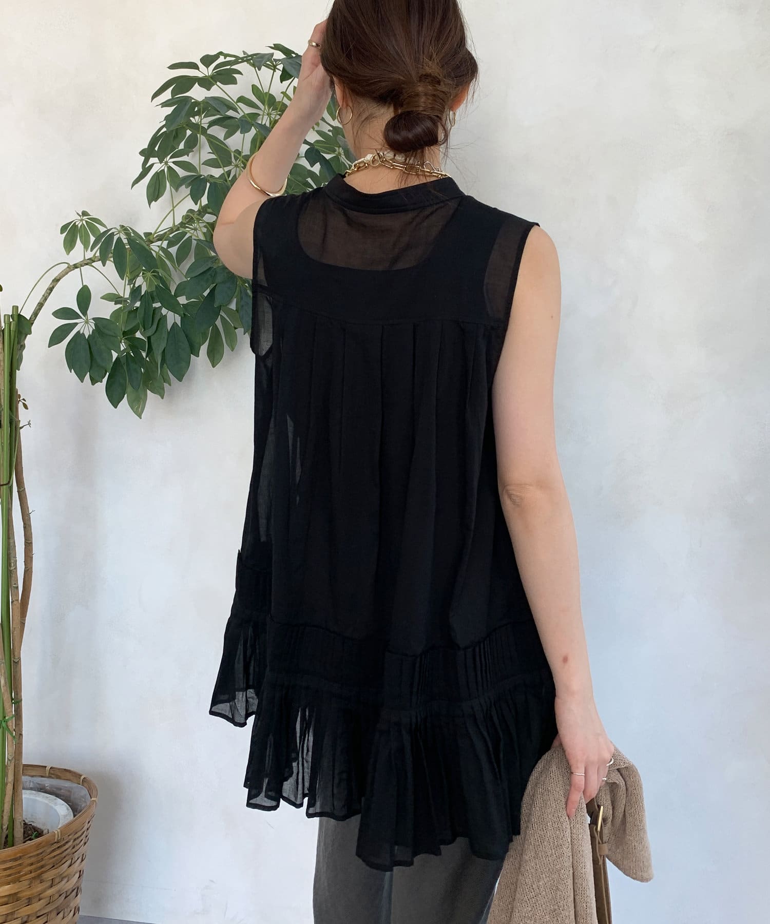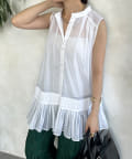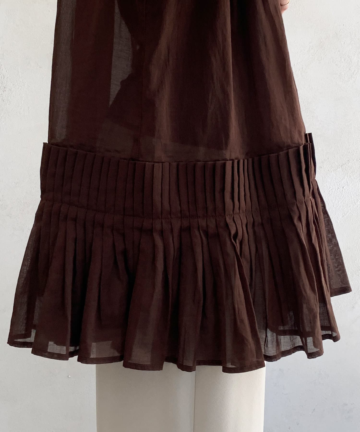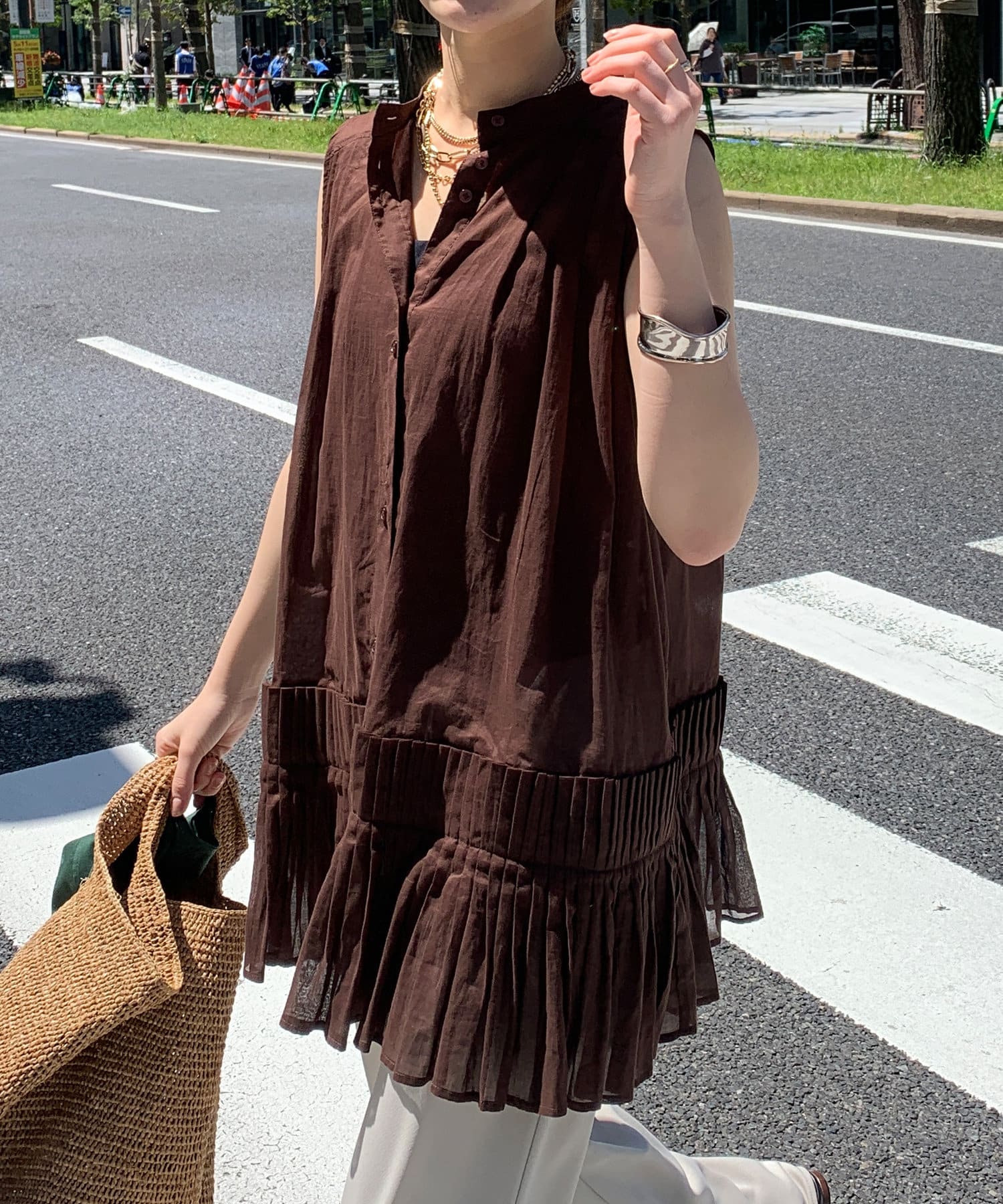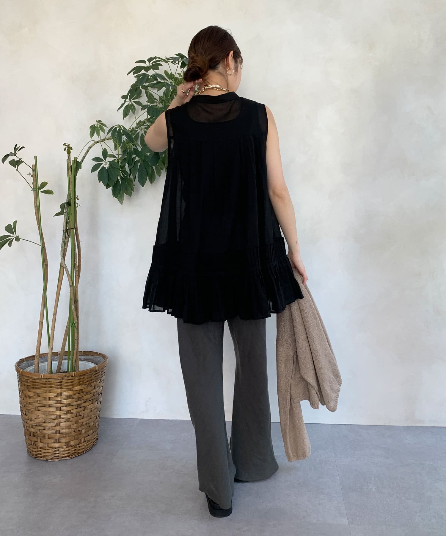 シアー感のある素材と、風通しのいいシルエットで真夏も快適に着られる1着に。