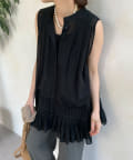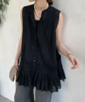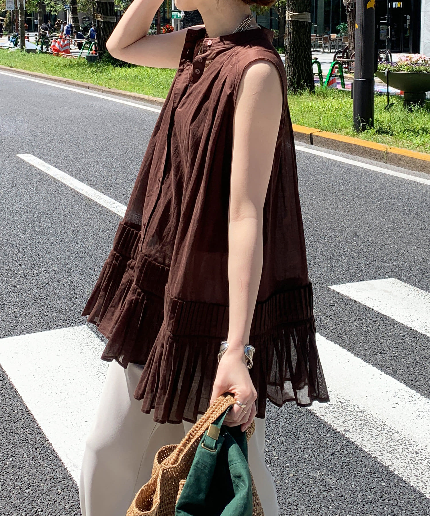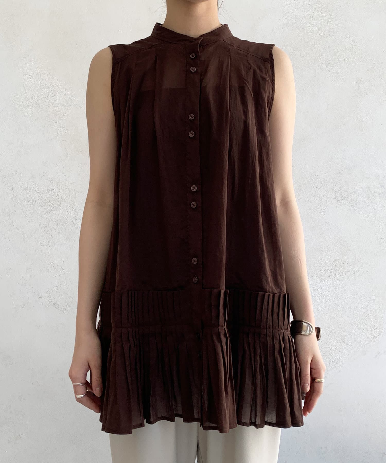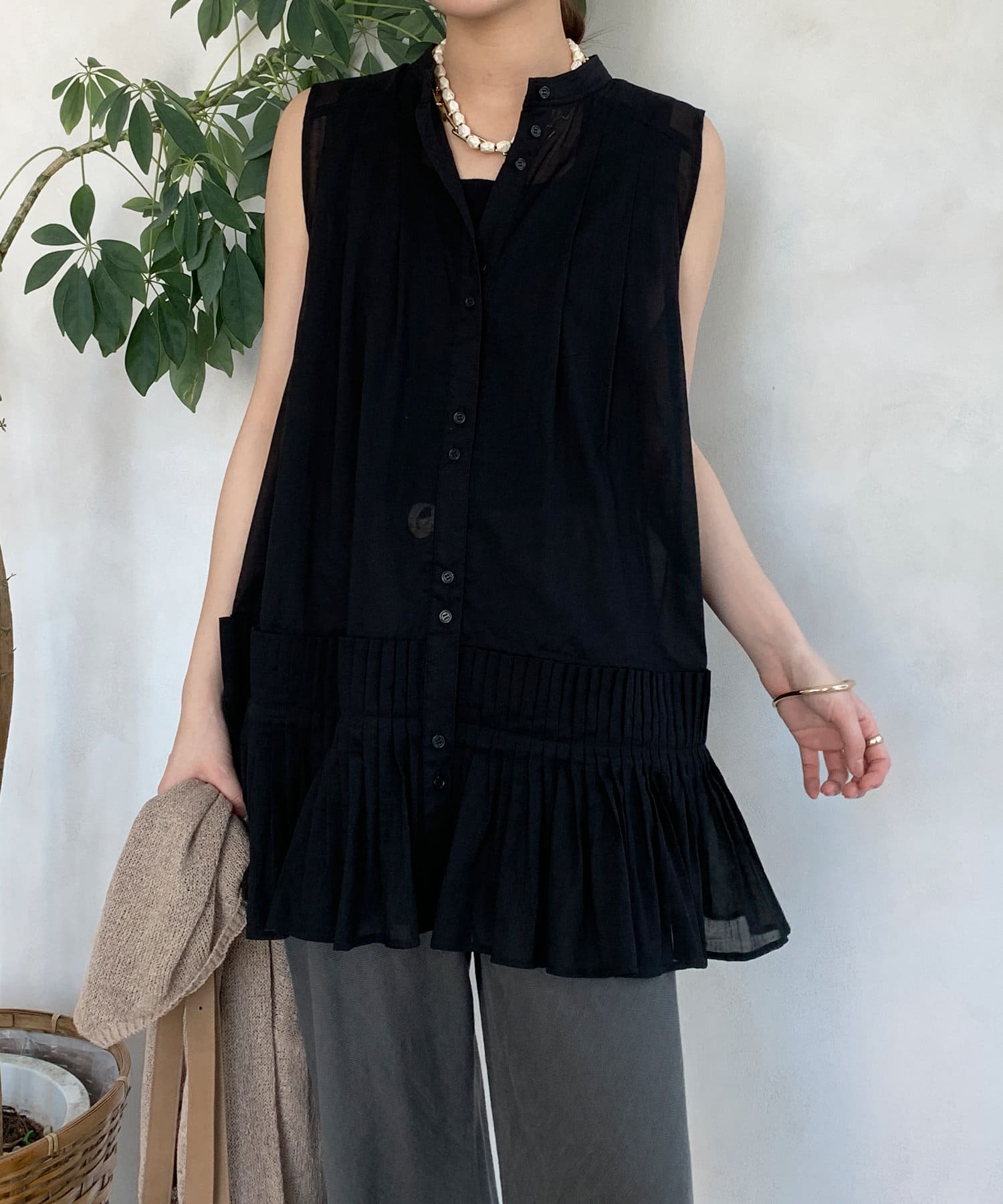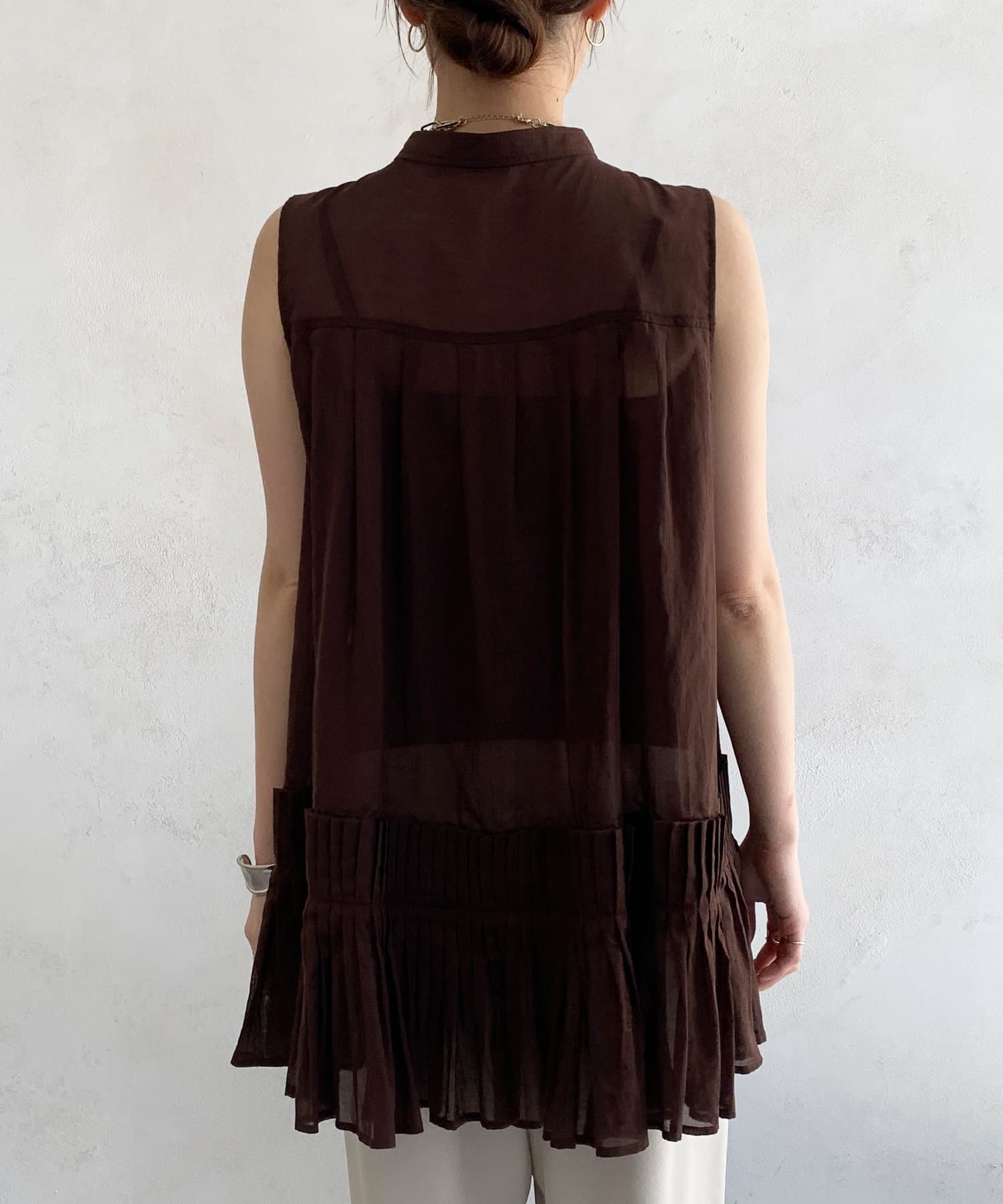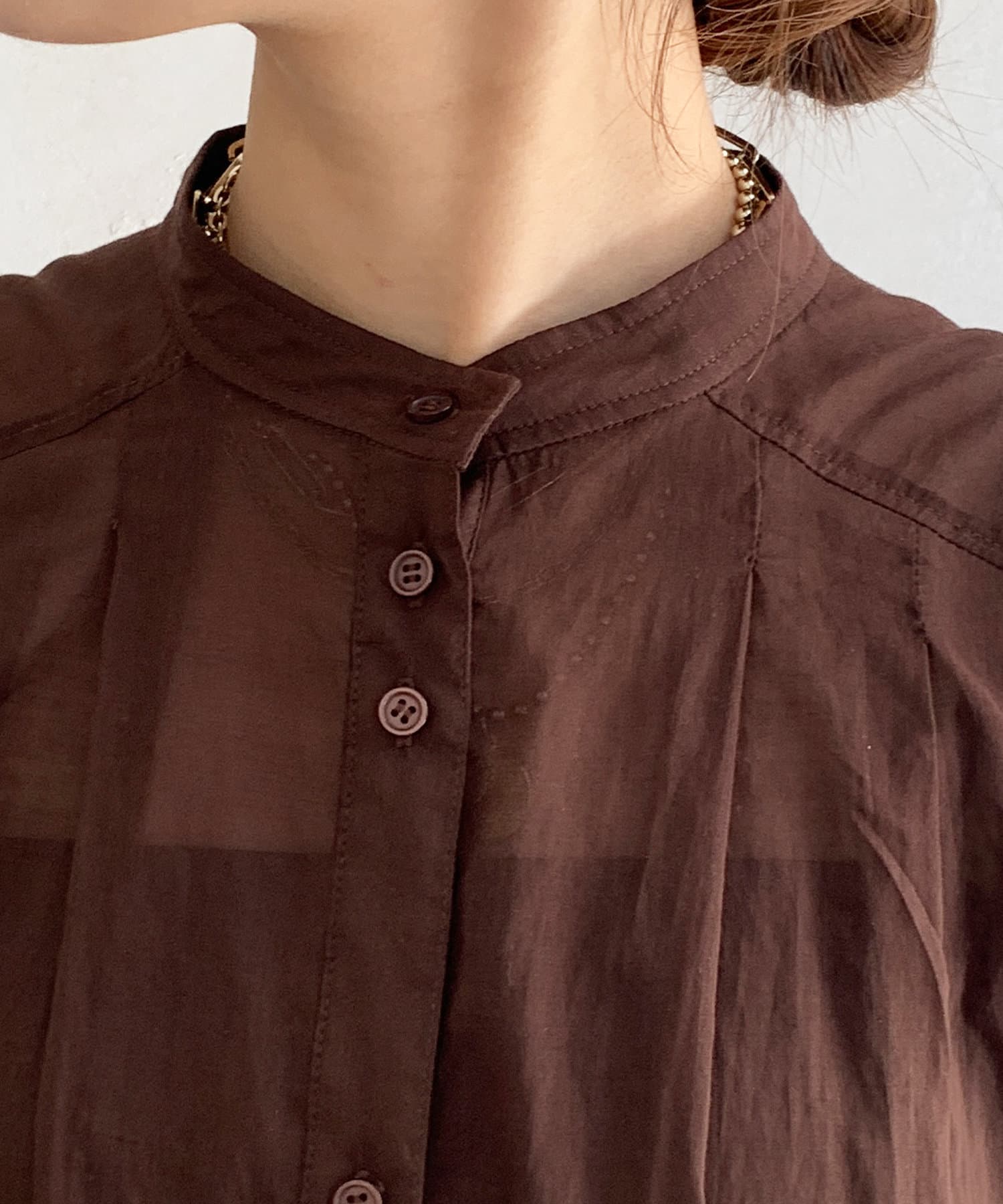 シアー感のある素材と、風通しのいいシルエットで真夏も快適に着られる1着に。